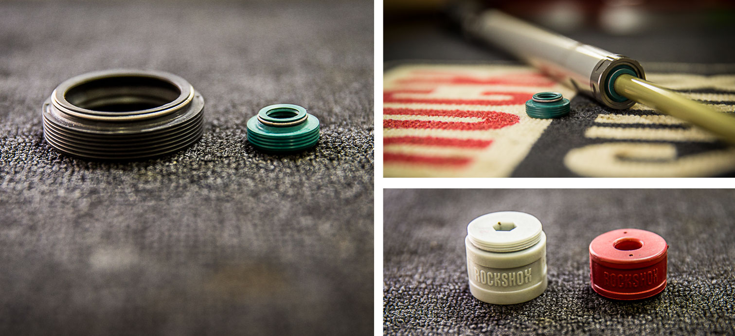 À l’intérieur de la fourche, la chambre négative a été augmentée afin d’améliorer la sensibilité sur les petits chocs et la personnalisation du réglage de rebond sera accessible en interne (comme pour la Boxxer). Il sera possible de régler la progressivité de la Lyrik grâce à l’ajout de tokens et de nouveaux joints SKF assurent un fonctionnement plus fluide sur ce nouveau modèle.