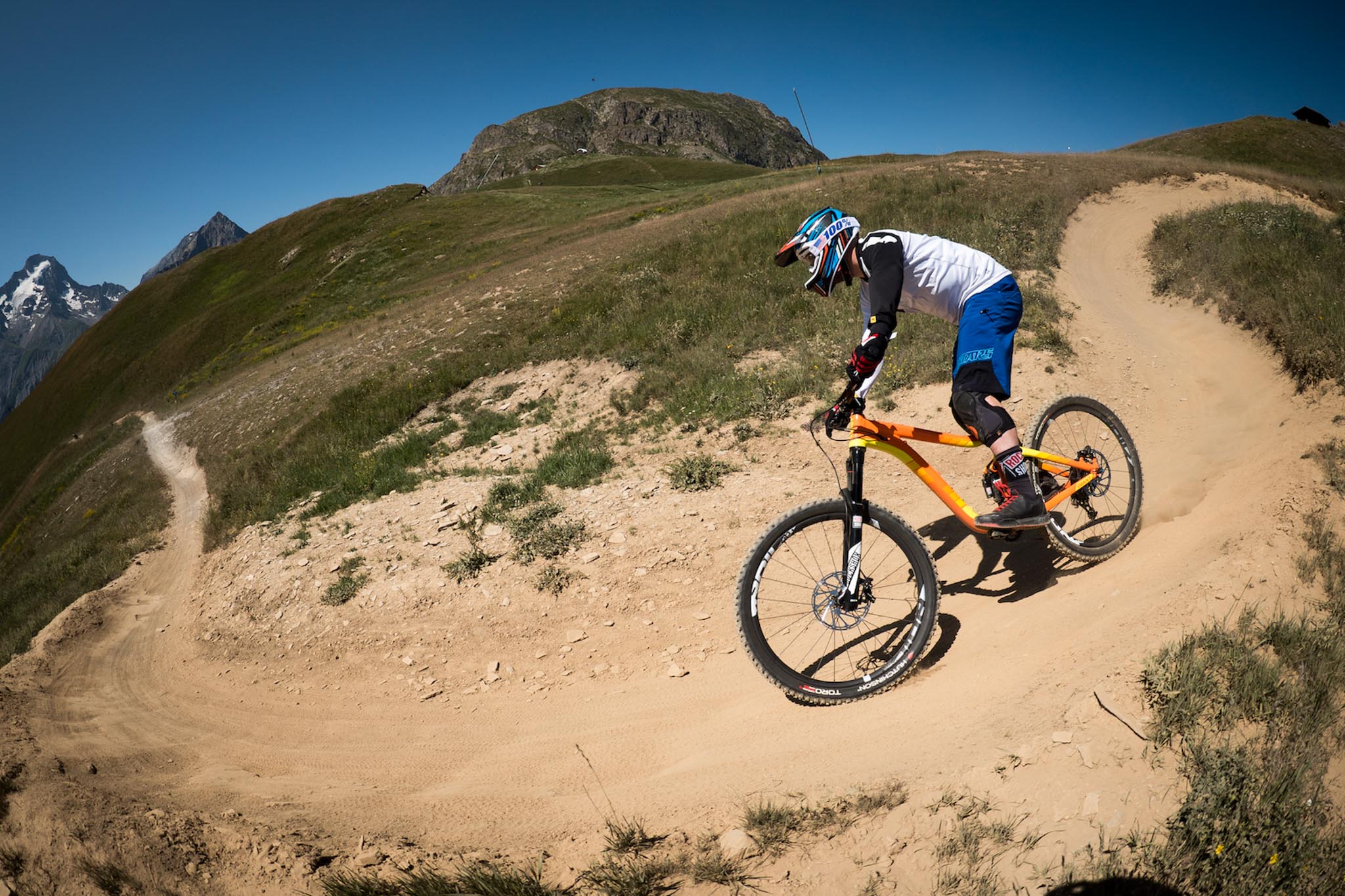 C’est sur les pistes des Deux Alpes que notre correspondant Italien Simone Lanciotti a étrenné cette fourche, pendant que nos équipes étaient occupées à couvrir les différents événements du Crankworx pour vous concocter de beaux reportages/portfolios. Equipé d’un Giant Reign truffé d’équipements Sram et d’une Lyrik RCT3 Solo Air de 170mm de débattement, nous avons parcouru le bikepark tout comme les sentiers techniques et naturels de la station.