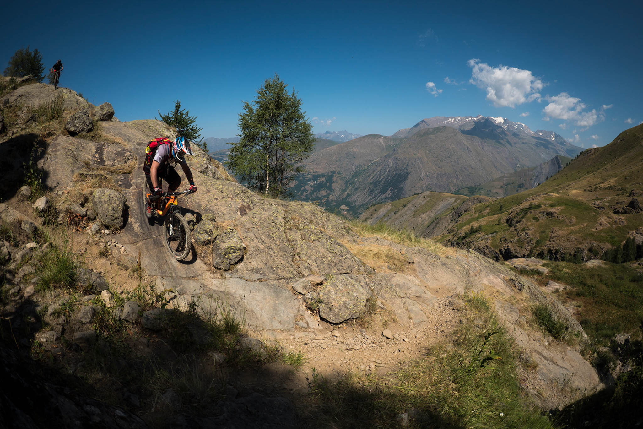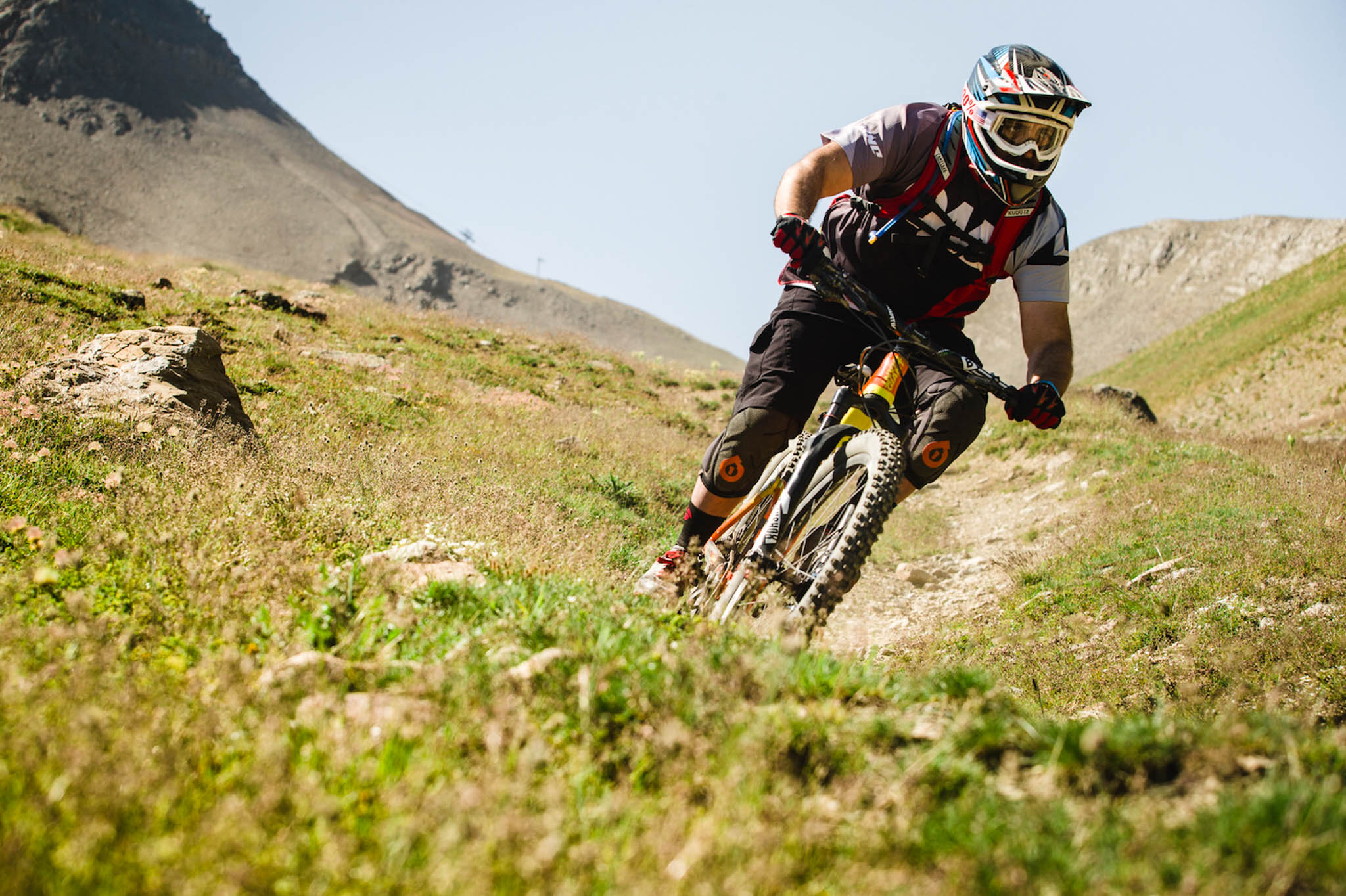 La première partie du test s’est déroulée sur le bikepark et nous avons immédiatement remarqué la précision à haute vitesse de la Lyrik. On s’aventure plus vite et plus fort dans les sauts et les appuis. Sur la célèbre piste de Venosc, la Lyrik est vraiment d’une grande aide. Les trous de freinages son filtrés par le système hydraulique et on conserve de la force dans les mains. Après une dizaine de descentes, la fourche est toujours aussi précise et efficace. Pour notre second et dernier jour d’essai nous sommes montés à 2600 mètres d’altitude pour un test en terrain naturel, hors du bikepark. La pente y est raide et le terrain très cassant, avec d’innombrables cailloux pointus, des virages en dévers et des sauts.
