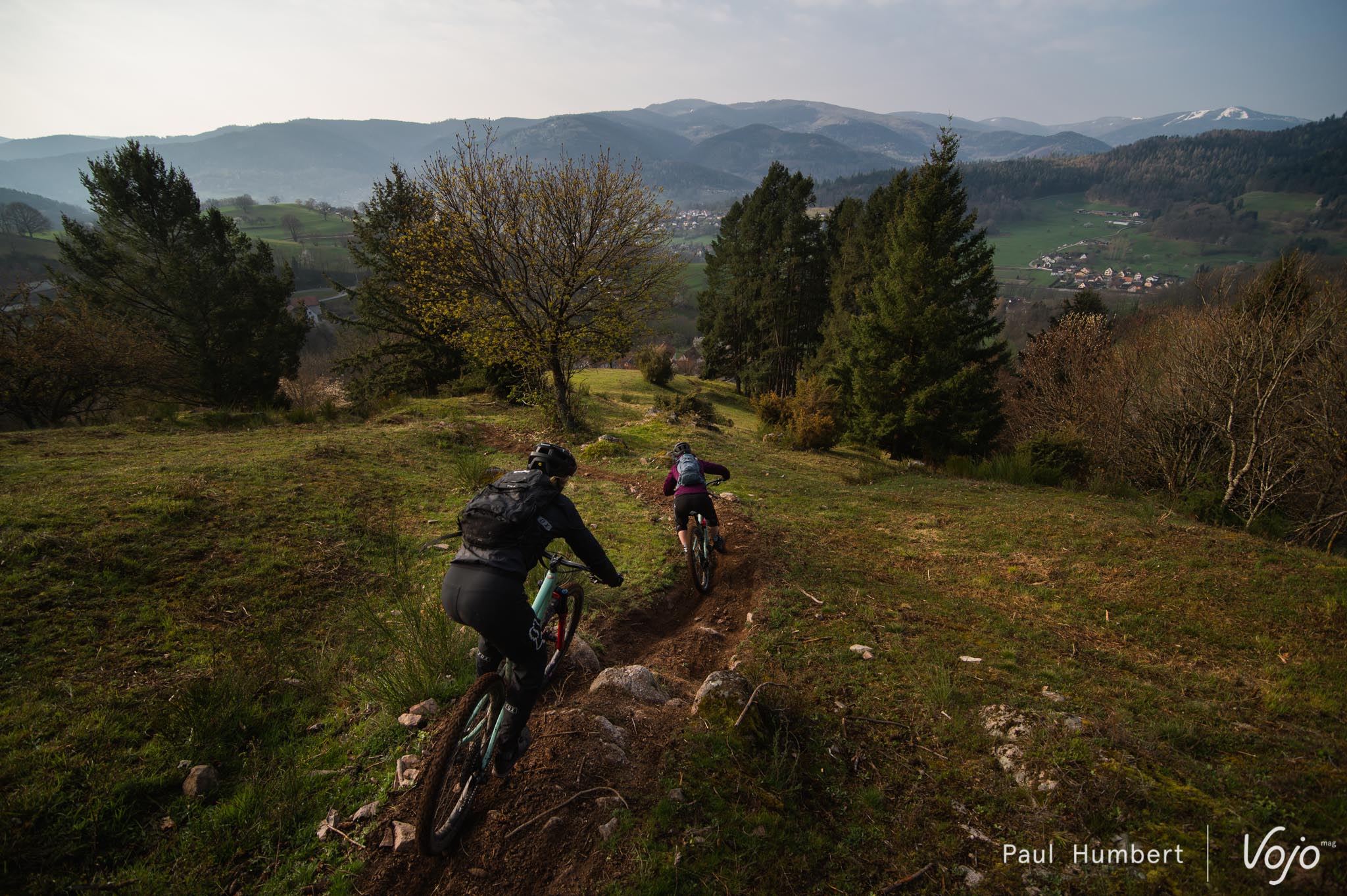 Ce qui ne change pas non plus, ce sont les sentiers de la région : vallonnés, variés, accueillants, techniques tout en laissant une belle place au flow. Débi et Bérengère ne s’en privent pas et elles traversent ainsi les massifs du Hohlandsbourg, la vallée de Munster puis le massif du Mont Sainte-Odile.
