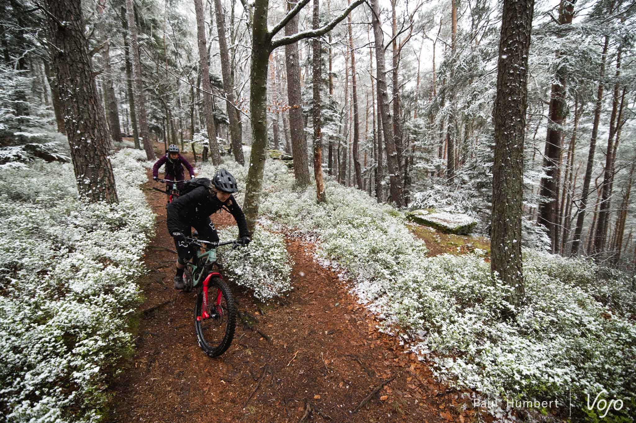 Ce qui ne change pas non plus, ce sont les sentiers de la région : vallonnés, variés, accueillants, techniques tout en laissant une belle place au flow. Débi et Bérengère ne s’en privent pas et elles traversent ainsi les massifs du Hohlandsbourg, la vallée de Munster puis le massif du Mont Sainte-Odile.