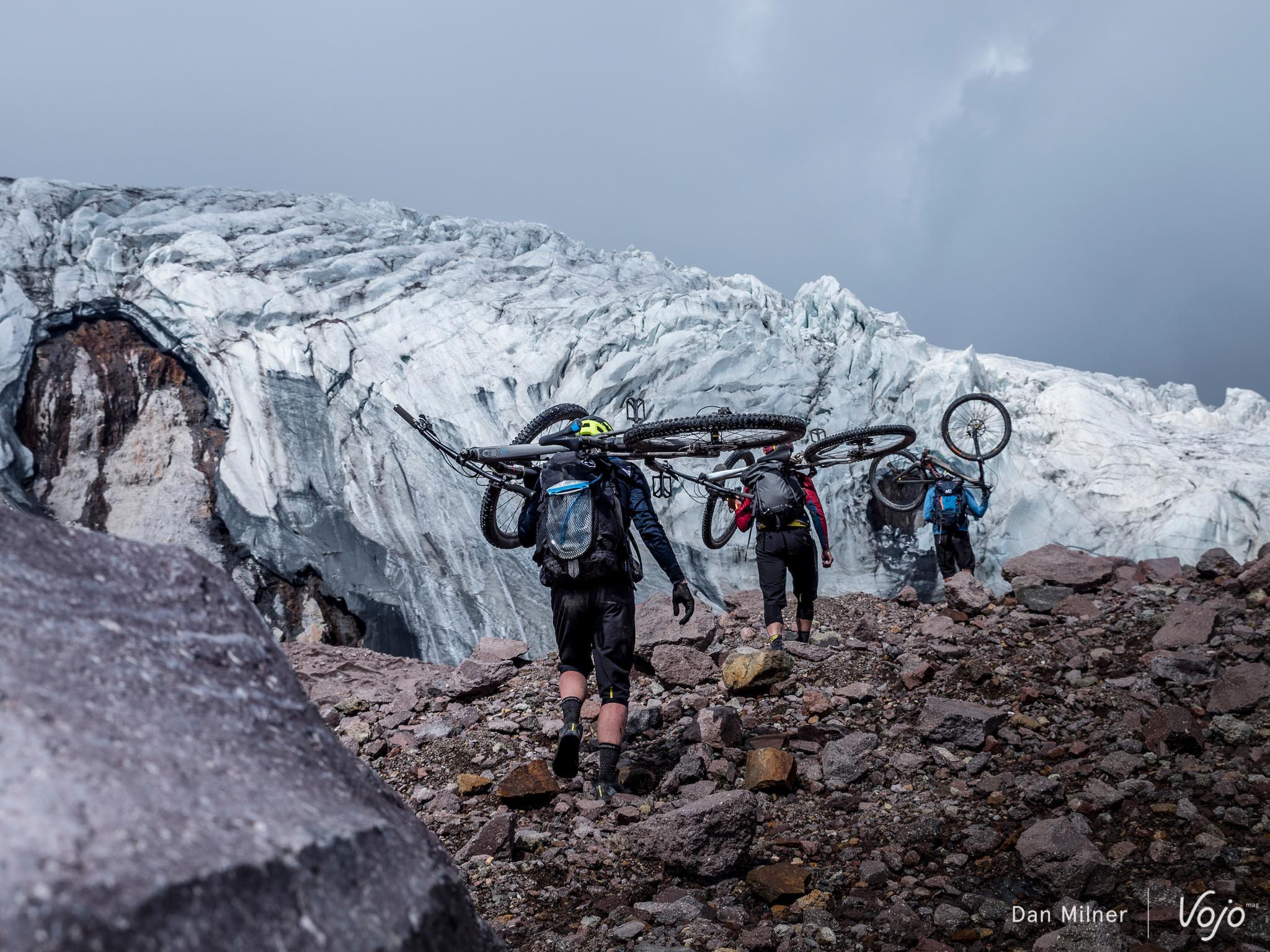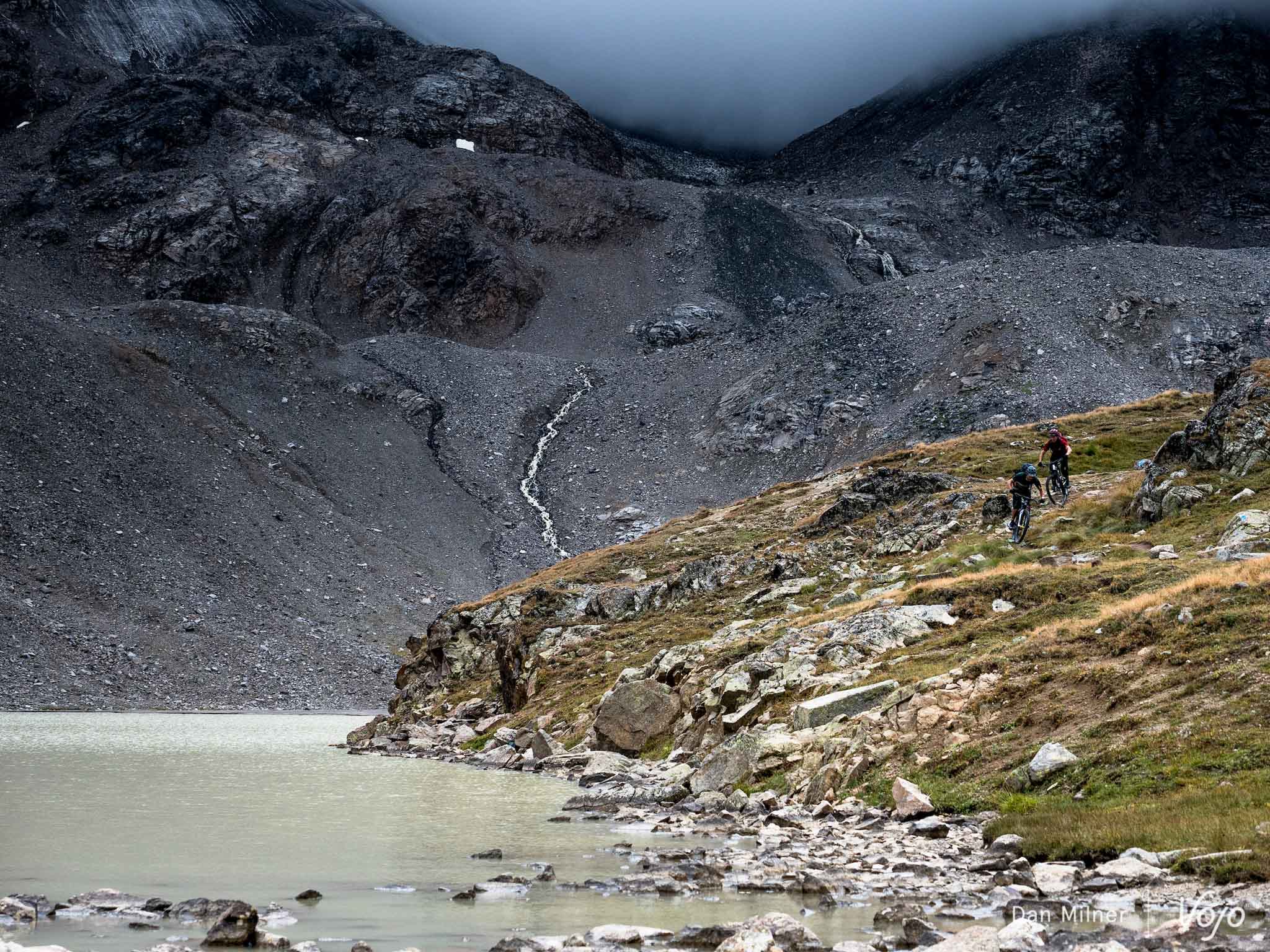 Dan : Pendant un ride comme celui-là, il est facile de se concentrer uniquement sur le sommet qu’on contourne, mais à chaque col traversé, nous étions récompensés par un paysage différent qui s’étirait à perte de vue. Chaque jour, nous avons compté environ 3000m de dénivelé positif et négatif sur des sentiers glissant au coeur de vallées vertes et profondes comme celle là, jusqu’au point de rendez-vous fixé avec notre camion d’assistance. Installés sous de vastes glaciers, nos campements se sont révélés froids et humides.