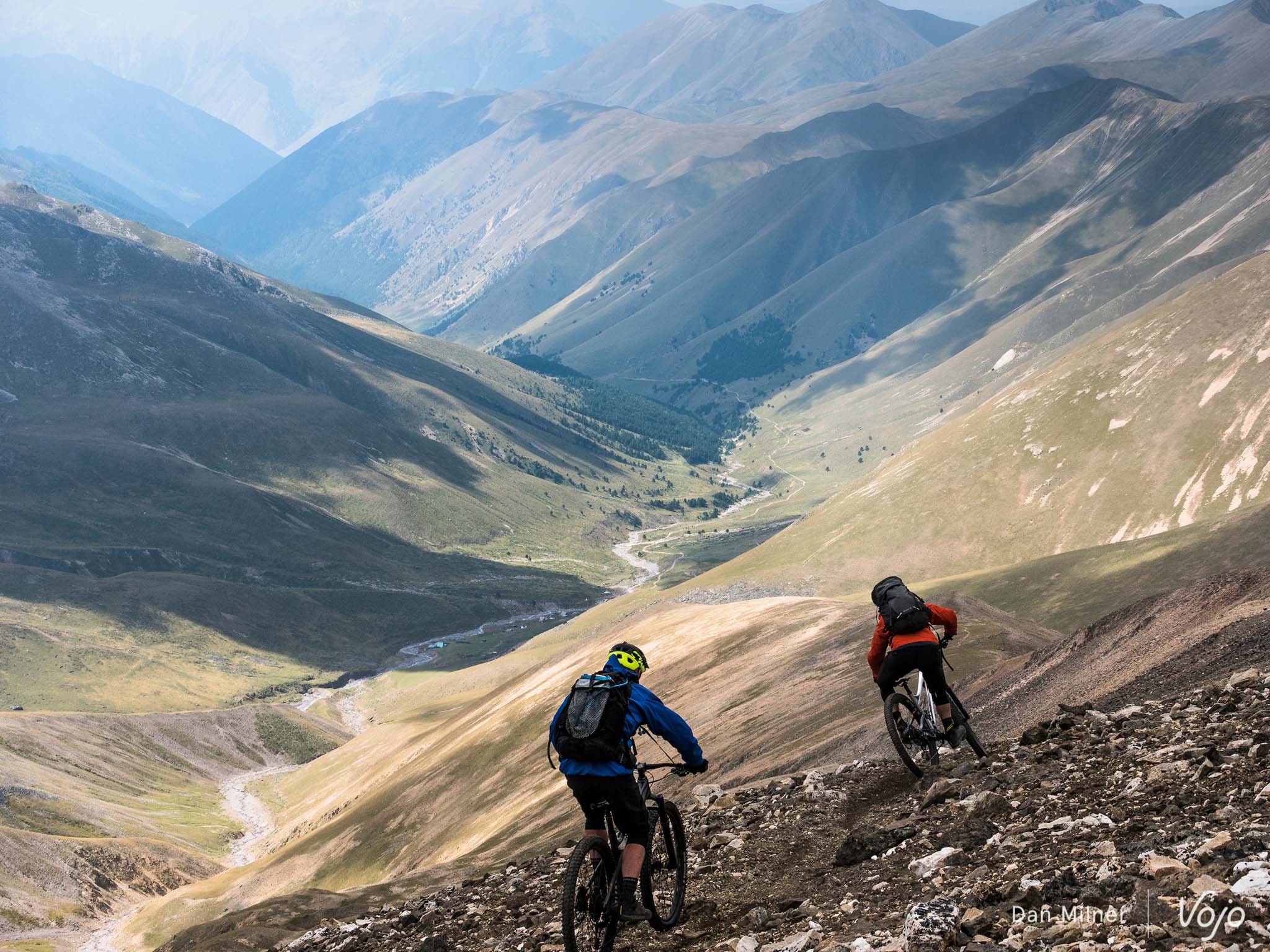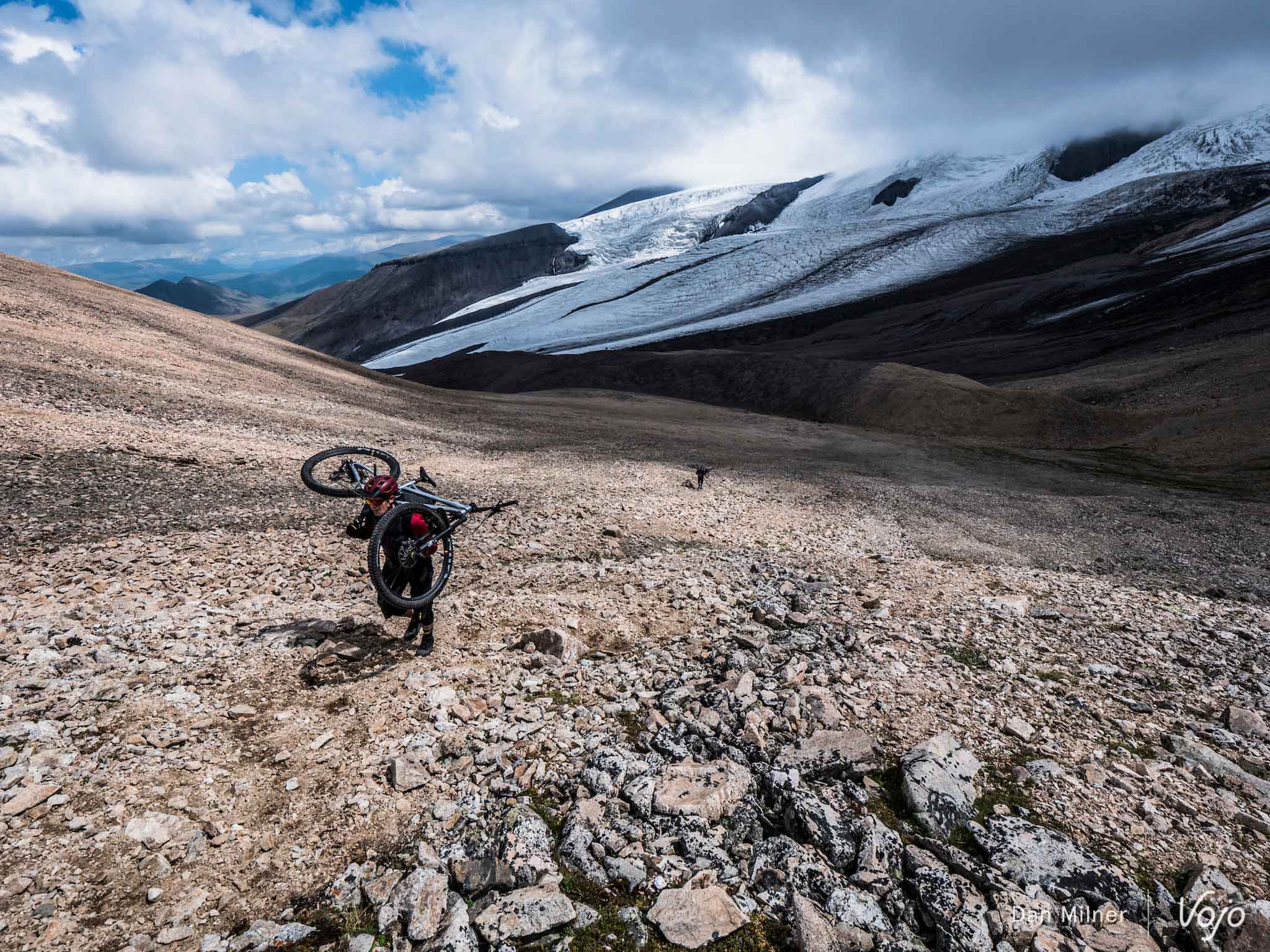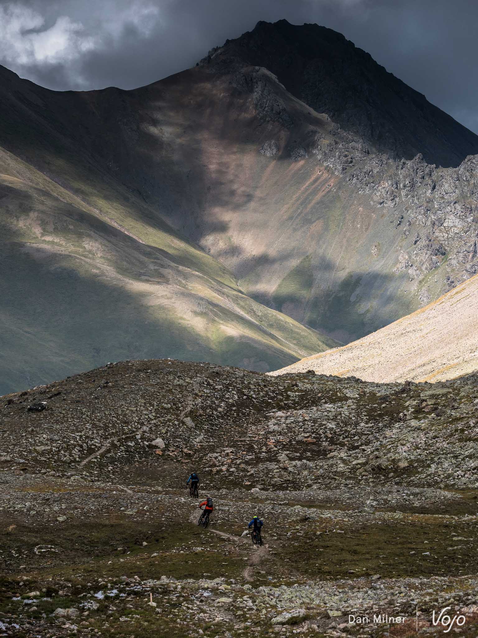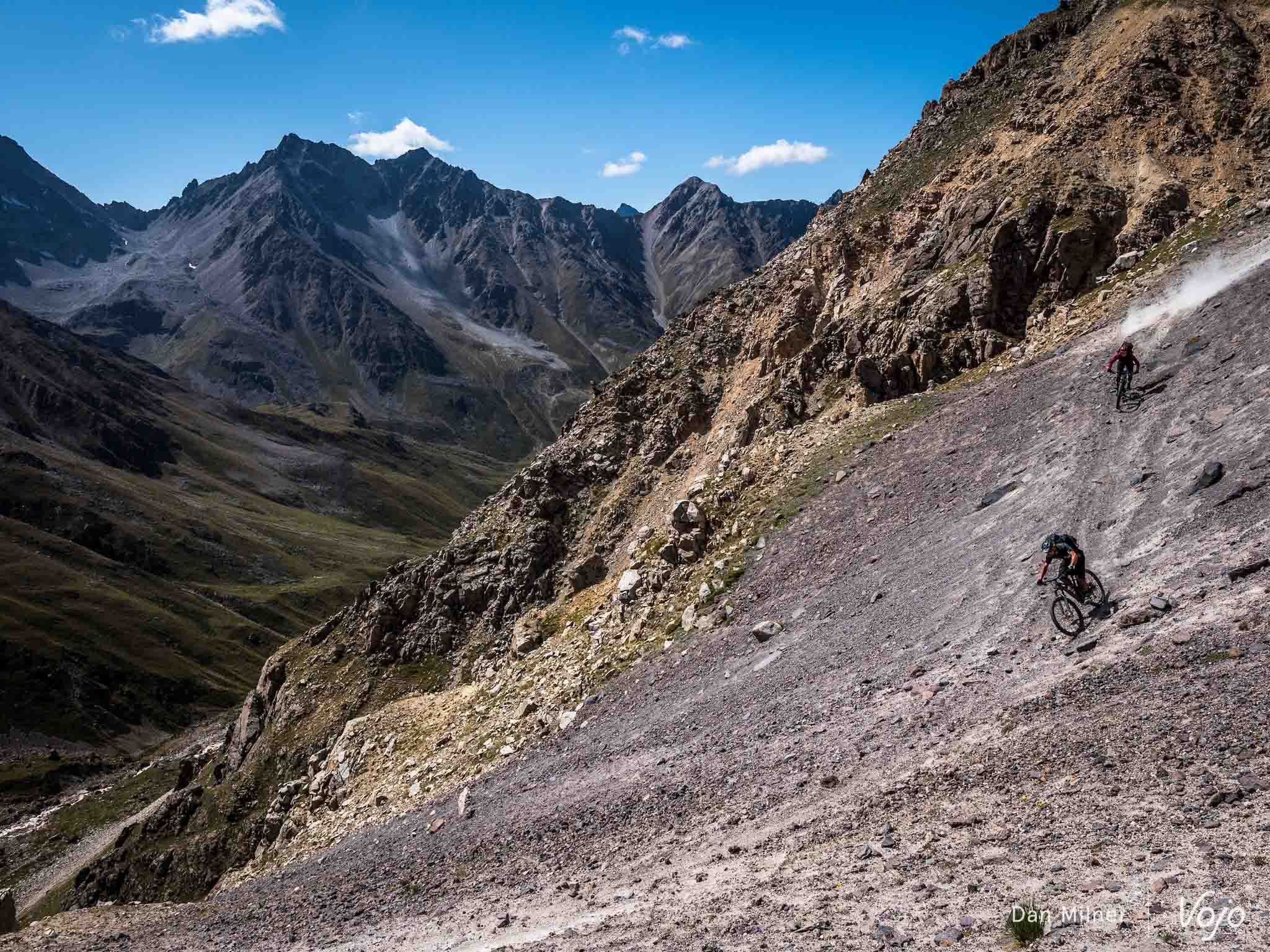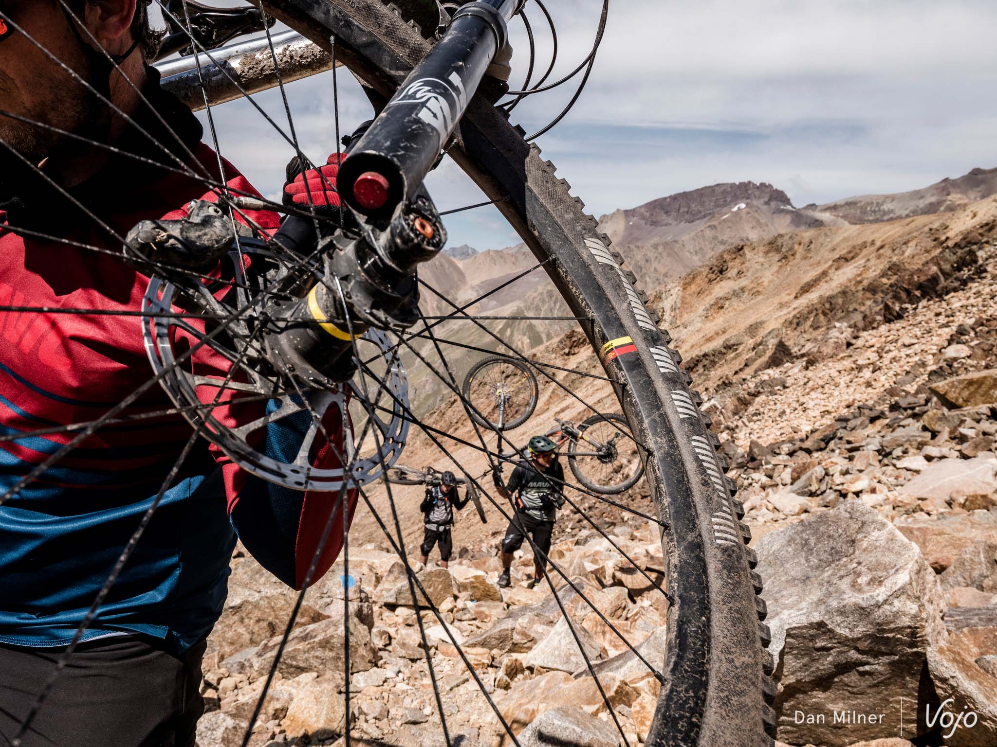 Dan : Quand on atteint le sixième jour d’une aventure de six jours, on est empli d’un mélange d’excitation et de fatigue intense. Nous avons poussé et porté nos vélos sur le flanc de la montagne dès notre départ du camp et jusqu’à l’approche de cette section de sentier qui plonge vers ces pics qui nous surplombent depuis presque une semaine. Il nous reste encore un col à franchir, et nous n’avons aucune idée de sa taille, mais quand un trail vous implore de vous y élancer, peu importe l’inconnue suivante ou votre niveau d’énergie, il est difficile de ne pas céder.