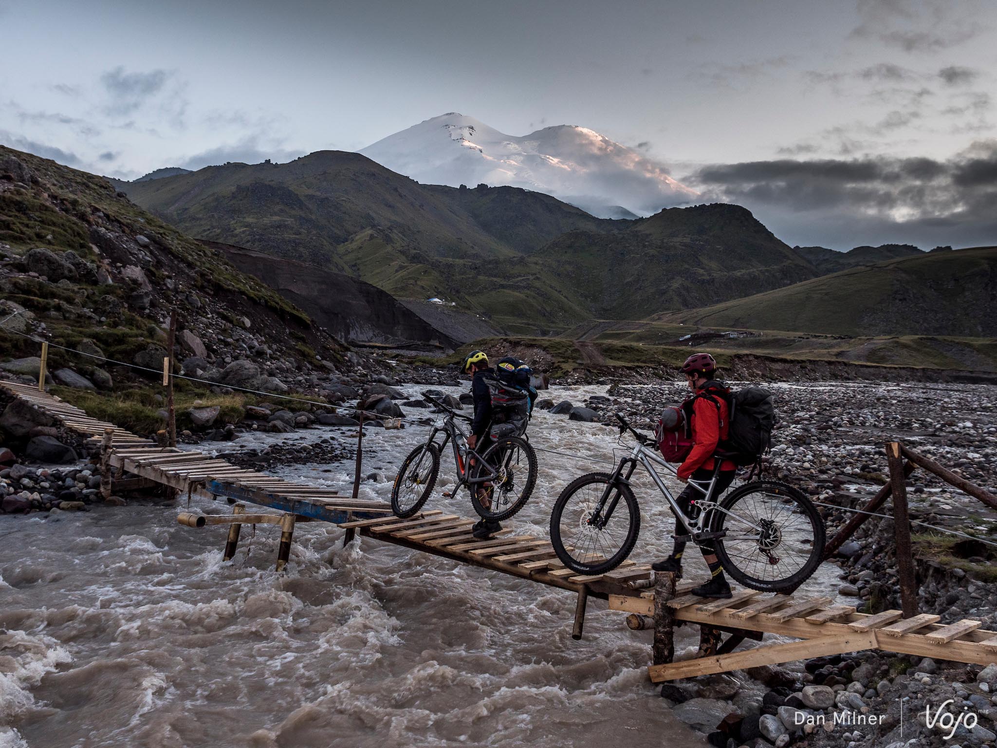 Dan : J’ai commencé à penser à faire le tour de l’Elbrouz il y a 10 ans, pendant un trip à snowboard sur cette montagne. L’idée est réapparue et il était impossible de trouver la moindre information à propos de vélo autour de l’Elbrouz. Il m’a fallu plus d’un an pour organiser ce voyage et le chemin que nous allions parcourir. Il n’existe pas de véritable carte en papier des sentiers autour de la montagne. La meilleur option qui s’offre est celle des voie d’accès au sommet. Donc, comme pour de nombreuses aventures, se lancer demandait un certain courage. Si mes compagnons sont capables de grimper au sommet comme je l’ai lu sur les sites de randonnée, ça devrait passer à vélo ! J’ai découvert la carte 3D Fatmap une journée seulement avant le départ. Cette visualisation 3D est incroyable, mais si je l’avais connue plus tôt, j’aurais peut-être changé d’avis…