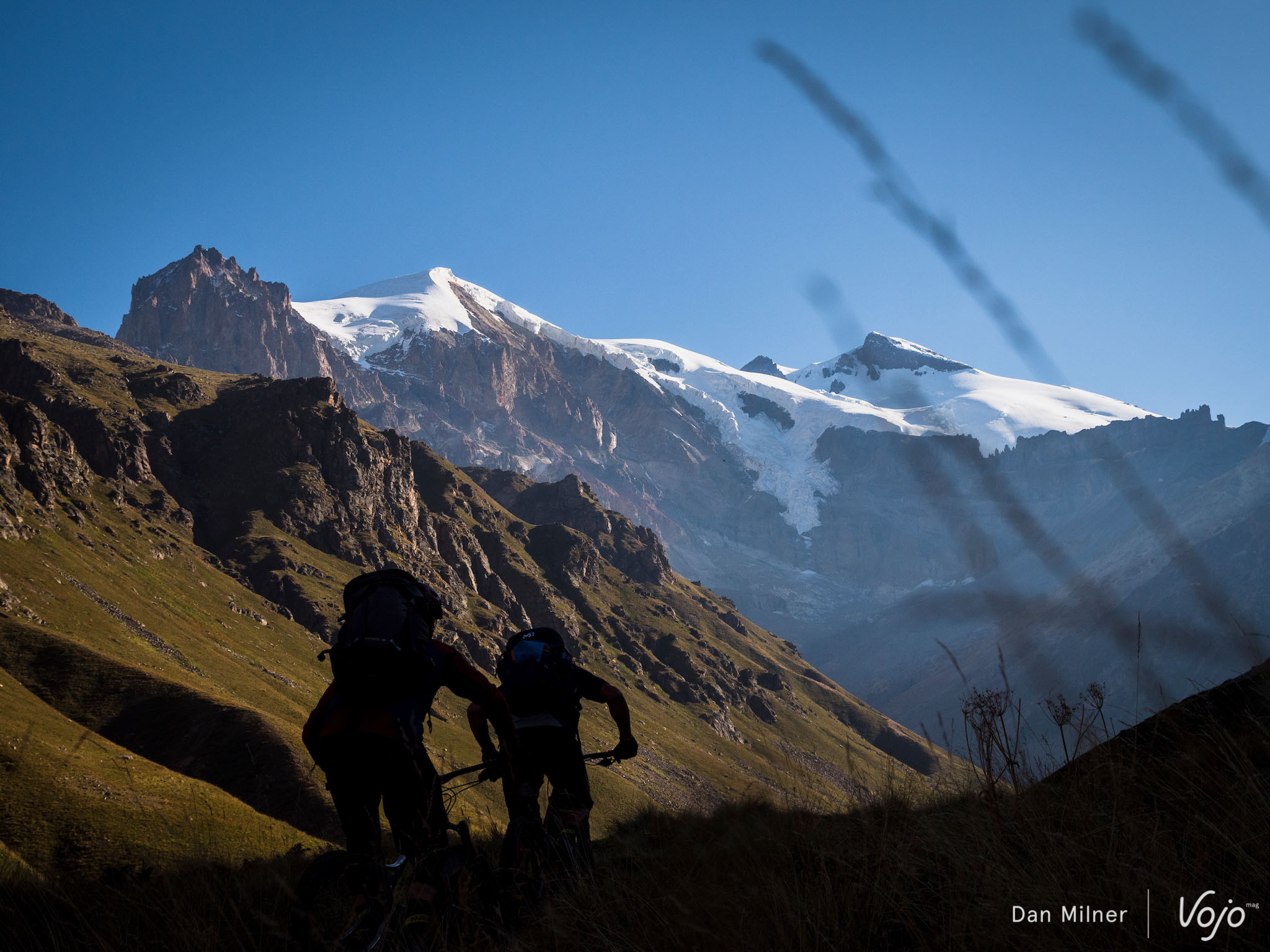 Dan : Le départ du camp Nord de l’Elbrouz s’est fait très tôt et nous a plongés au coeur des faces rocheuses baignées par les premières lueurs du jour. Pendant ces six jours de ride, les paysages qui ont décoré notre aventure changeaient constamment. En prenant la direction des flancs nord de la montagne, ils sont devenus plus bruts, rugueux, impressionnants, ajoutant du poids au challenge qu’on tentait de relever.