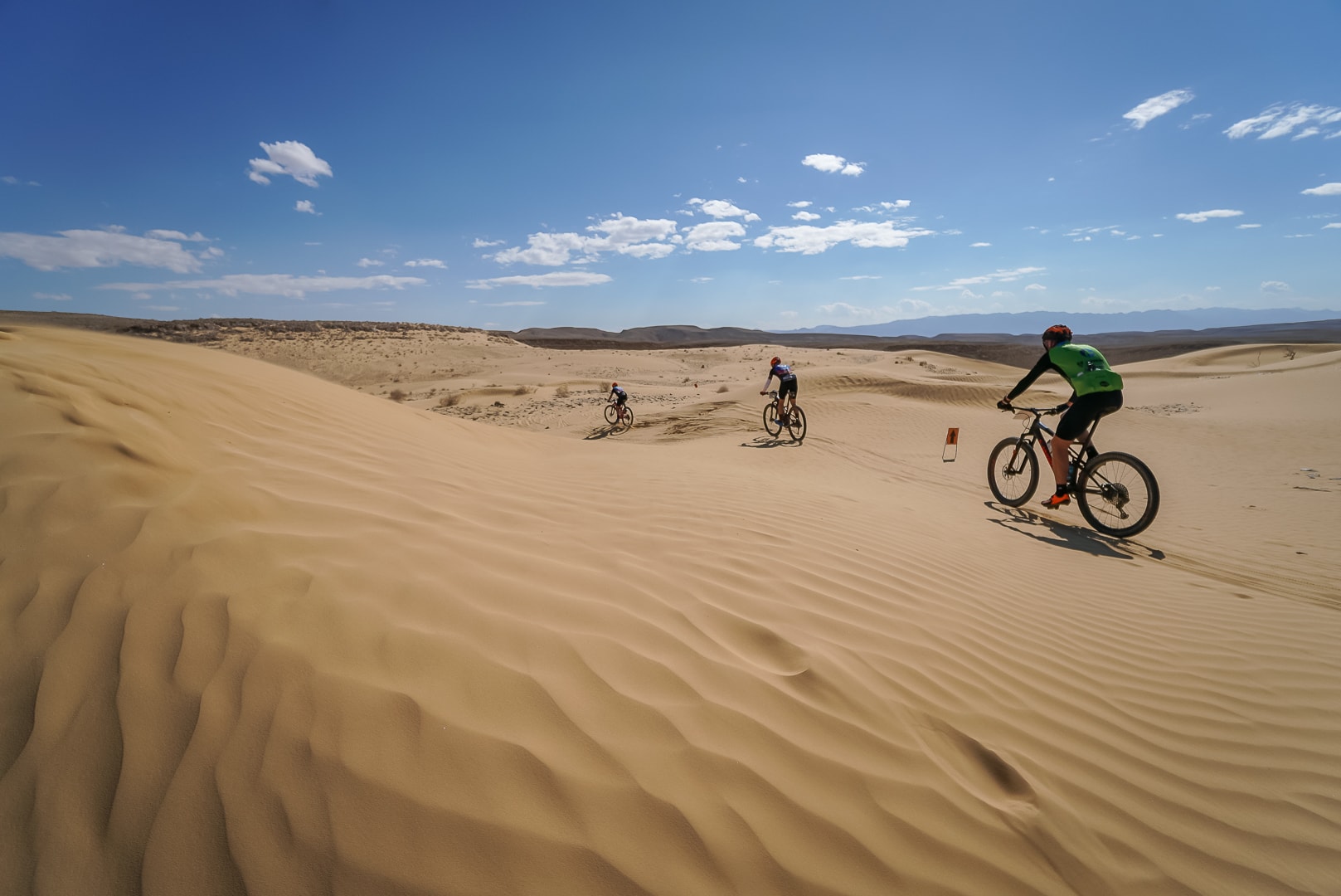 A mi-parcours, on trouve une partie sablonneuse qui demande un pilotage spécifique ; une faible pression dans les pneus est préférable pour ne pas poser pied à terre. Pour l’épreuve, il est d’ailleurs préférable d’opter pour une section d’au moins 2.20 et des carcasses renforcées. Quant au vélo, nous recommandons un tout suspendu de XC plutôt qu’un semi-rigide car le désert est largement garni de cailloux et de roches.