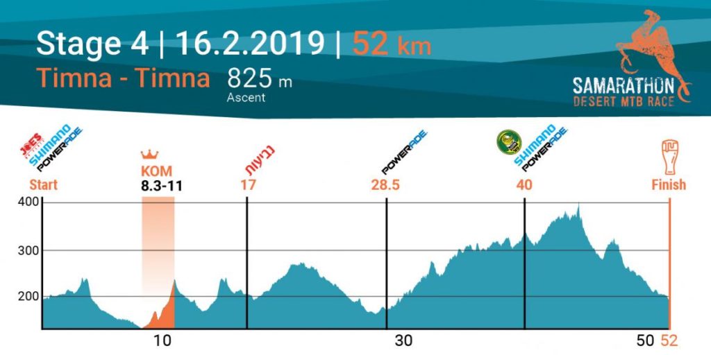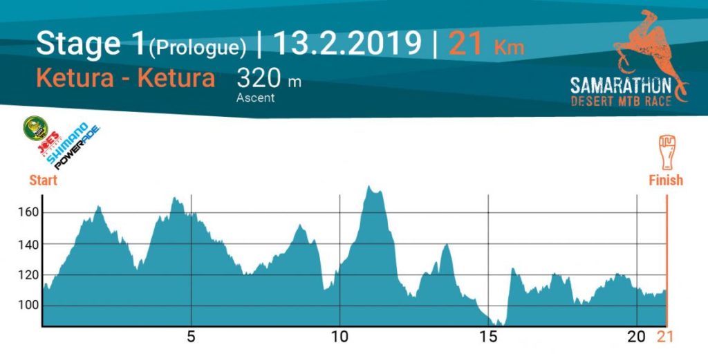 Les participants s’élancent par équipes de 2 sur le prologue de 21 kilomètres toutes les minutes et nous découvrons le terrain très caillouteux qui nous attend durant 4 jours. Le parcours de ce prologue n’est pas de tout repos puisqu’il est constitué principalement de singletracks sur un terrain vallonné et caillouteux. L’on retrouve deux types de singletracks dans le désert de Samar : ceux naturels empruntés historiquement par les chameaux (d’où l’emblème de l’épreuve) et ceux construits plus récemment à la main par les locaux spécifiquement pour la pratique du VTT. De gros efforts sont d’ailleurs mis en oeuvre pour agrandir et améliorer ce réseau de sentiers afin de faire de Timna Park une destination de premier choix pour la pratique du VTT. A moyen terme, l’épreuve Samarathon devrait d’ailleurs comporter environ 70% de Singletracks.