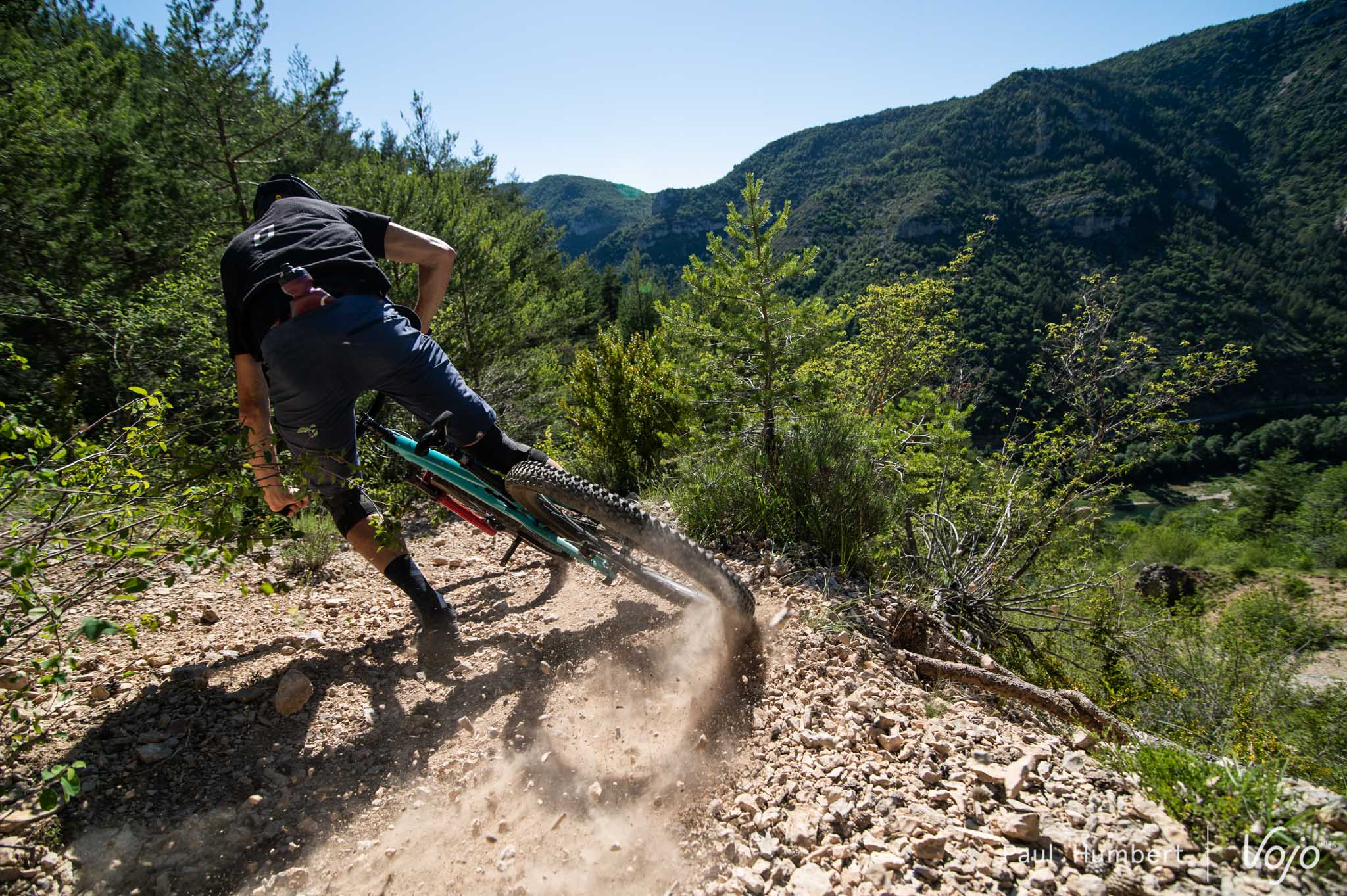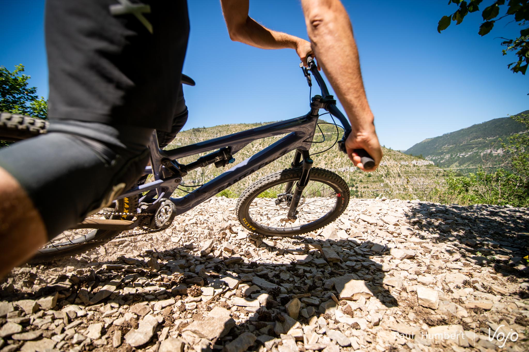 On est vite à l’aise sur le vélo, et après avoir sauté du Bronson, on oublierait presque que la machine a nettement moins de débattement. C’est dans les grandes lignes droites caillouteuses et rapides des gorges du Tarn qu’on se fait rappeler à l’ordre. Le 5010 s’assied un peu moins que son grand frère mais une fois ce paramètre intégré, le fun est au rendez-vous.