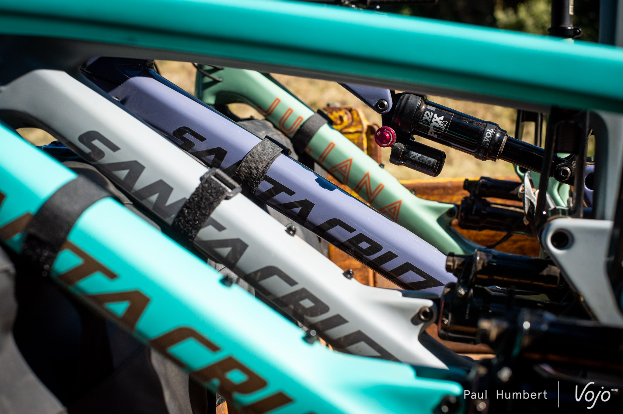 Santa Cruz a fait le choix de séparer sa gamme féminine et de la développer sous le nom Juliana. Si les noms changent, les vélos restent identiques à quelques différences près : les points de contacts que sont la selle et le poste de pilotage. On retrouve également des réglages d’amortisseurs adaptés dans la gamme Juliana.