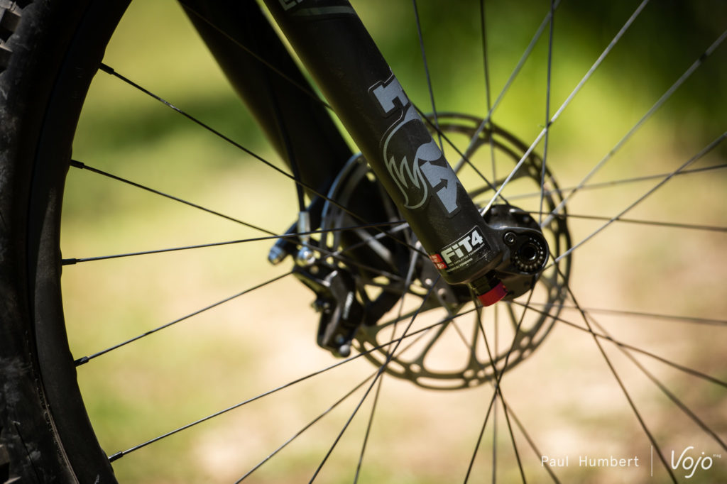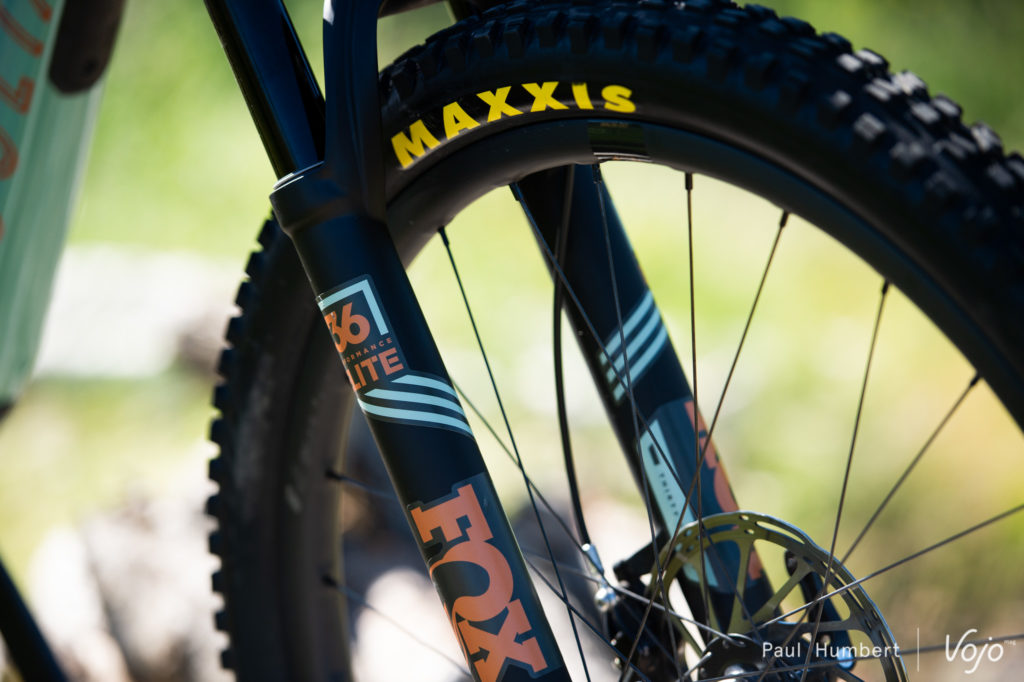 La fourche Fox Float Performance Elite de 160mm est équipée de la cartouche Fit Grip 2 et permet une belle amplitude de réglages pour venir chercher du grip et du contrôle tout au long de la course. Derrière, l’amortisseur RockShox offre beaucoup de grip en début de course et vient ensuite se poser un petit peu plus pour offrir un beau dynamisme au vélo, ce qui le booste pendant les changements d’angle et au moment des impulsions. La course de l’amortisseur est ensuite plus continue et on va plonger dans le débattement quand la vitesse augmente.