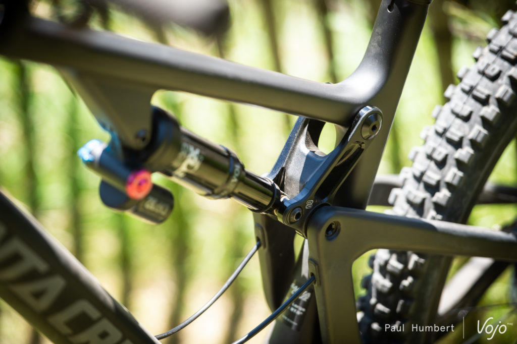 Le vélo développe 130mm activé par, lui aussi, une cinématique VPP. Différente du Nomad, elle reprend une forme plus traditionnelle, comme celle qu’on connait sur les Hightower ou le Tallboy.