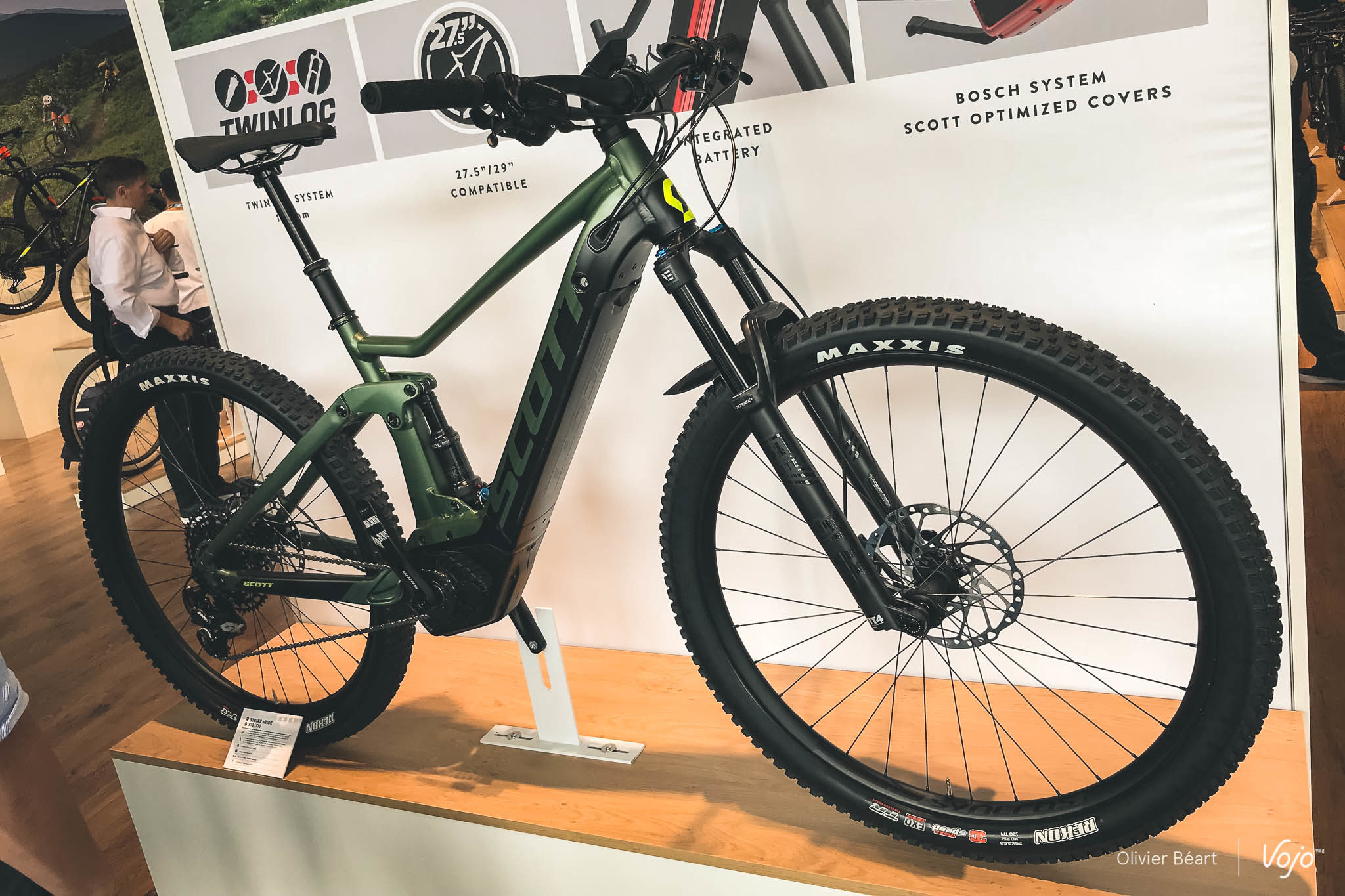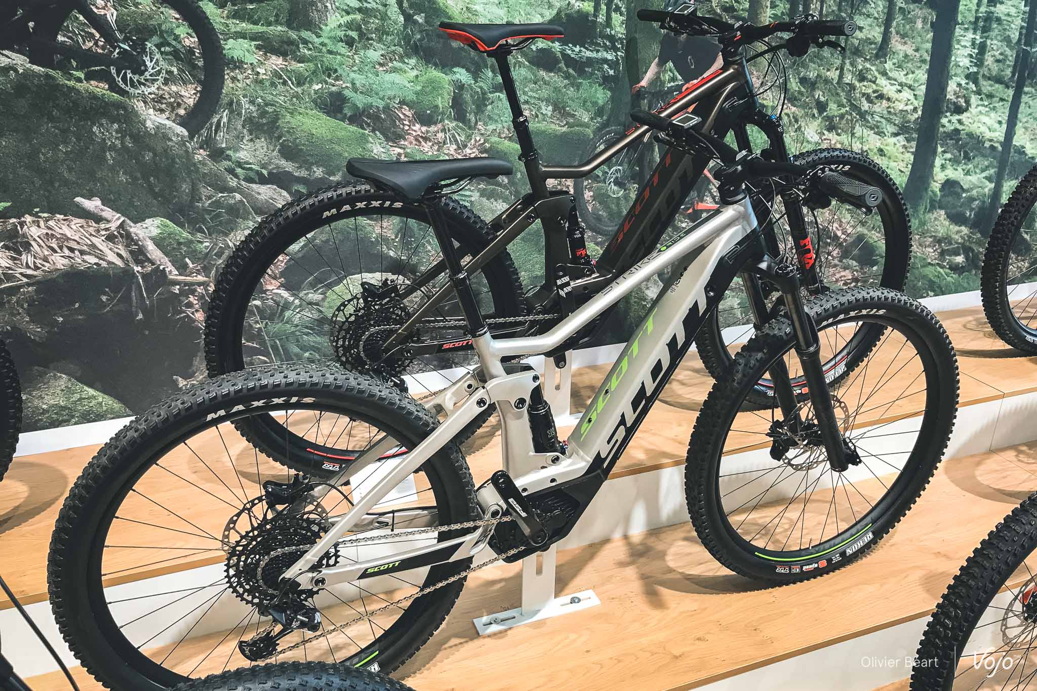 Profitons-en pour enchaîner sur une autre nouveauté : le Scott Strike Eride. Aux côtés des Spark Eride, Genius ERide et autres Aspect Eride, ce VTT à assistance électrique est proposé de 4299€ à 5999€ en différentes déclinaisons, en 27,5″ ou 29″. Avec ses 140mm de débattement, le Strike est défini par Scott comme un vélo « confortable« , destiné aux pratiquants qui visent de longues journées en selle et soucieux de la fiabilité. Bref, une monture pour aller loin sans s’angoisser. Un moteur Bosch Performance CX est utilisé.