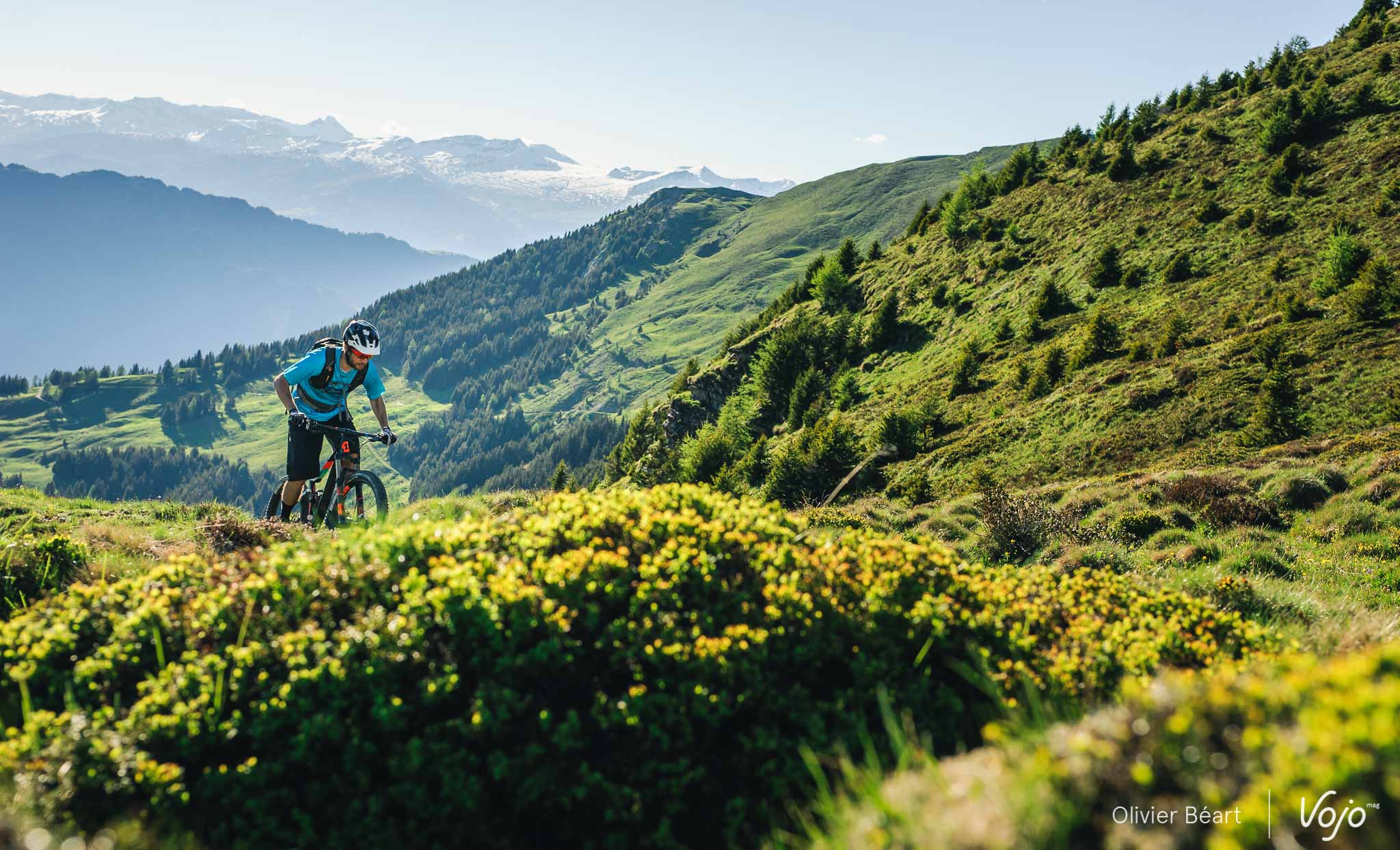 Mais la vraie personnalité du Scott Spark Plus, on la découvre quand on attaque les vrais sentiers de montagne. Et quelle personnalité ! Là où, le matin même, on calculait en permanence comment passer chaque obstacle et éviter la moindre erreur qui risquait de se payer cash, cette fois, on se détend immédiatement et le pilotage se fait d’emblée plus « flow ».