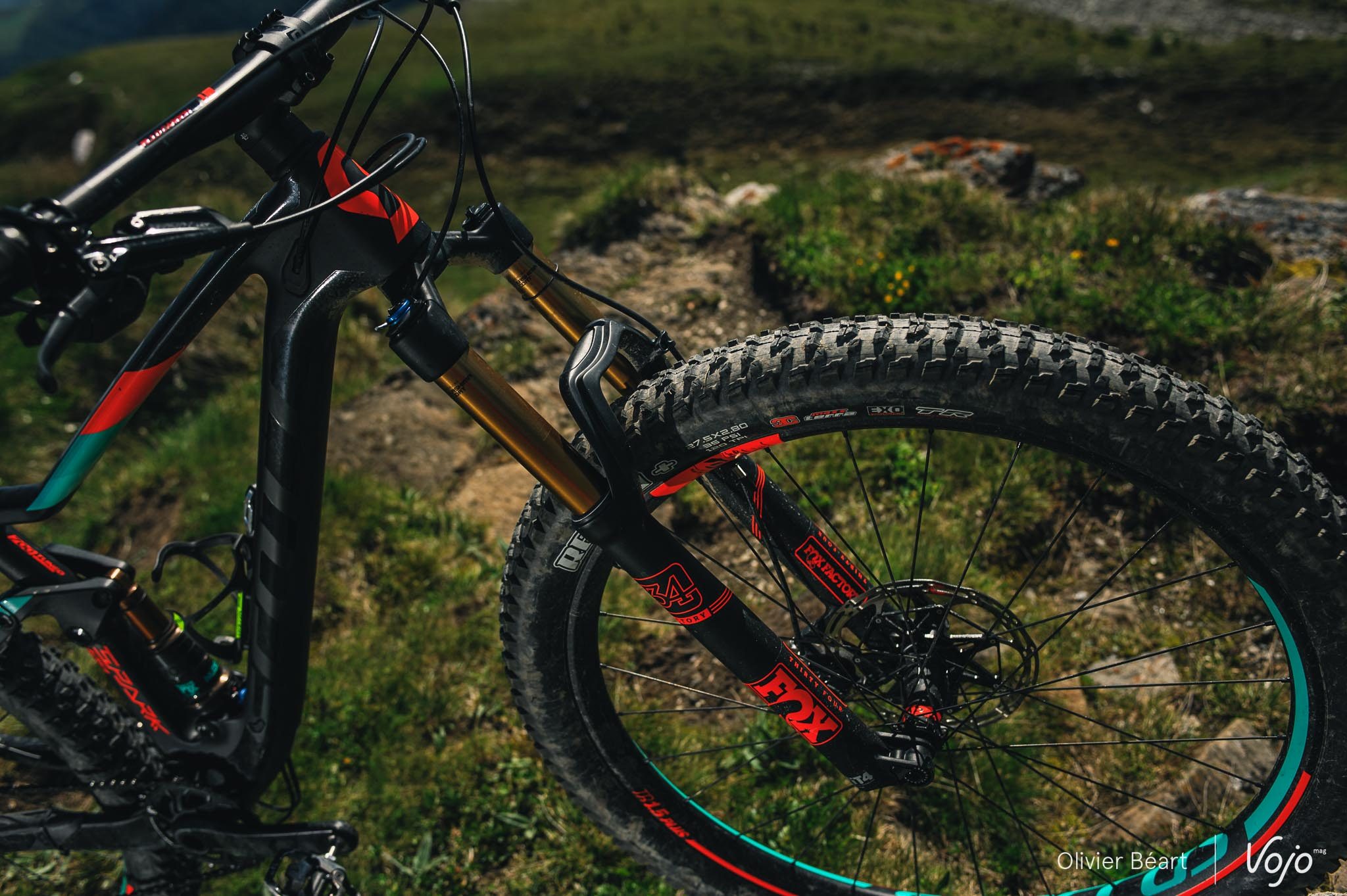 La principale modification technique entre le RC et ce modèle concerne le débattement, qui gagne 2cm en passant de 100 à 120mm à l’avant comme à l’arrière. Le fameux système TwinLoc et sa commande au guidon permettant de sélectionner trois modes simultanément sur l’amortisseur et la fourche est bien évidemment maintenu, mais dans une version légèrement plus soft. A l’avant, la fourche est plus musclée puisqu’on passe sur une Fox 34. Les deux diamètres de roues, 29 et 27,5 », sont offerts sur chaque modèle. Nous nous sommes concentrés ici uniquement sur le 29 » dans le cadre de cet essai.