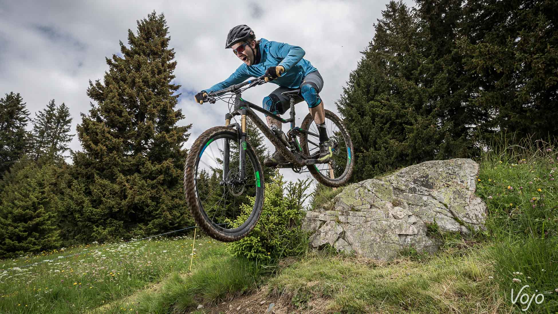 Bref, si on veut l’utiliser occasionnellement en compétition marathon ou raid, on pourra le faire sans souci, surtout en changeant les roues pour des 29 ». Ce qui ne devrait poser aucun souci, d’autant que le boîtier de pédalier nous semble bas et ne devrait pas se trouver trop relevé par la présence de roues un poil plus grandes.