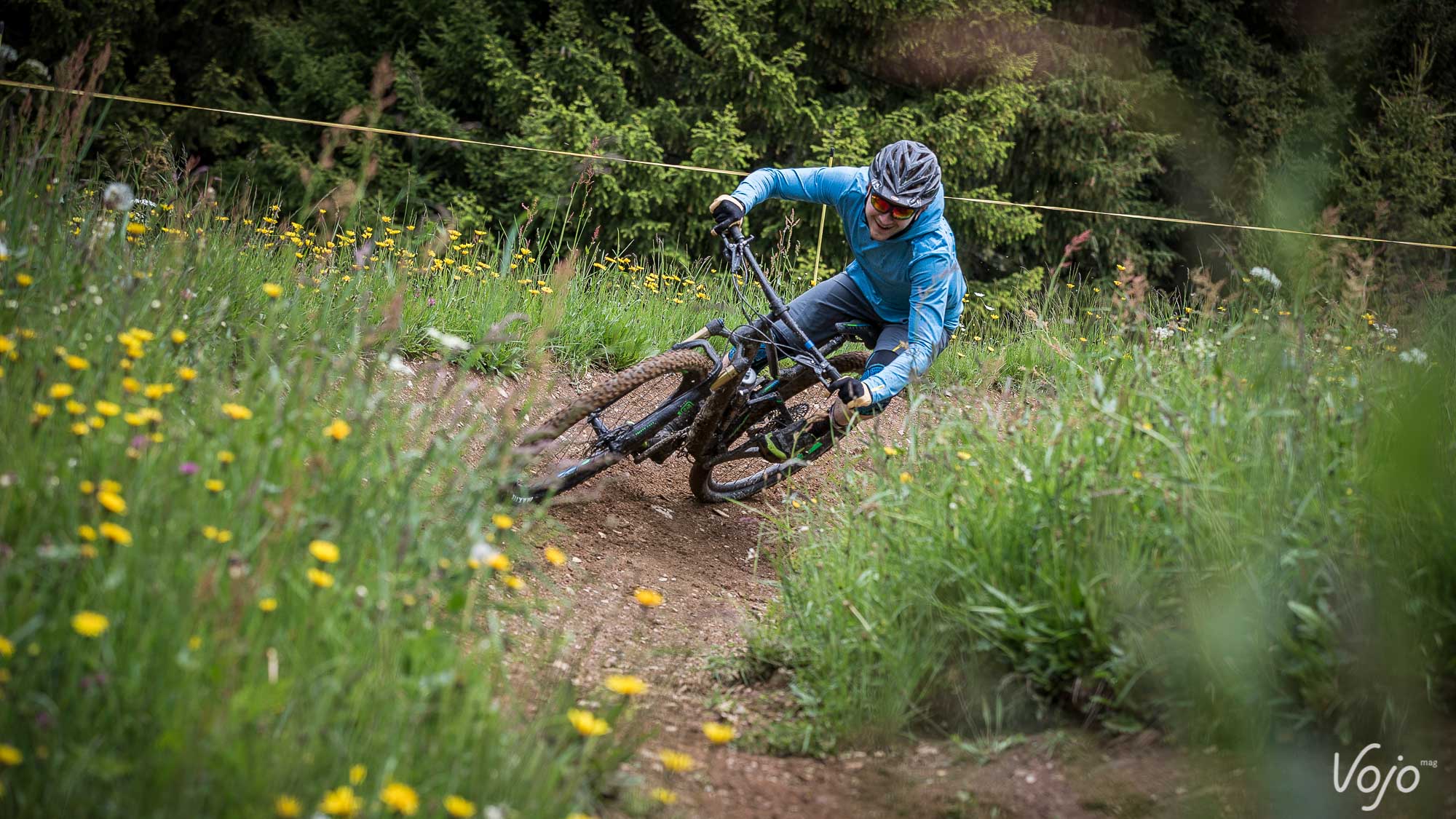 Les cailloux et les racines sont toujours là, sous nos crampons, mais ils deviennent juste des prétextes à jumper et à attaquer, pas des pièges qu’il faut contourner comme nous le ressentions avec le Spark 900 un peu plus tôt. On peut se concentrer plus sur ses trajectoires, aborder les virages par la meilleure ligne possible même quand il y a de petits obstacles sur le chemin et atteindre des vitesses inavouables sans pour autant avoir l’impression d’être sans cesse sur le fil du rasoir.