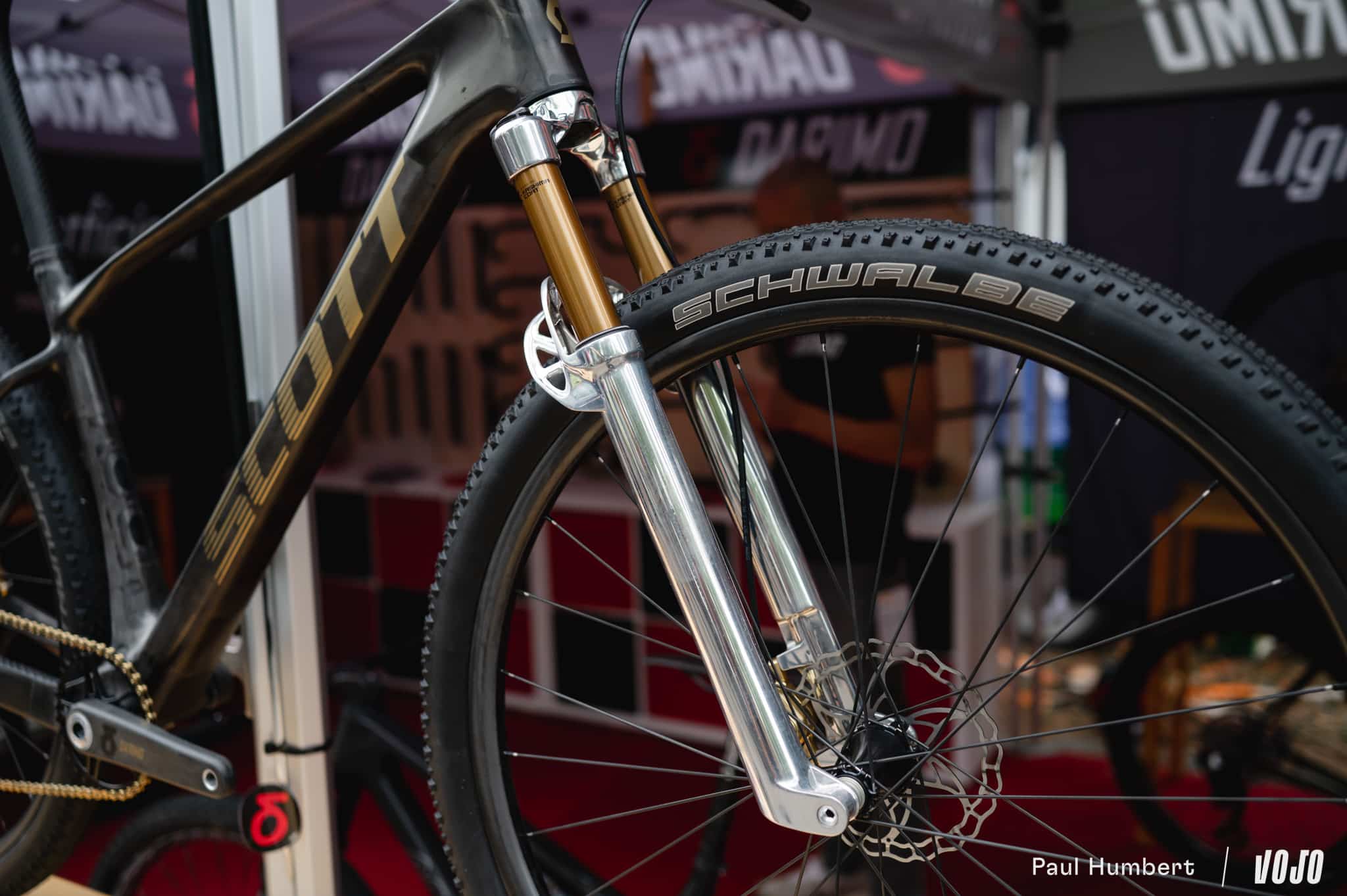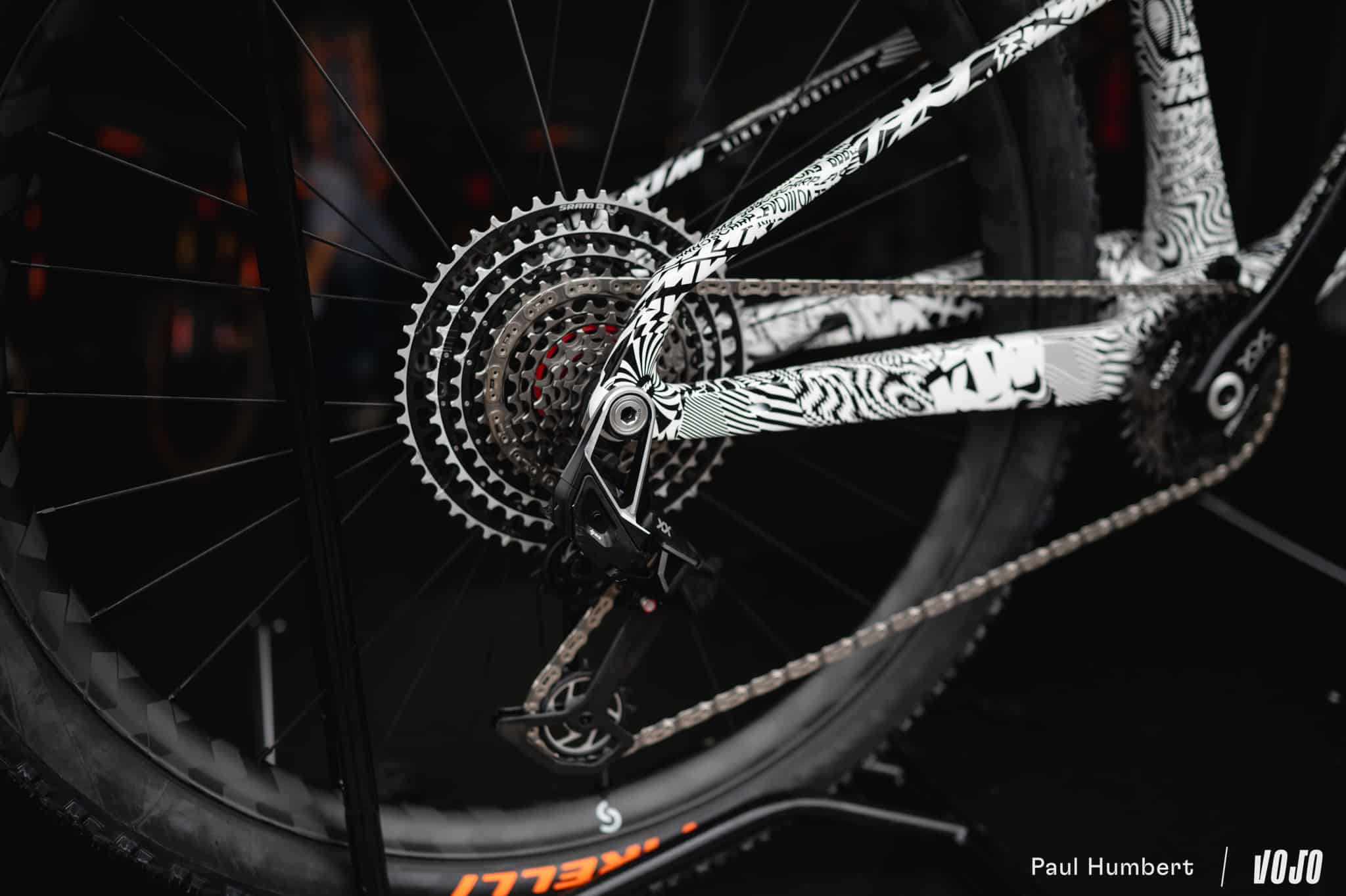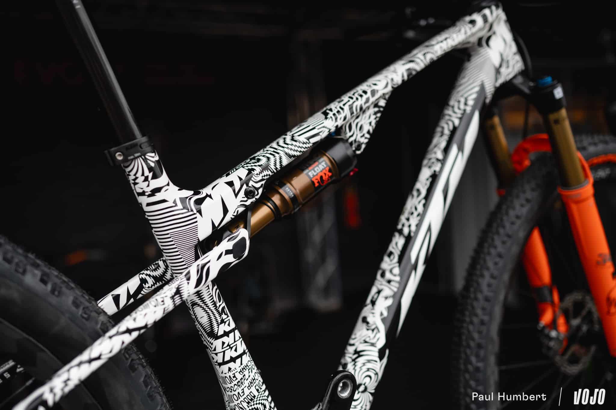 KTM est venue avec son Scarp Evo III de XC, présenté un peu plus tôt dans l’année. Le vélo est aussi disponible dans des coloris plus conventionnel mais pour la version kit cadre, on peut opter pour cette décoration baptisée « Proto25 », identique à celle qui recouvrait les prototypes des athlètes de la marque avant la sortie officielle !
