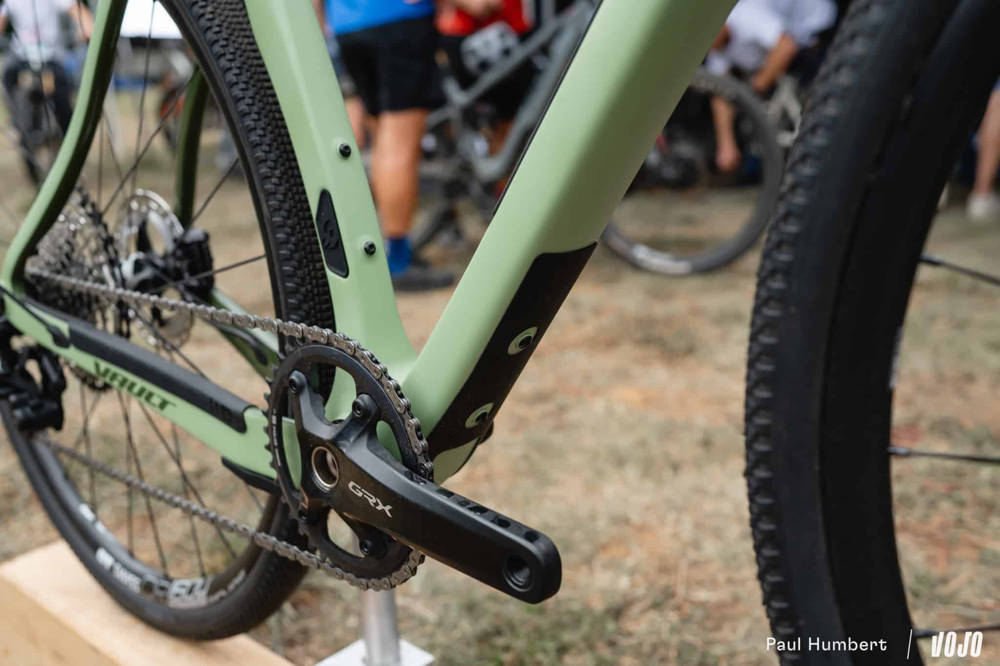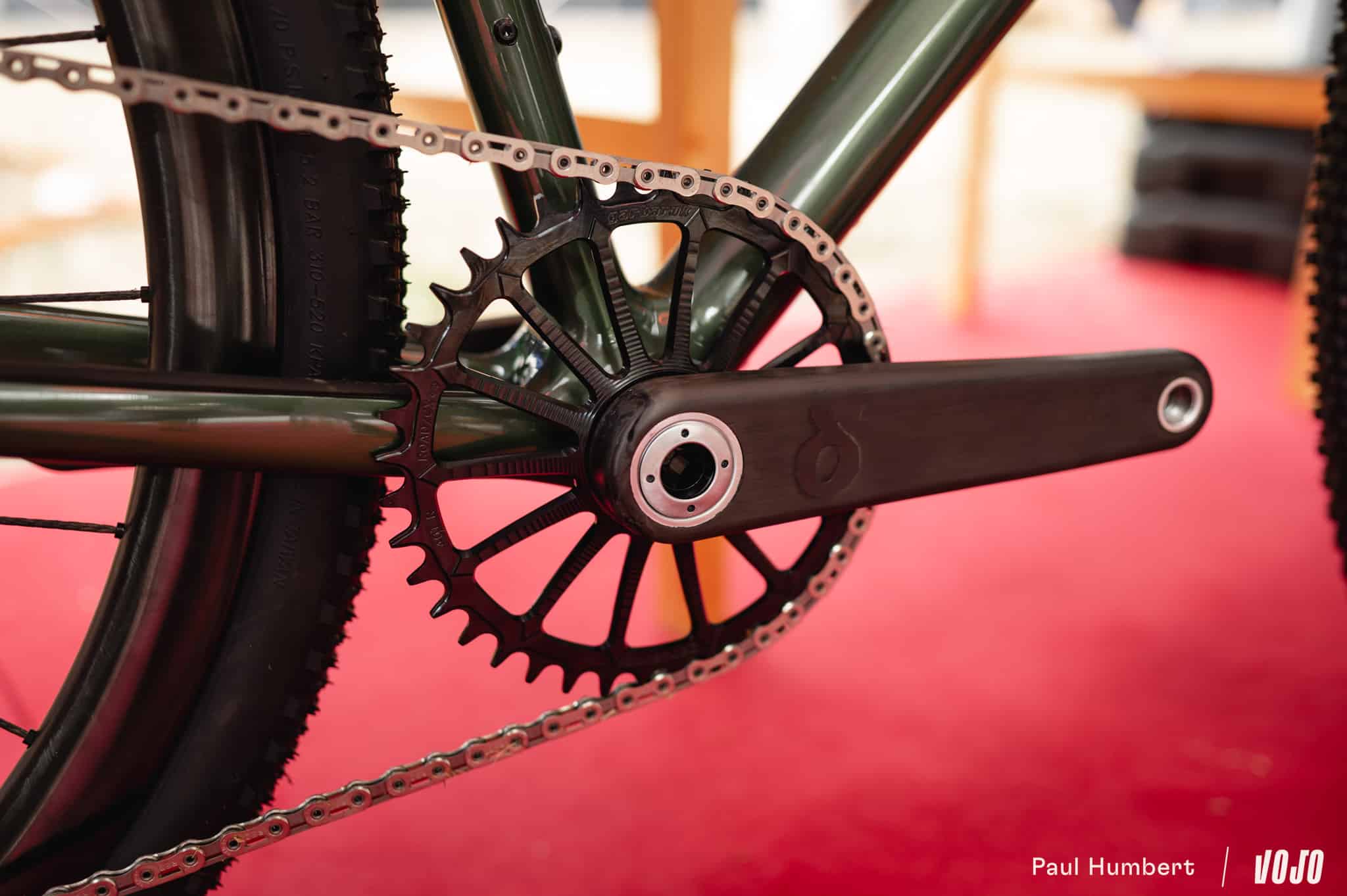 On découvre également le futur pédalier de la marque, annoncé à 280 g en route/gravel et 300 g pour le VTT. Il est ici présenté sur un Specialized Crux équipé du nouveau groupe Sram Red 13 XPLR AXS.