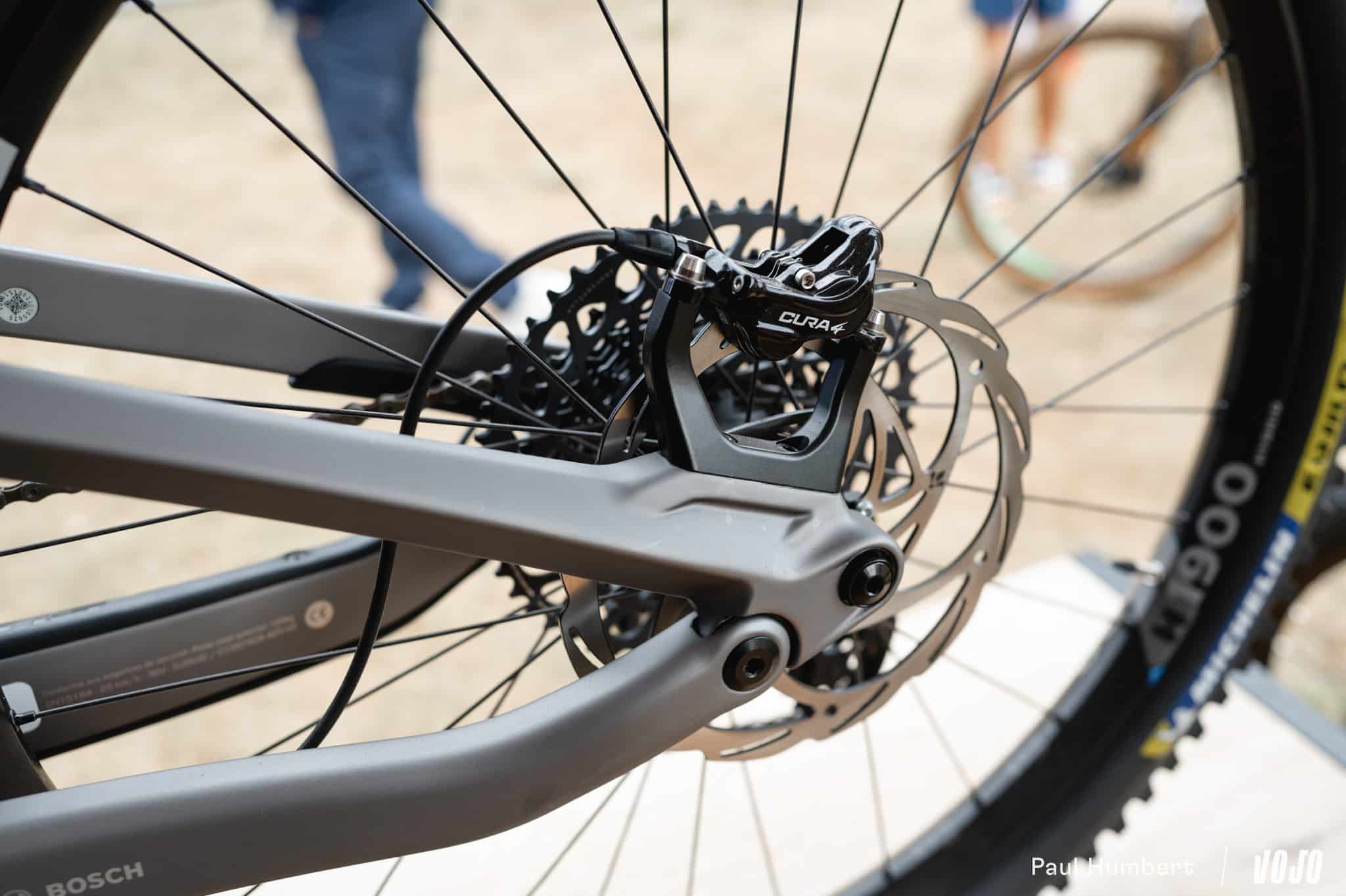 À l’instar de Sunn, Bulls ne cache pas le futur moteur Bosch (qu’on avait déjà repéré sur leur stand lors de l’Eurobike https://dev.vojomag.com/news/eurobike-2024-le-prochain-moteur-bosch-cx-apercu-a-eurobike/ ) sur un châssis de gros VTTAE, le Vuca. Le Sonic est également présent sur le stand, avec un cache-batterie prototype, certainement ce nouveau moteur, et un ABS Bosch couplé à des freins Magura.