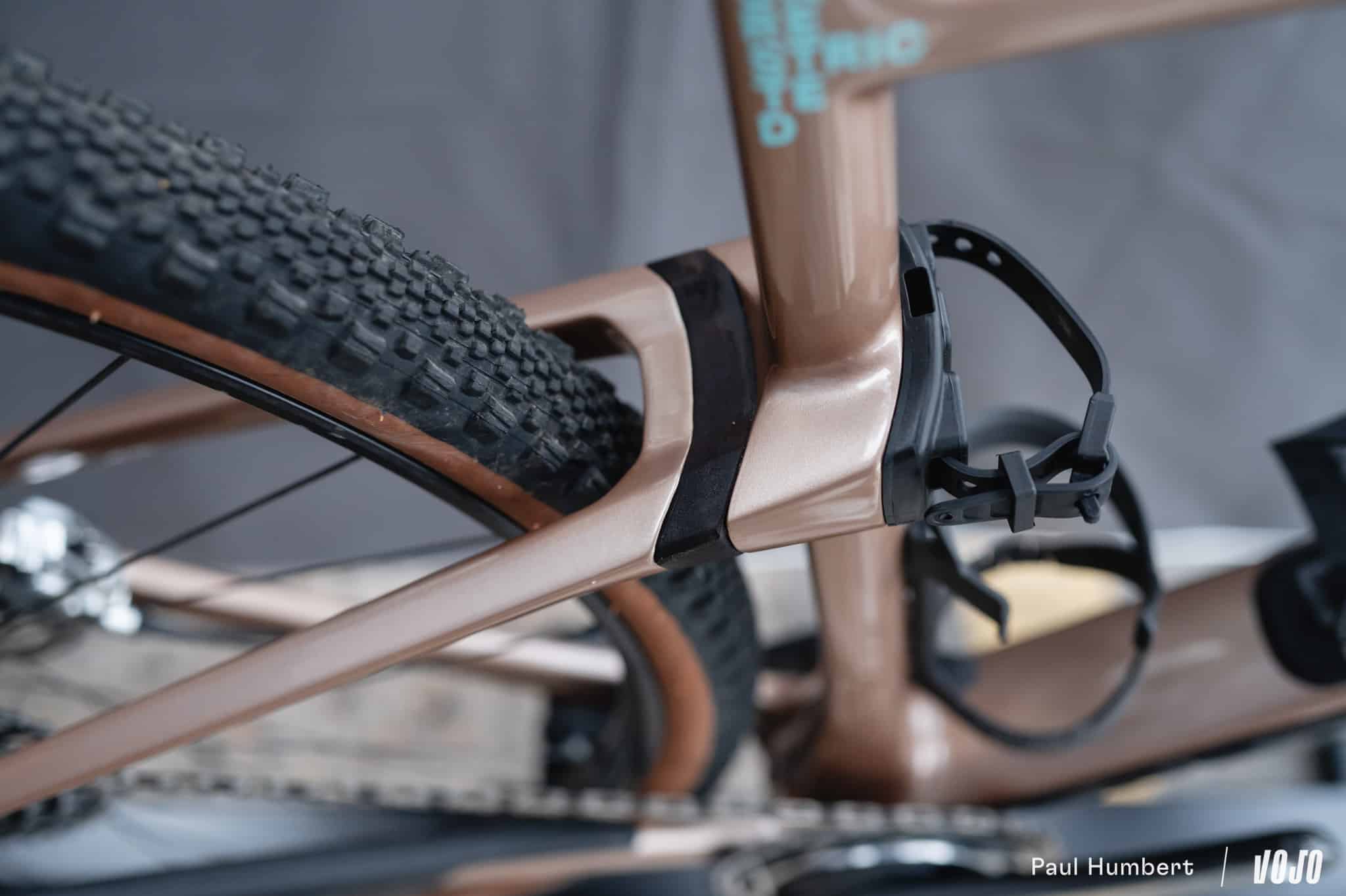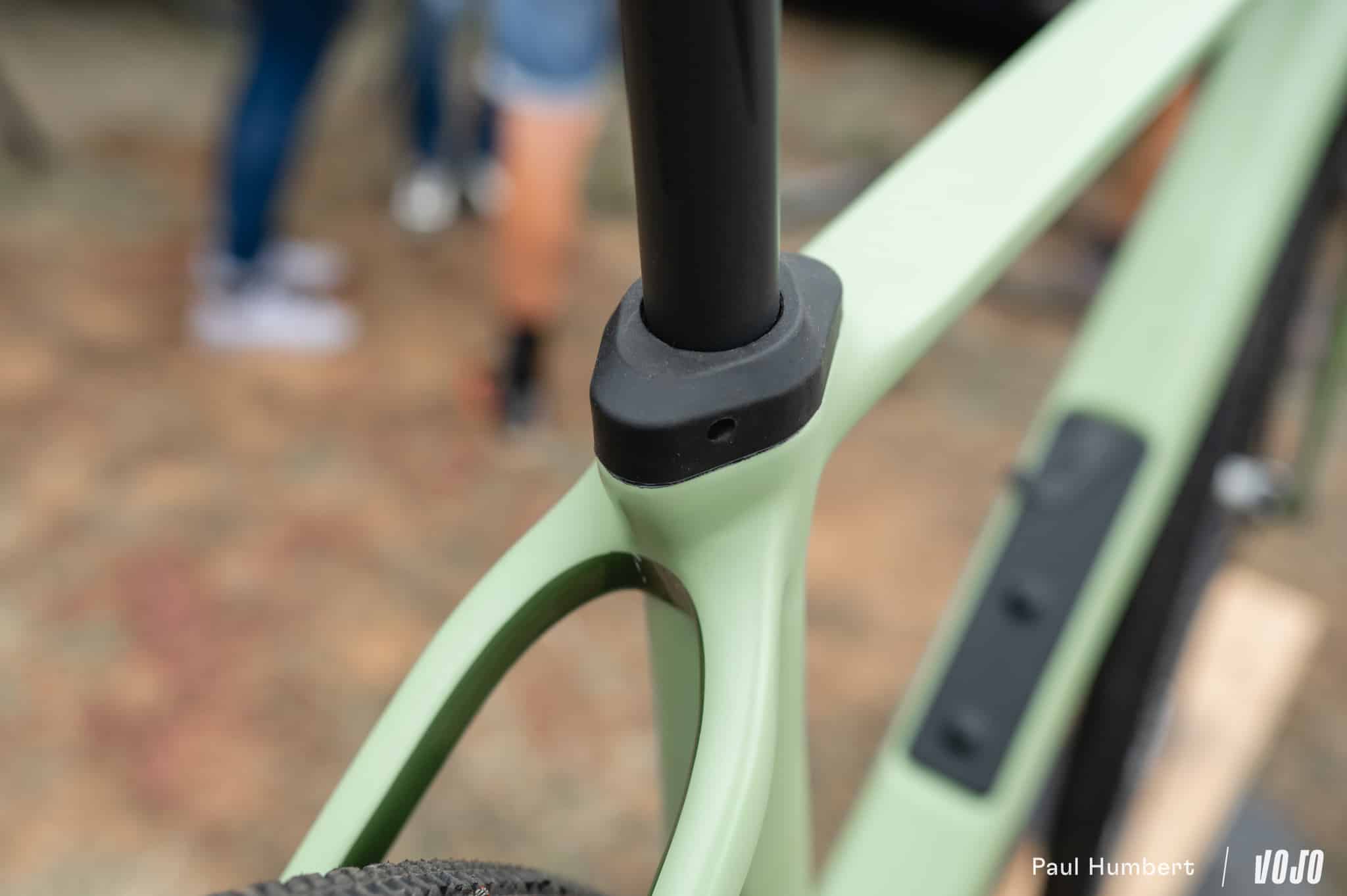 Surtout, on repère « l’Iso-Flex » : un insert en élastomère et fibres de nylon qui vient « travailler » dans le tube de selle pour apporter du confort. Ce système est conçu pour intégrer une tige de selle de 27,2 mm.
