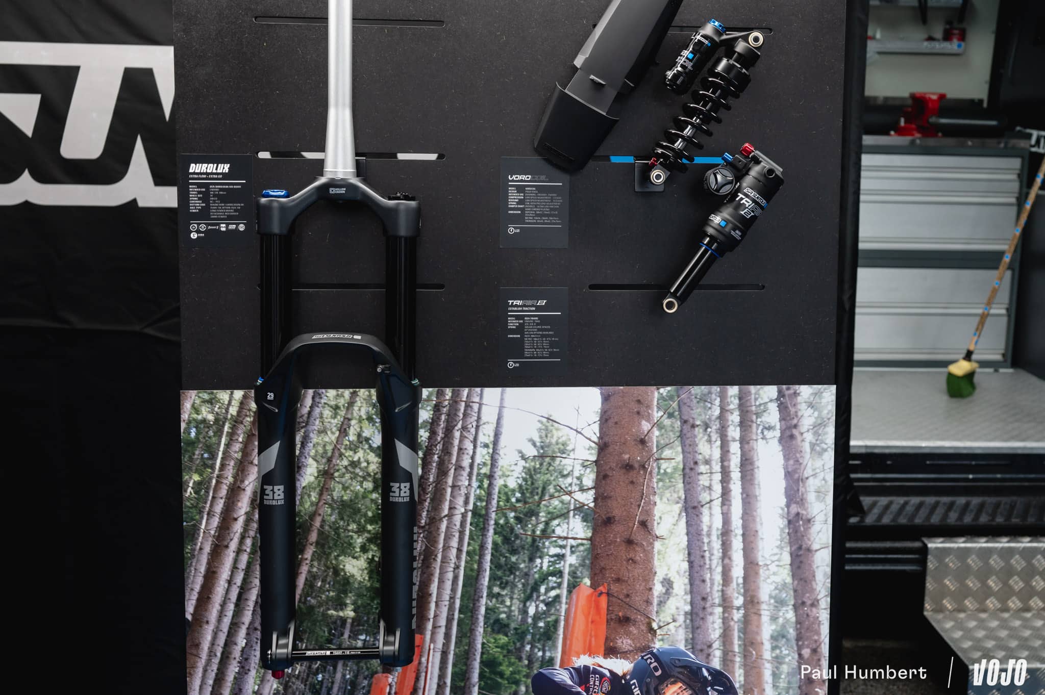 Toute la gamme est présentée, avec les nouveautés comme la cartouche Grip X et Grip X2 embarquée sur la Fox 36, et quelques jours après son lancement, on retrouve également la tige de selle électronique Fox Transfer Neo.