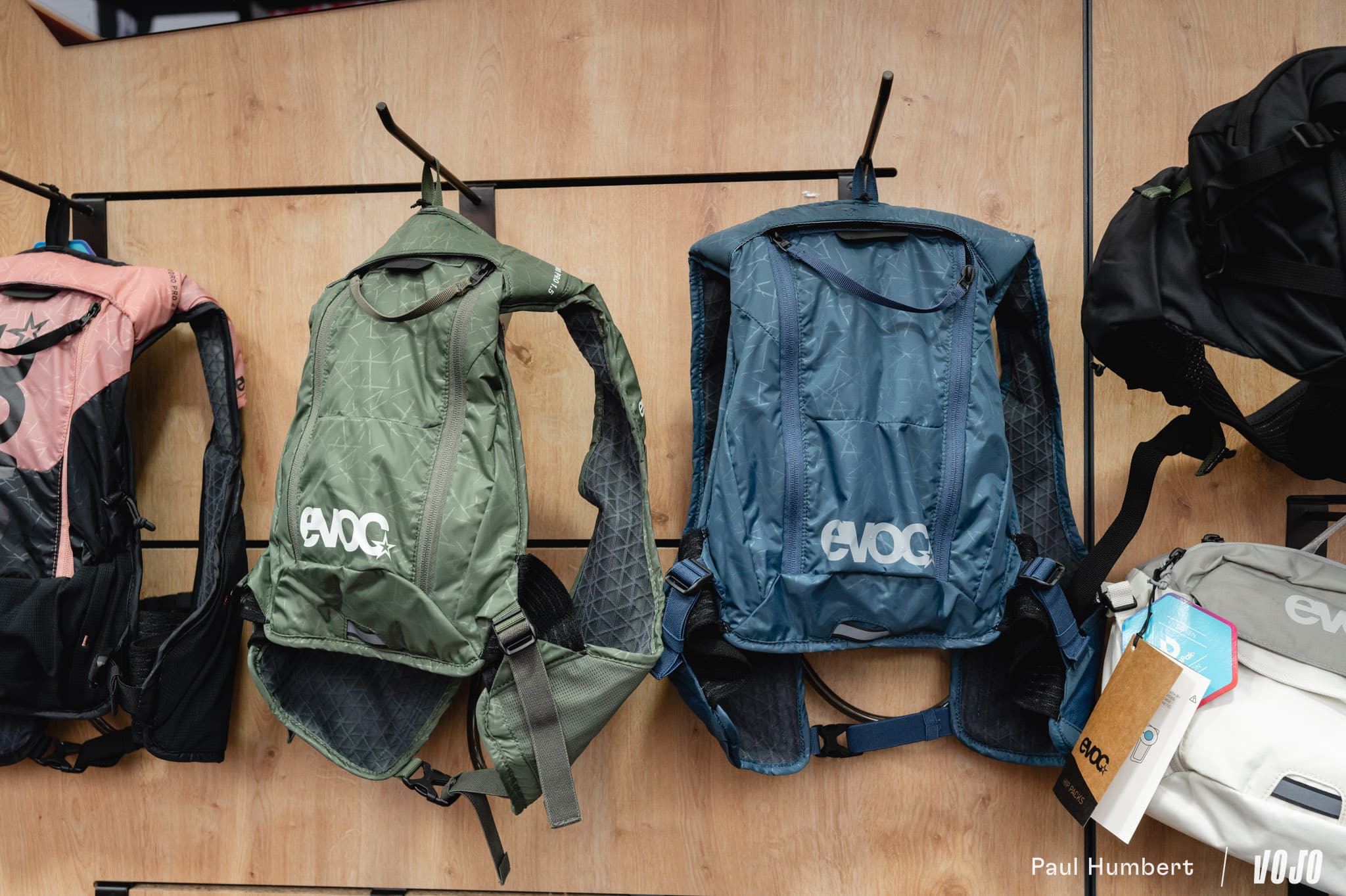 On retrouve sur le stand Evoc le tout petit sac Hydro Pro 3 (+ poche à eau de 1,5L) qu’on aime beaucoup. Nous n’avons pas encore de test disponible, mais on y travaille !