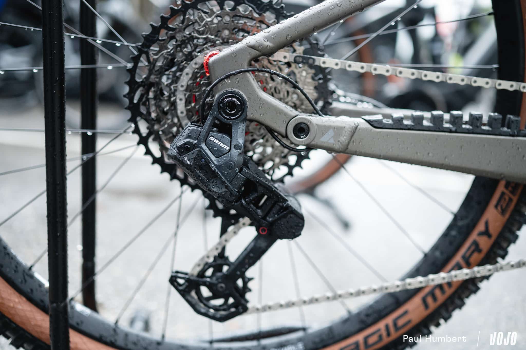 Le vélo opte pour le standard UDH et offre la possibilité de monter les dernières générations de dérailleurs Sram sans patte de dérailleur. Sur le Pivot Vault, on peut monter des pneus jusqu’à 700 x 50 mm.