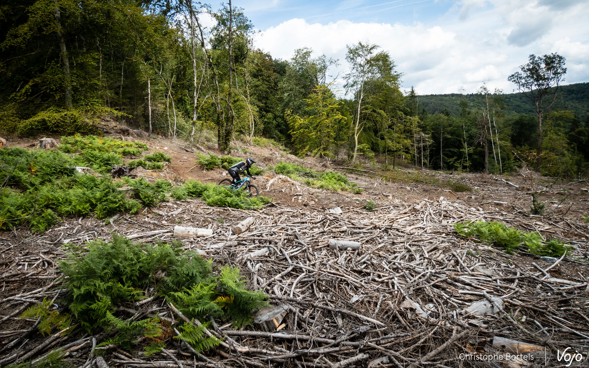 Oui, à cause des scolytes… On se doutait un peu que ça allait arriver. Mais vu que les traces ne sont pas encore officielles, ils débardent et on retrouve le terrain comme ça. A l’avenir, ils devront tenir compte de la trace, ne pas la remettre en état mais au moins y faire attention. Mais sur la Goulayante par exemple, ça a permis de la changer un petit peu, c’était une opportunité finalement. C’est d’ailleurs ce qu’on a expliqué à l’ONF : si il faut fermer une trace pendant 6 mois pour l’exploitation forestière, puis qu’on doit la refaire, aucun problème, ça permet de changer, de faire des variantes en restant dans la même zone.
