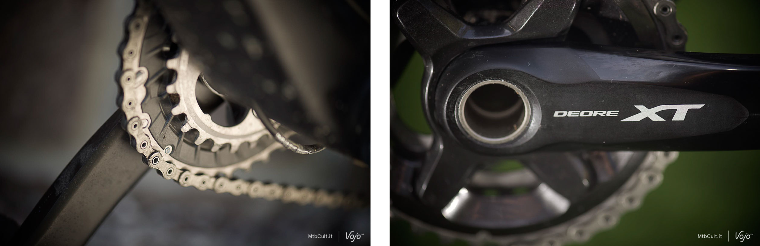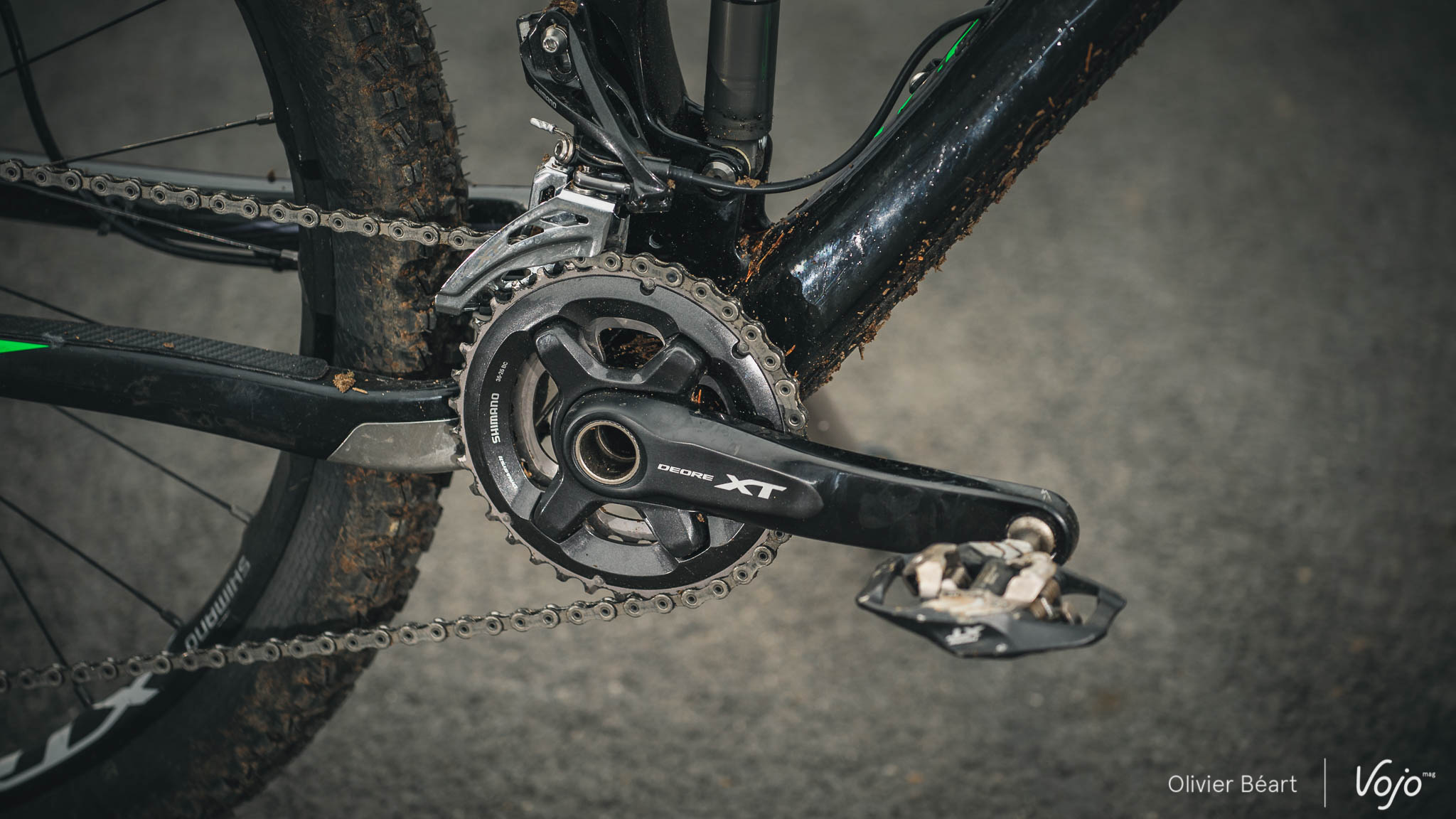 Déjà référence en la matière, Shimano a encore travaillé plus le dessin de ses plateaux pour accompagner mieux la chaîne lors des changements de rapports. La finition des manivelles du nouveau pédalier Shimano XT 2016 nous a aussi semblé plus résistante à l’usure que celle du dernier XTR qui, il faut le dire, n’est pas un modèle du genre. Les manivelles semblaient encore neuves alors qu’elles ont déjà fait quelques événements, alors que les XTR se marquent dès les premières sorties. Tout cela sera bien entendu à confirmer lors d’un test longue durée.