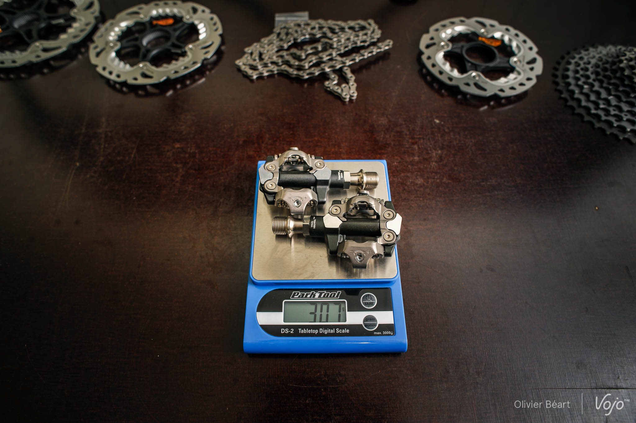 Il faut un oeil expert pour déceler les changements sur les nouvelles pédales XTR M-9000, mais la lecture de la fiche technique nous apprend que l’évacuation de la boue a été améliorée et la balance nous montre qu’elles ont perdu une bonne vingtaine de grammes. Shimano reste pourtant fidèle à des axes en acier et continue de privilégier la réputation de fiabilité de ses pédales par rapport au poids.