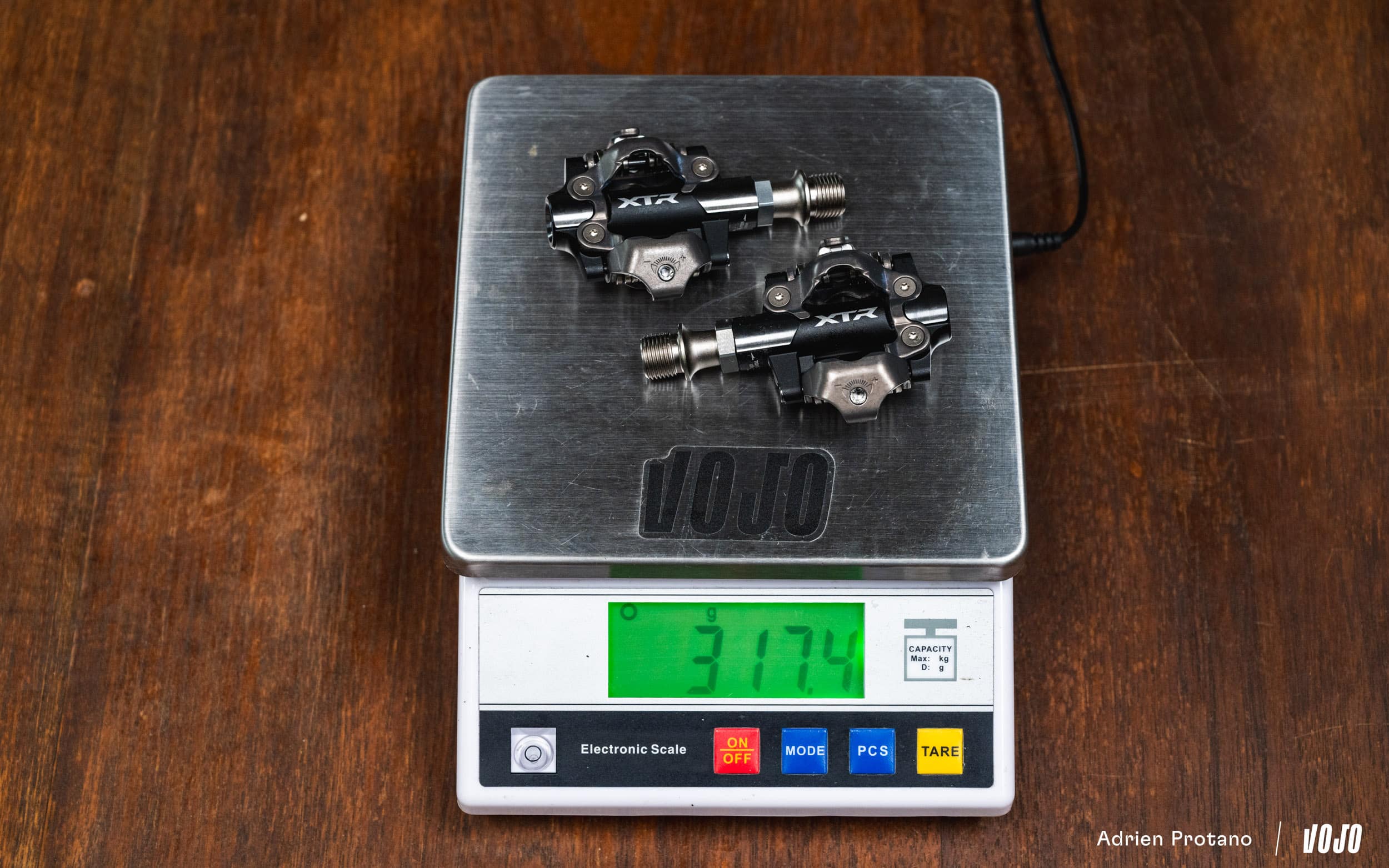 Même si elles ont évolué par rapport à la précédente génération au niveau de la forme, le résultat sur la balance reste identique, à 3 g près en faveur de la précédente génération de pédales XTR dans leur version XC.