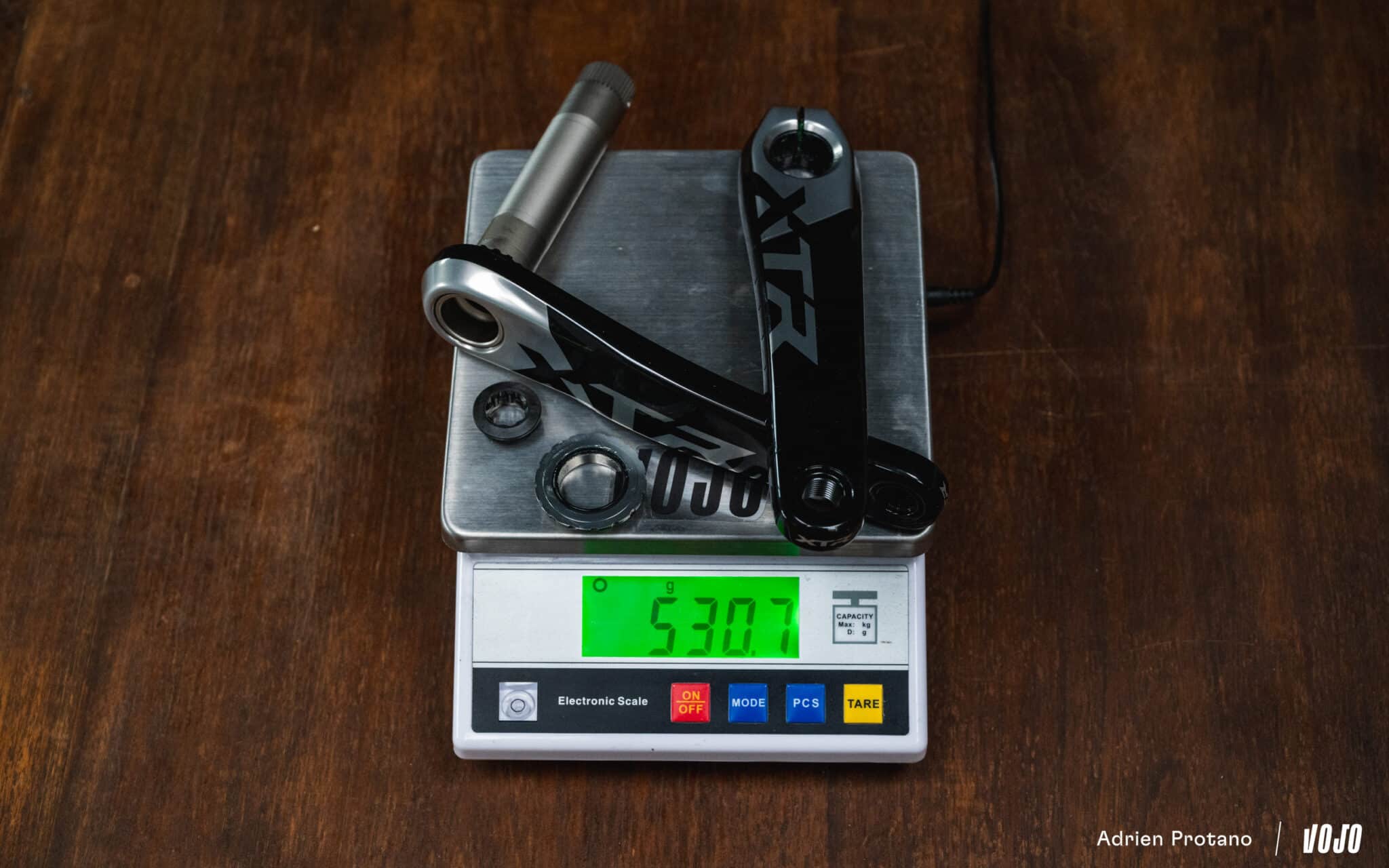Nous pensions recevoir le pédalier XTR FC-M9200, la version XC la plus légère, mais nous avons reçu les manivelles 9220 renforcées. Voilà qui explique leur poids qui peut sembler élevé. On reste cependant sur des valeurs quasi identiques à celles du précédent XTR, qui pesait aussi tout juste moins de 600 g dans sa version renforcée. La version XC du M9100 pesait autour de 510 g, et on peut s’attendre à ce que le nouveau M9200 XC soit dans des poids similaires.
