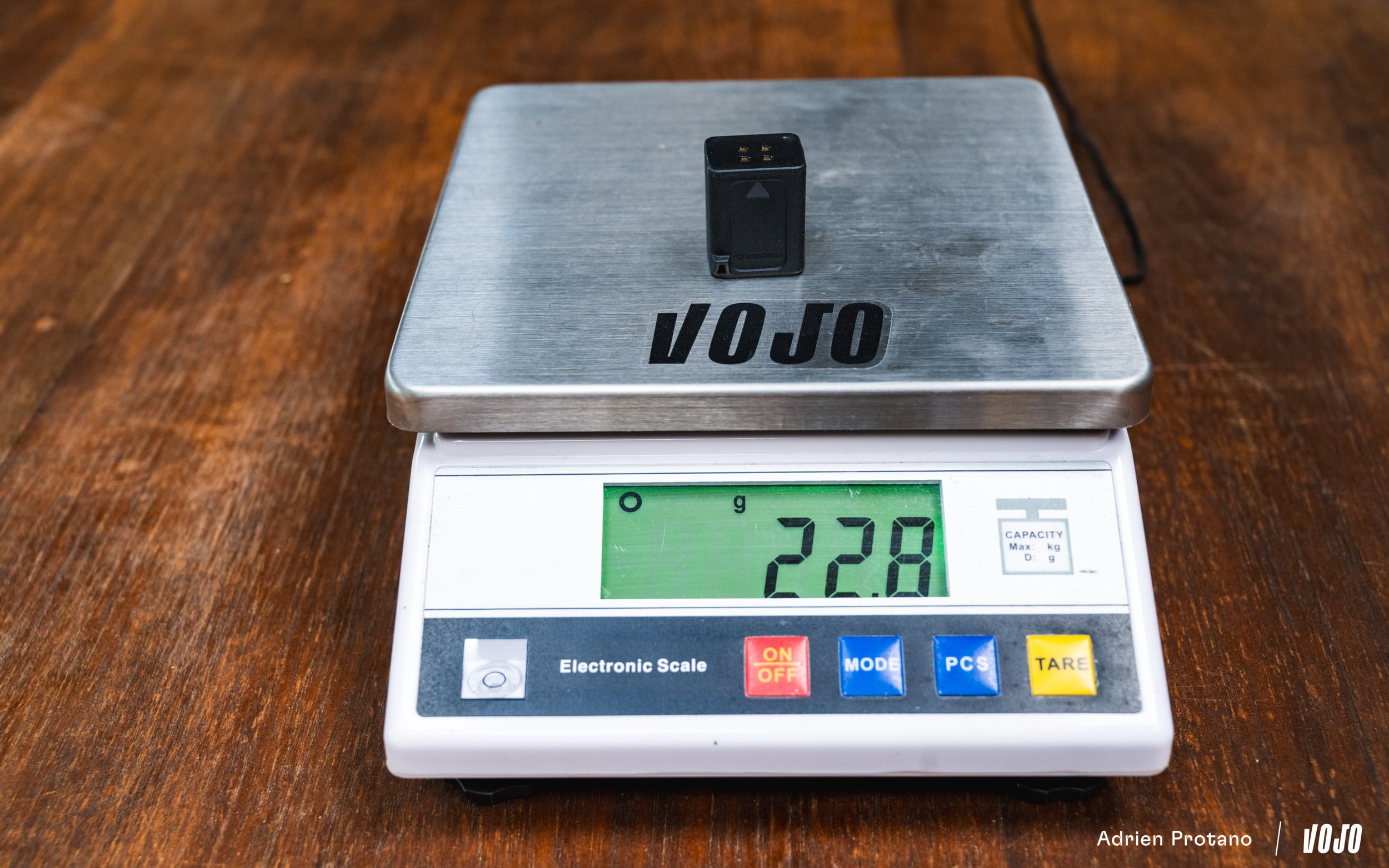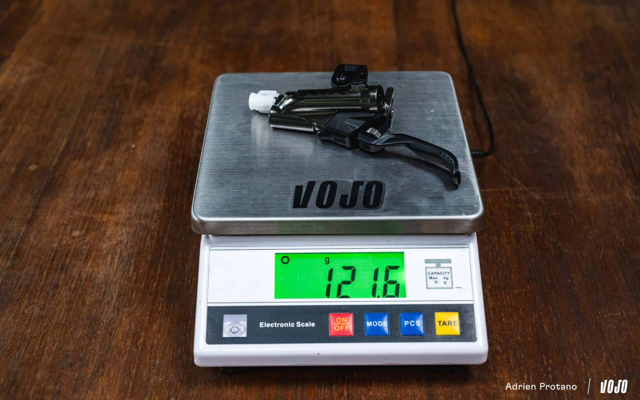 La petite batterie pèse quant à elle 23 g (compris dans le poids du dérailleur tel que montré ci-dessus).