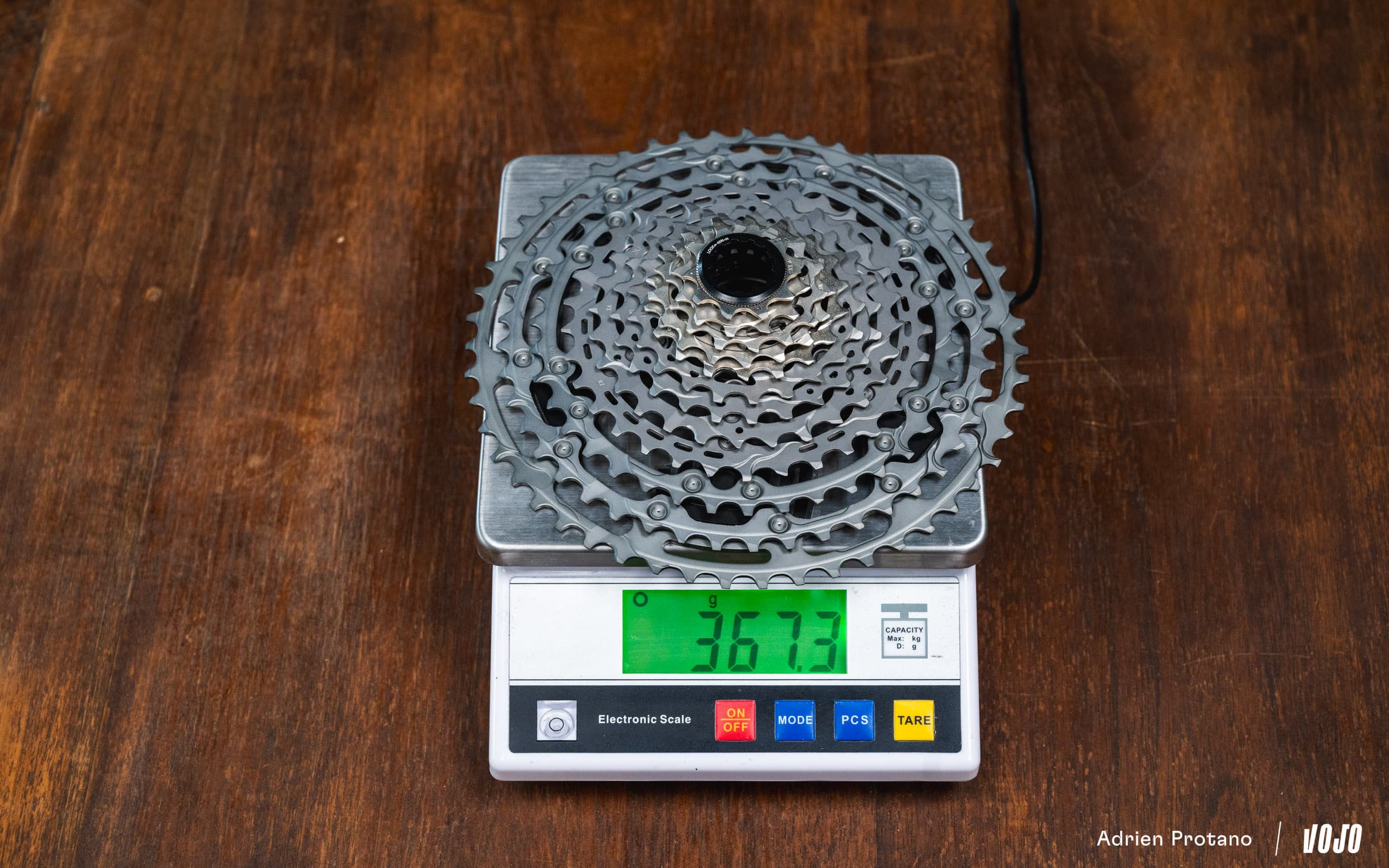 La finition et quelques détails changent entre les cassettes 12 vitesses de la génération 9100 et les nouvelles du groupe XTR M9200, mais le résultat sur la balance est identique, avec 367 g dans les deux cas. La nouvelle cassette Shimano XTR M9200 en 9-45 dents est par contre annoncée 70 g plus légère. Mais nous n’avons pas encore pu vérifier cette affirmation à l’heure d’écrire ces lignes.