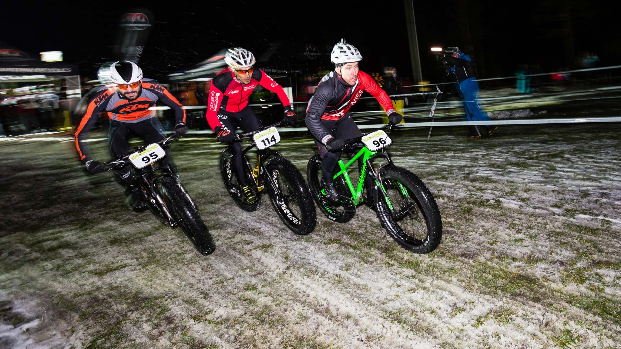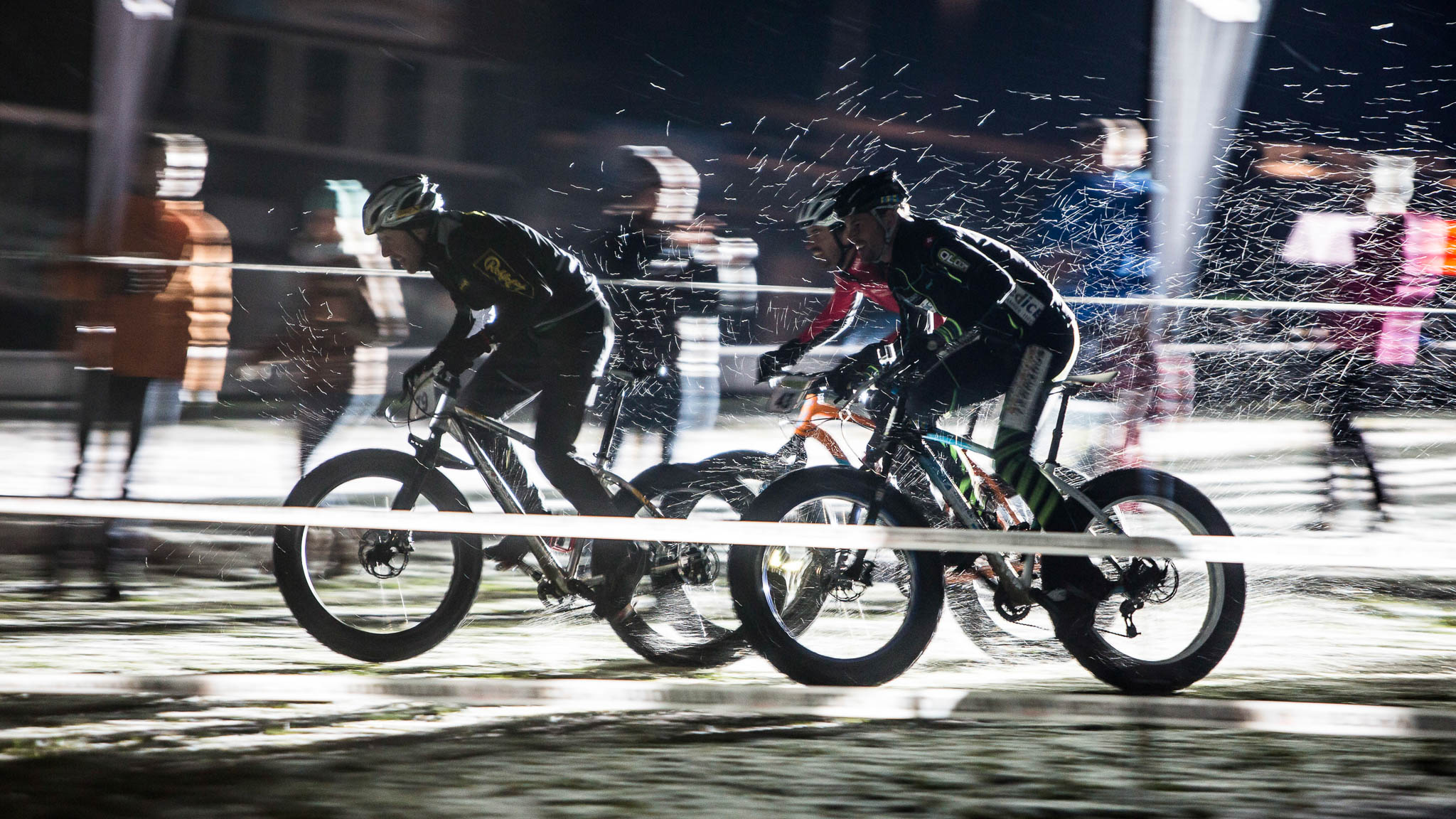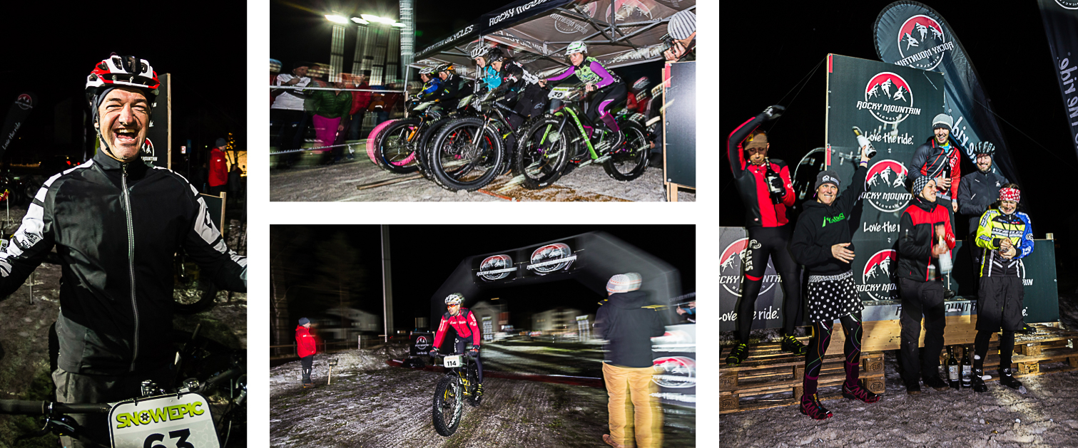 Le vendredi soir, une épreuve particulièrement fun attend les « fat-concurrents », avec le Rocky Eliminator disputé par groupes de 5 sur un parcours tracé sur une vaste prairie éclairée… hélas sans beaucoup de neige.