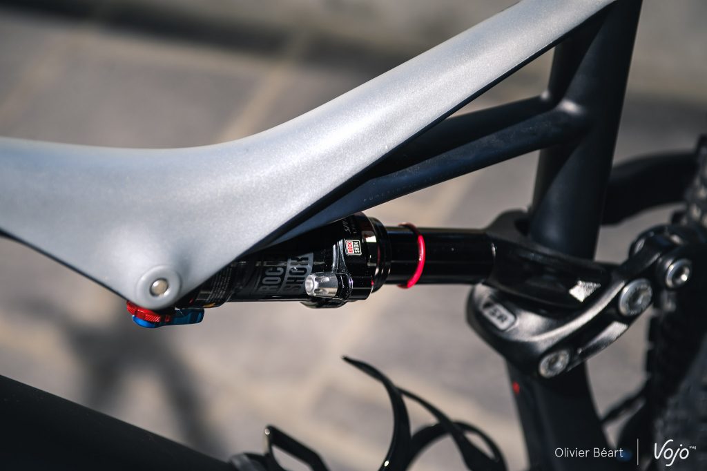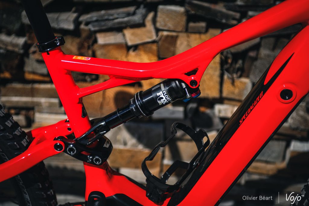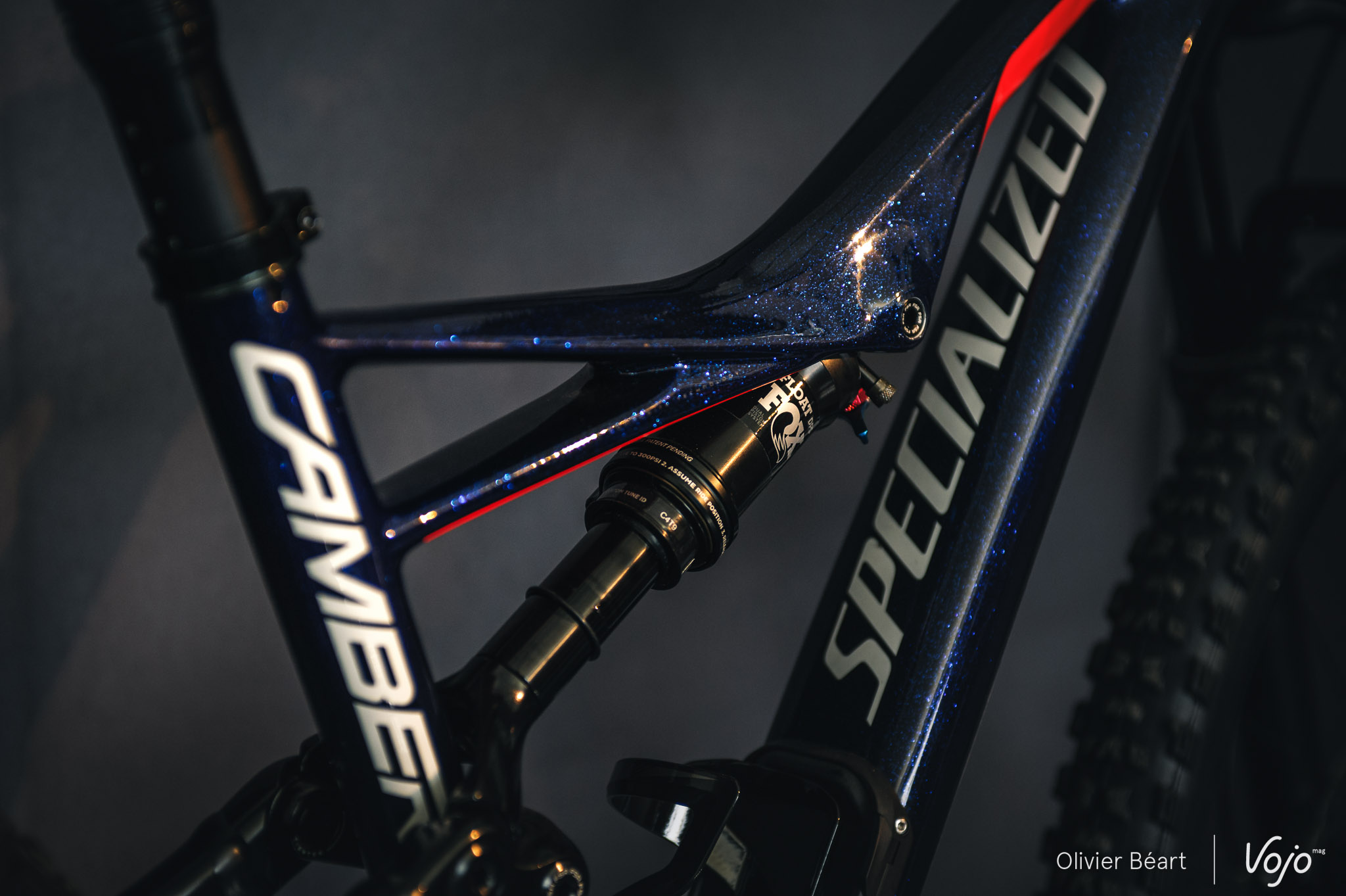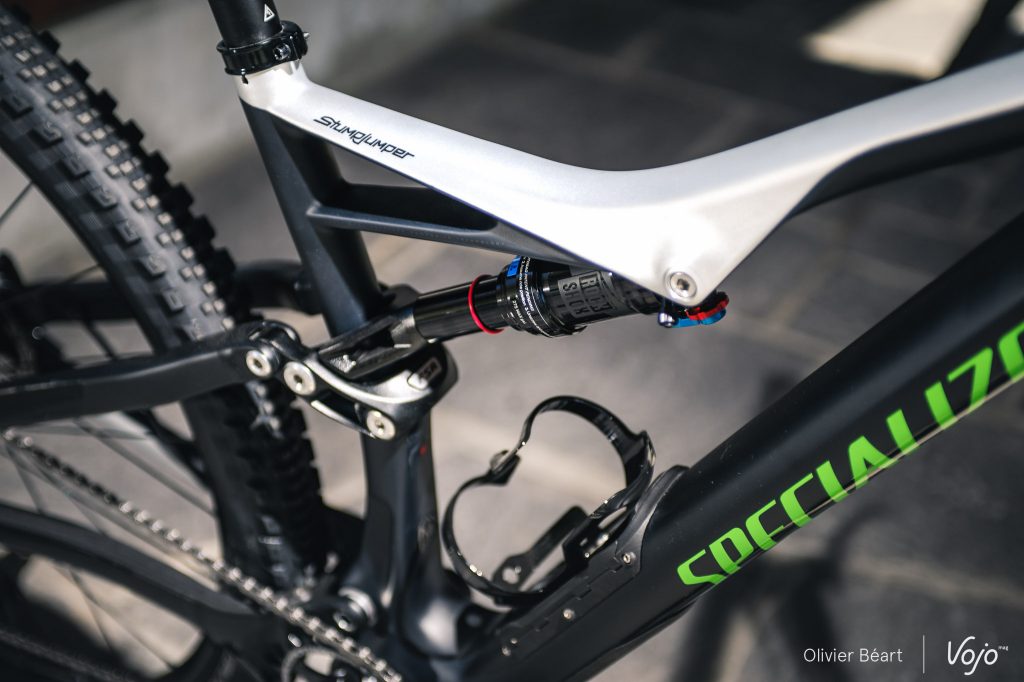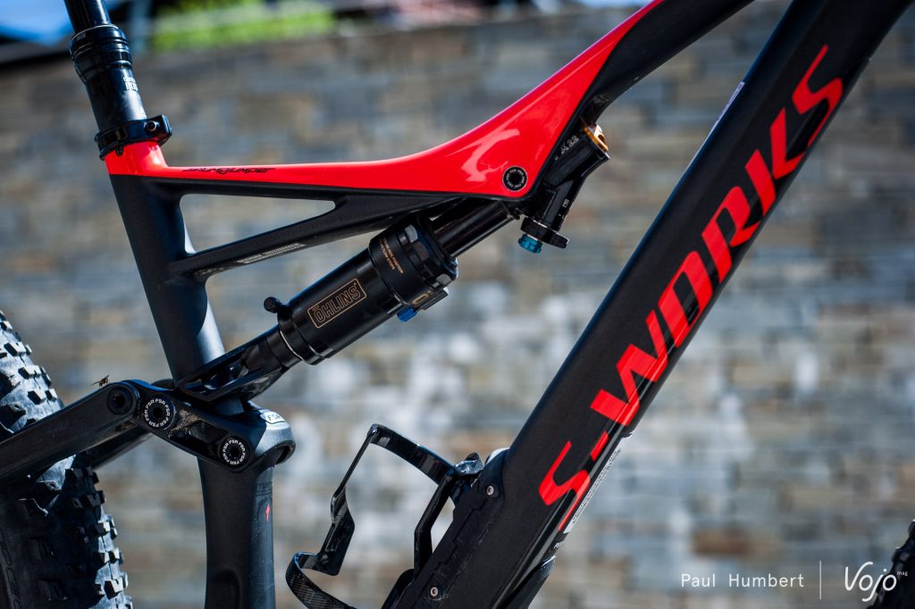 On note aussi une évolution des spécifications, avec des suspensions Ohlins qui arrivent sur les Stumpjumper FSR S-Works (amortisseur et fourche) et Pro (amortisseur). L’amortisseur « inline » est spécifique à Specialized.