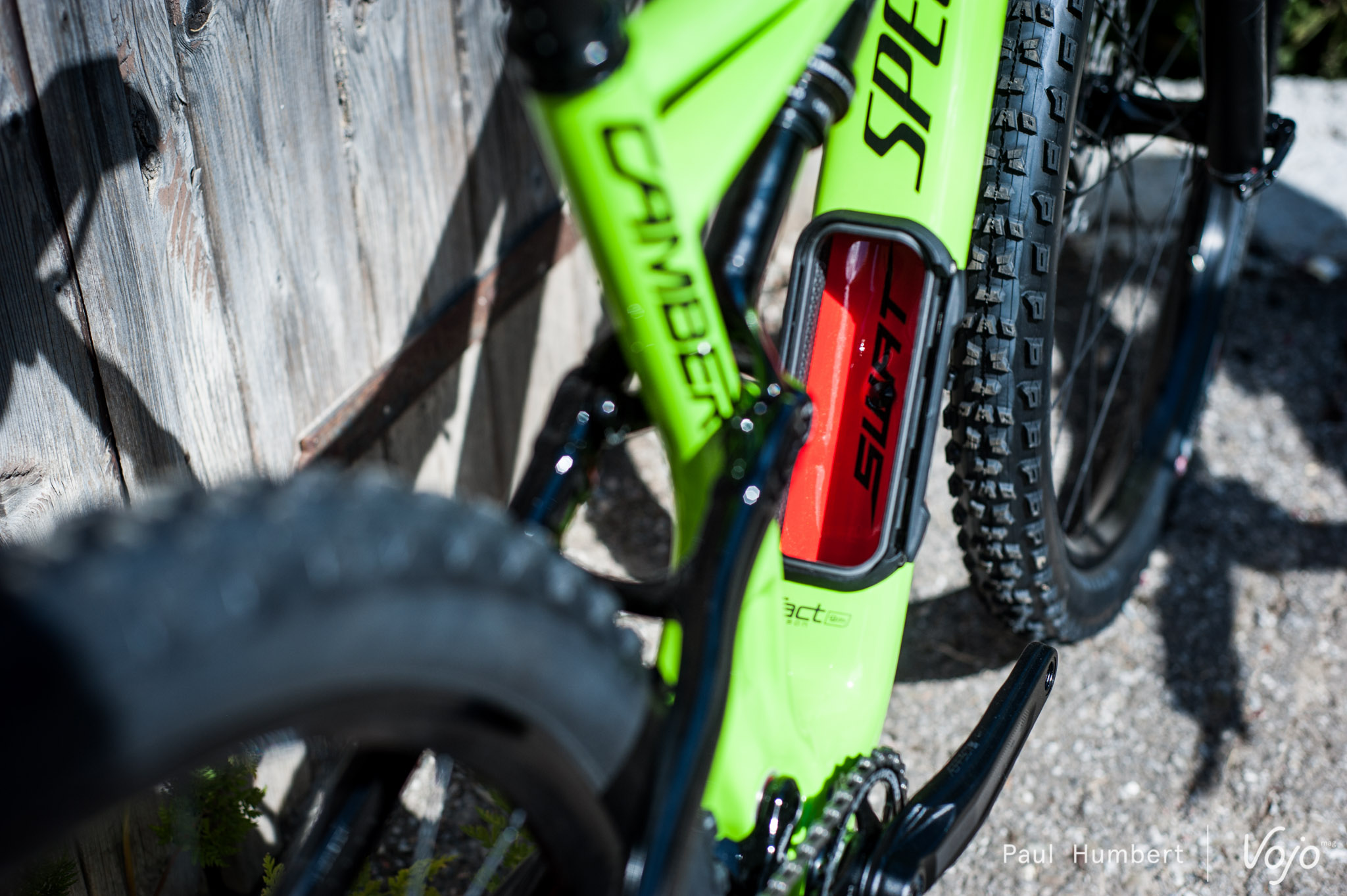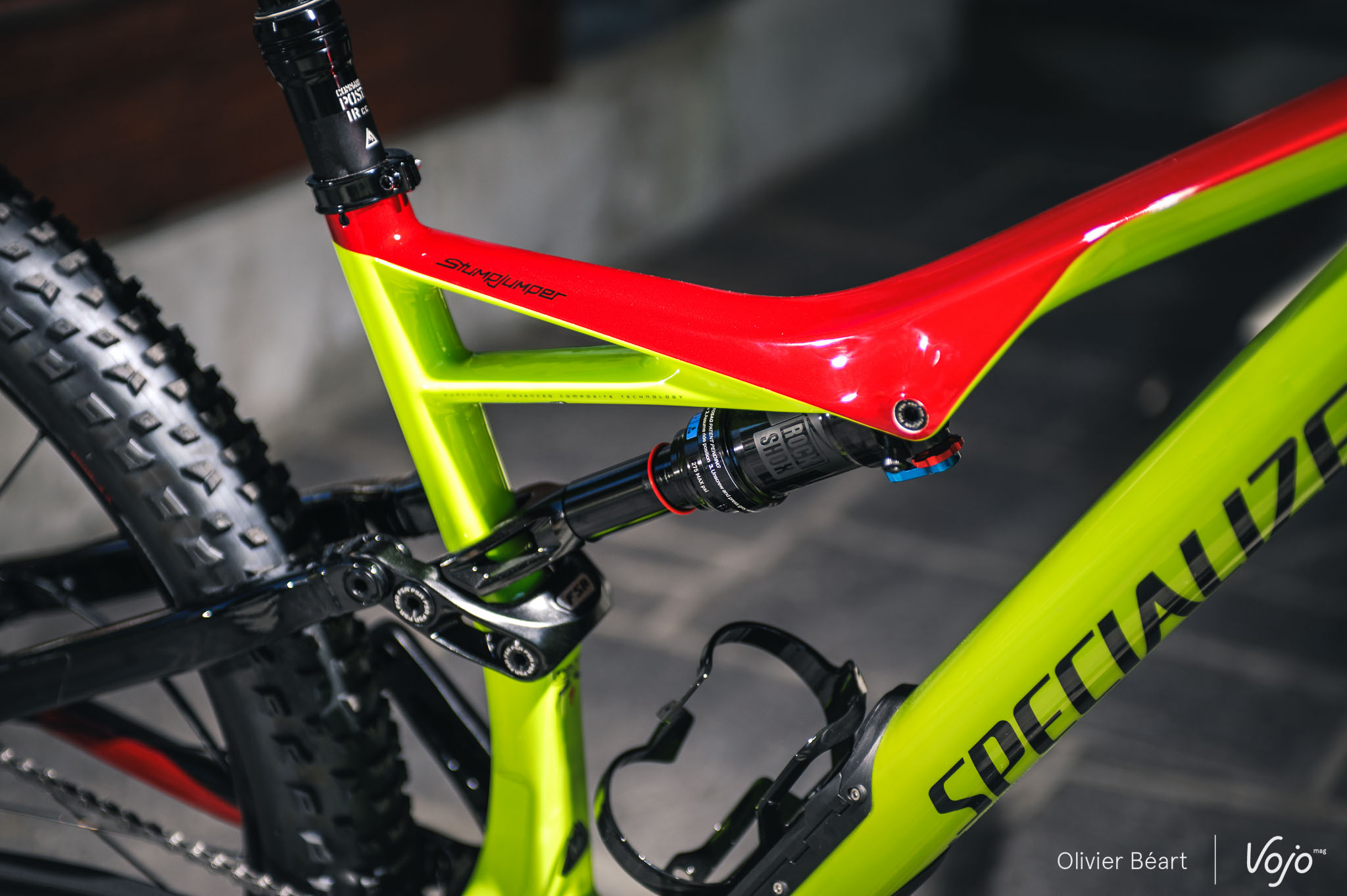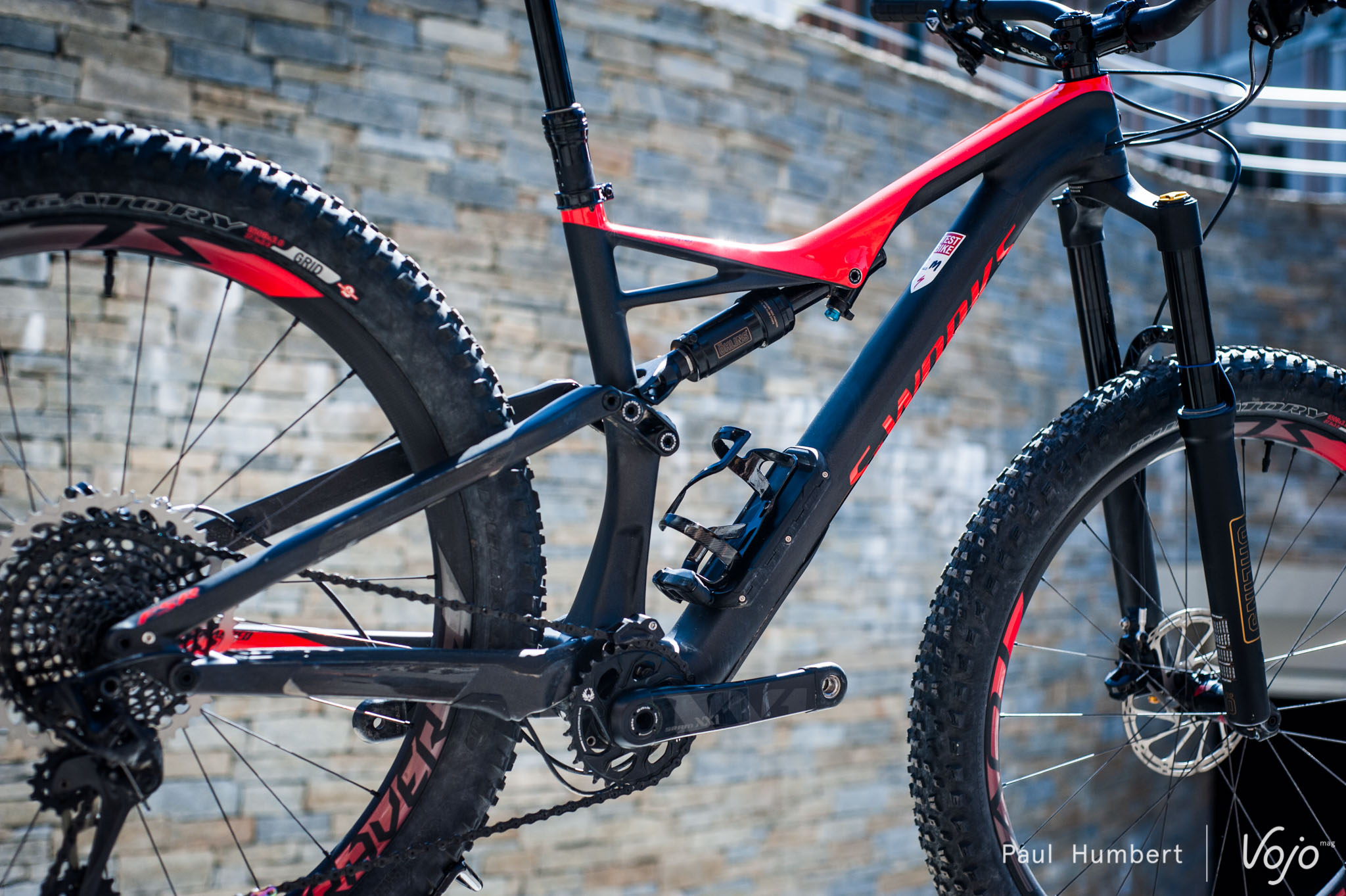 On note aussi une évolution des spécifications, avec des suspensions Ohlins qui arrivent sur les Stumpjumper FSR S-Works (amortisseur et fourche) et Pro (amortisseur). L’amortisseur « inline » est spécifique à Specialized.