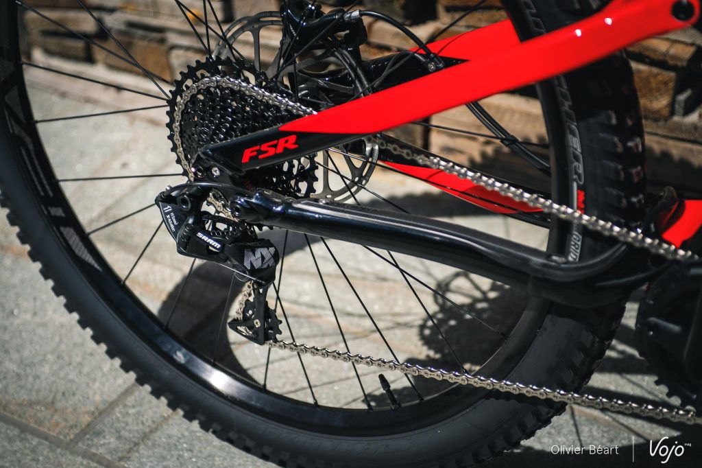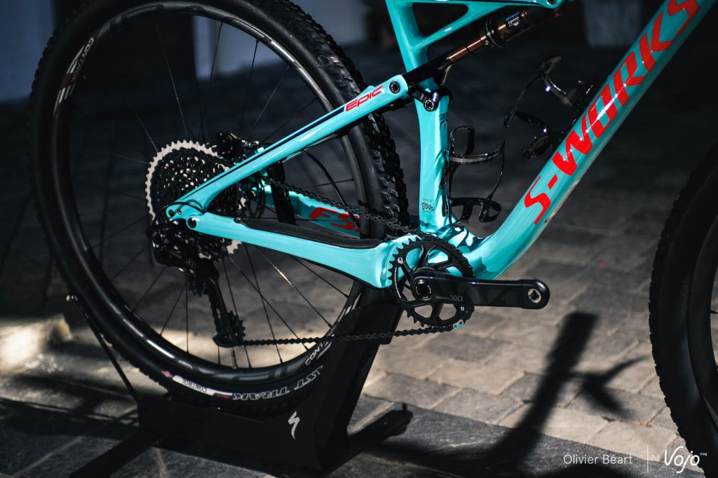 Sur les vélos complets, quelques grammes ont été gagnés grâce à quelques modifications sur les montages. Le gain va jusque 200g sur le S-Works Epic FSR World Cup, qui est équipé d’un groupe Sram Eagle et de la nouvelle RockShox Sid World Cup avec le Brain. Le prix de cette version, pourtant mieux équipée, baisse de près de 1500€ (8499€ contre 9999€, grâce notamment à la disparition de la RS-1 et à une meilleure parité euro/dollar) ! Un modèle Pro, en Sram XO1 Eagle, Sid et cadre Fact 10m voit aussi le jour à 6999€.