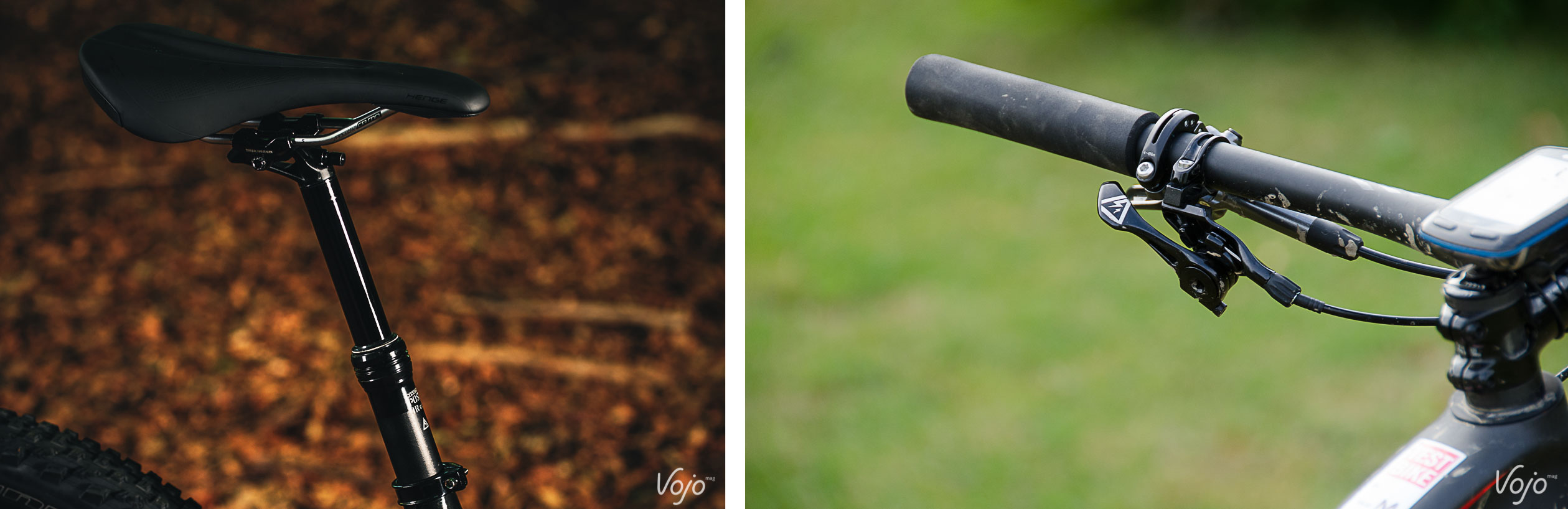 Même si nous avions émis quelques réserves sur la nouvelle tige de selle Cammand IRcc lors du test du Stumpjumper, nous l’avons cette fois vraiment appréciée et nous avons réussi à tirer pleinement profit des 10 crans qui permettent de choisir des positions intermédiaires entre le tout en haut et le tout en bas.