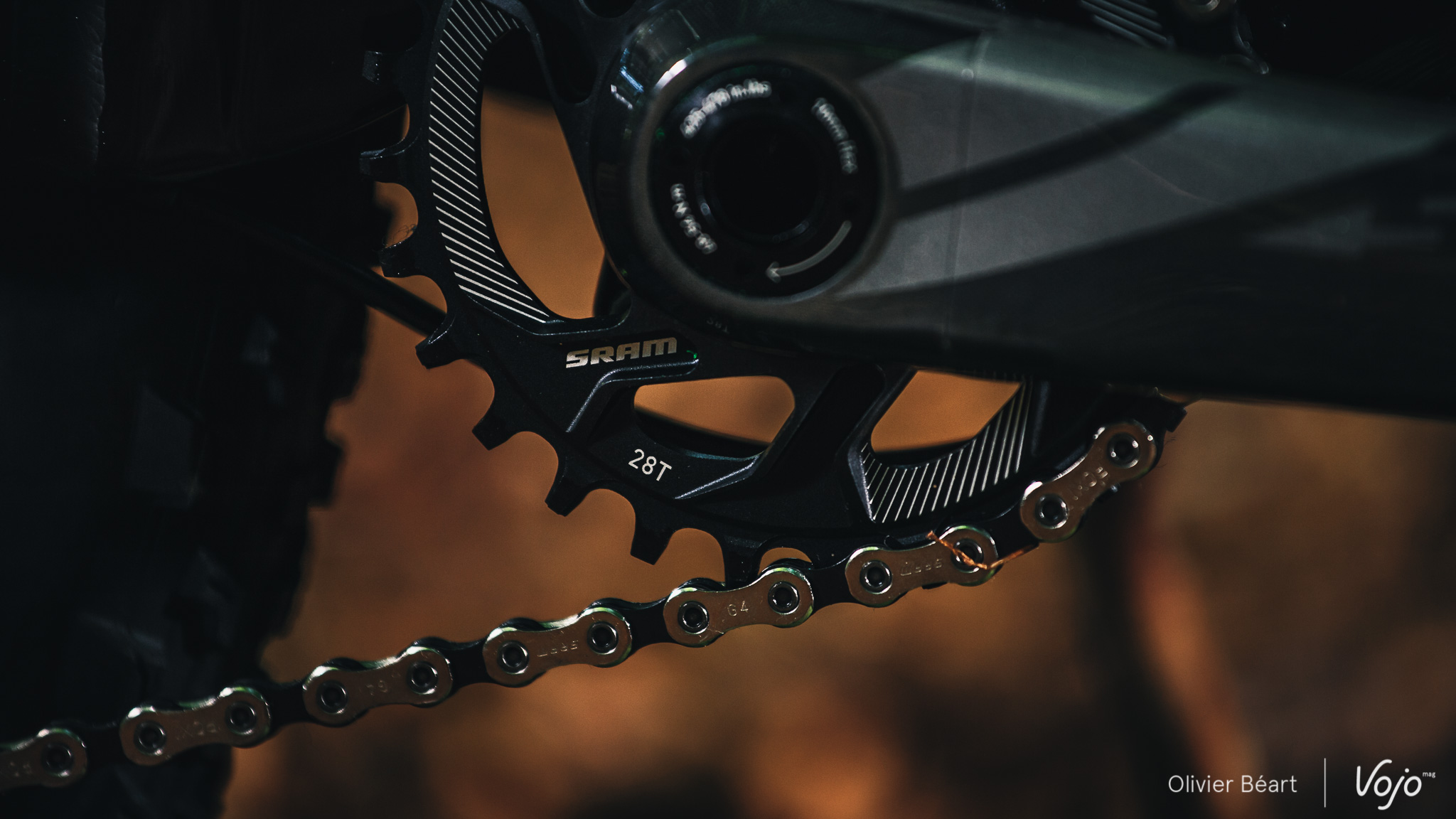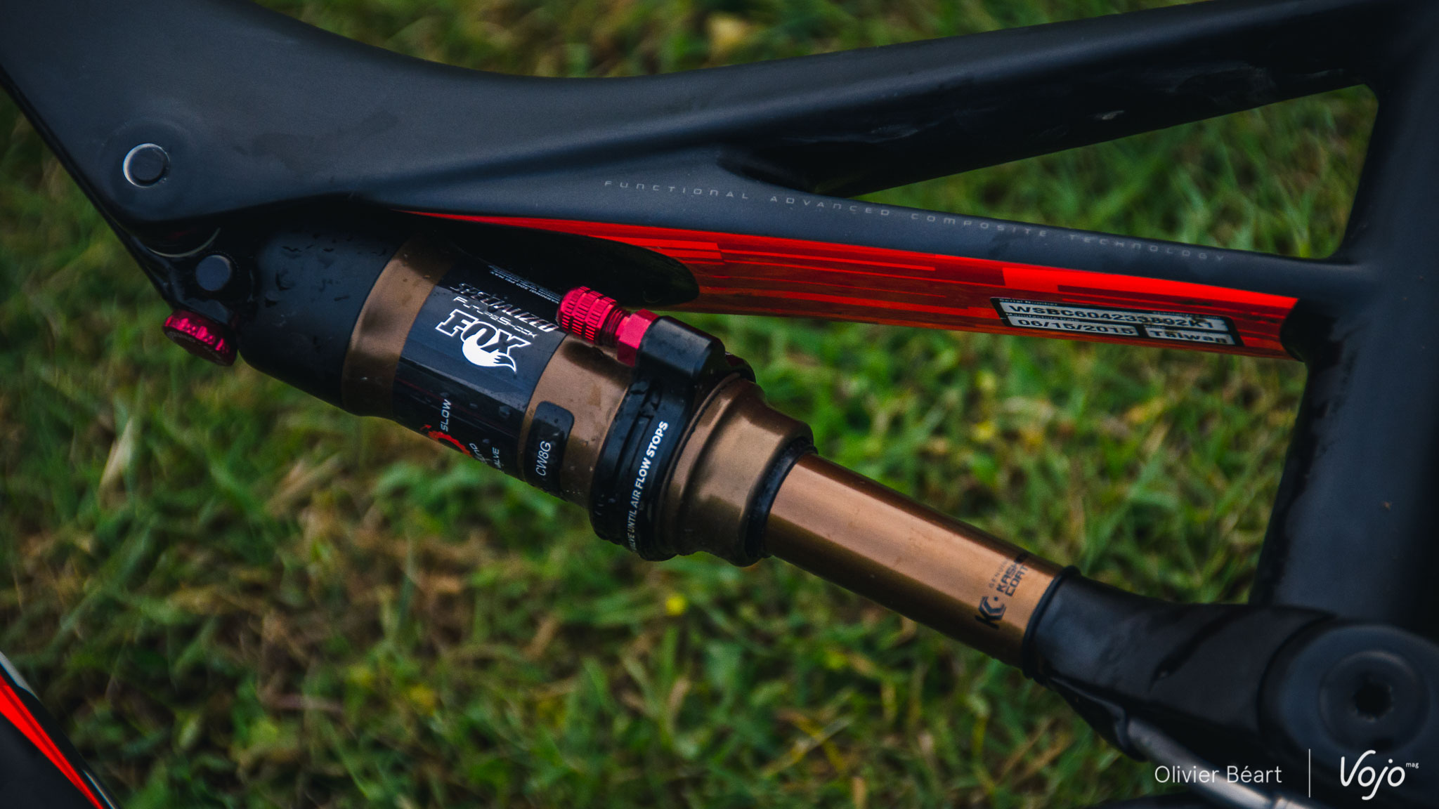 Du côté de la suspension arrière, le génial système Auto-Sag permet de trouver très rapidement une bonne base mais, comme à notre habitude, nous avons dégonflé un peu plus l’amortisseur pour partir sur un Sag de 13mm au lieu de 11 comme prévu à la base pour obtenir un peu plus de confort et utiliser tout le débattement avec notre style de pilotage plutôt souple. Après quelques tentatives entre tout ouvert et tout fermé, nous avons choisi de rouler avec 2 clics (sur 6) au niveau du Brain, à partir de la position ouverte. Toutes les positions sont franchement roulables, mais c’est celle qui nous a semblé offrir le meilleur compromis.