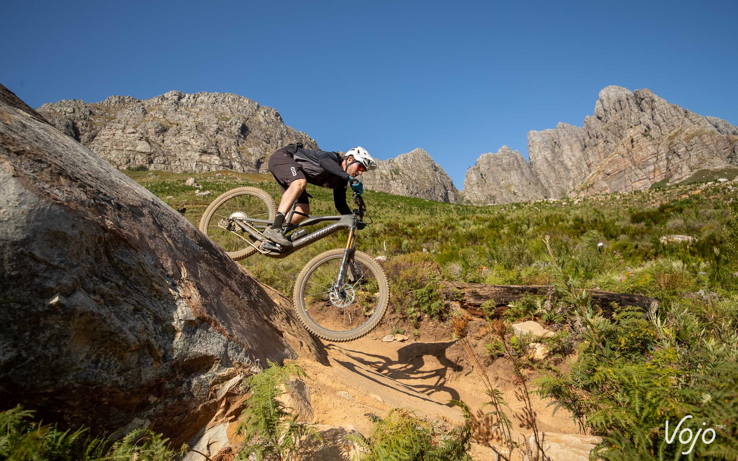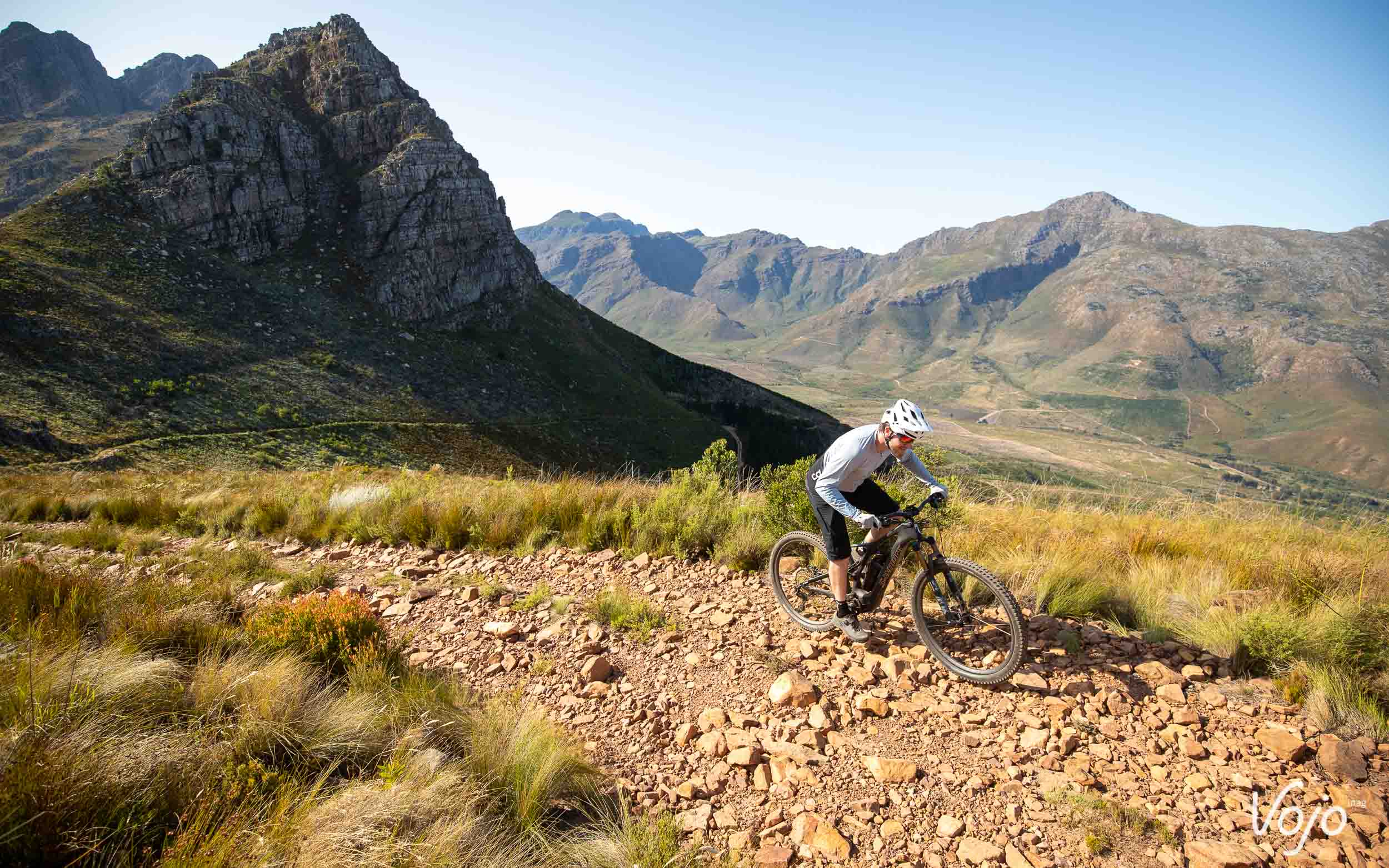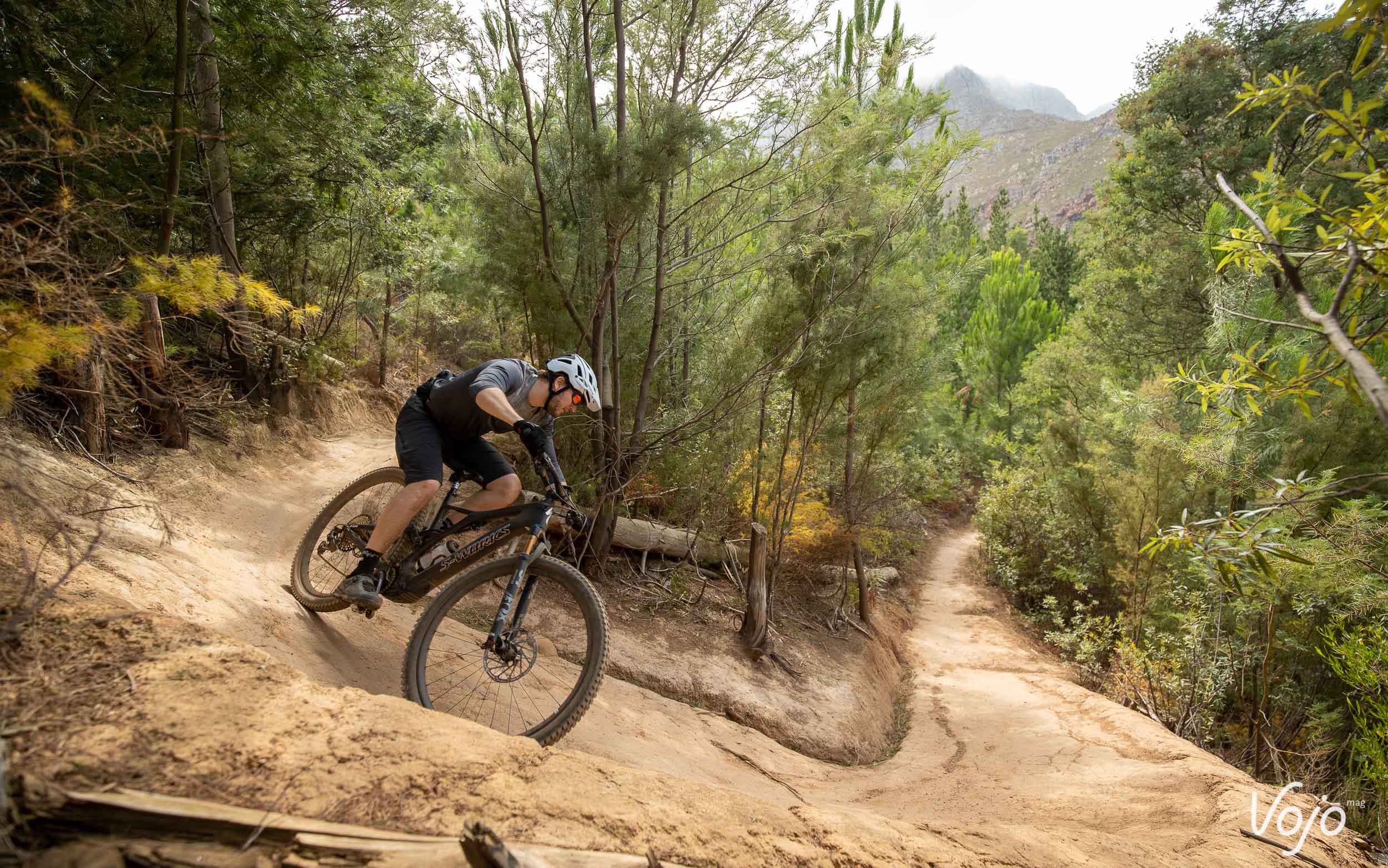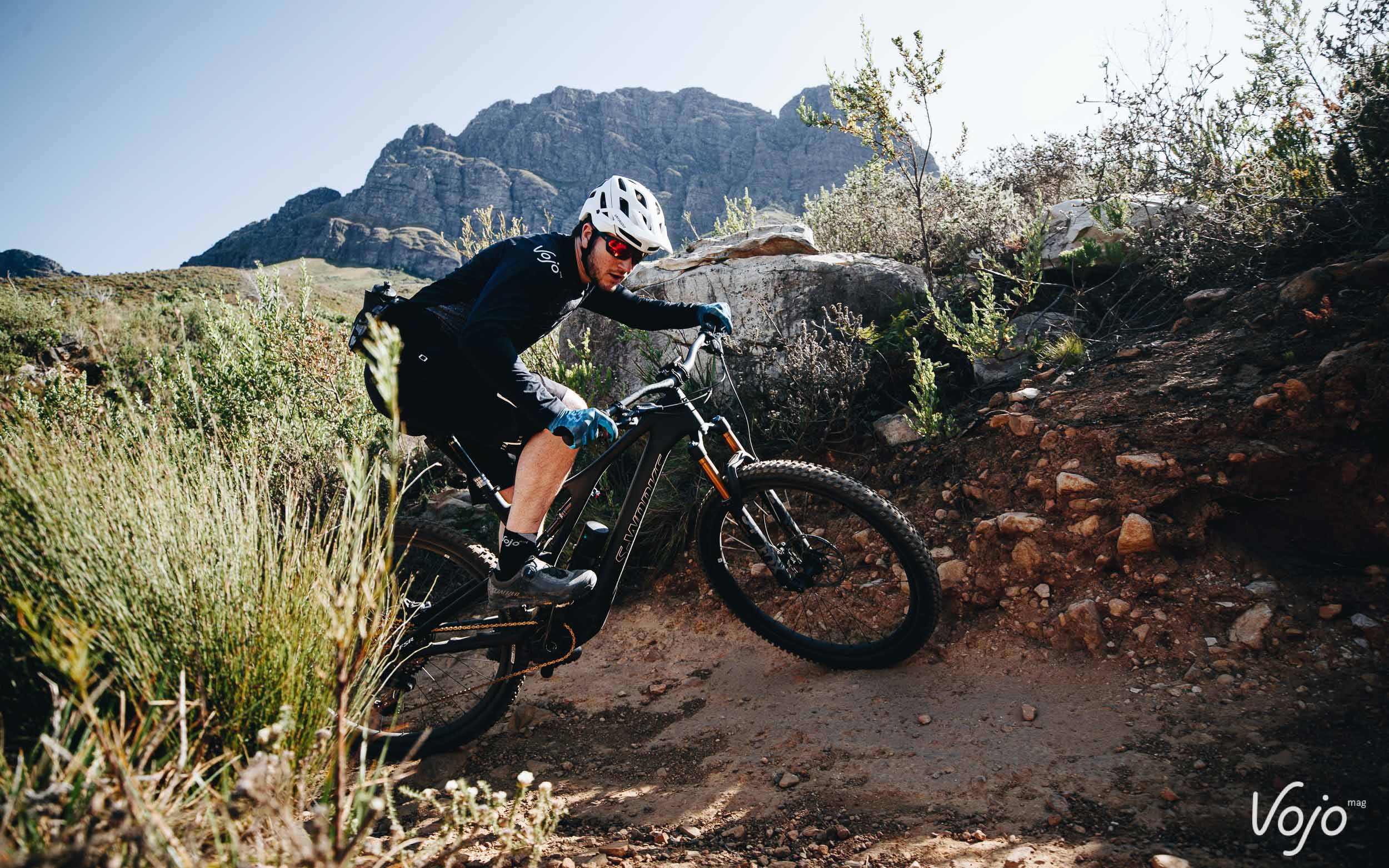 La marque Californienne n’est pas la première à se lancer sur ce terrain encore relativement vierge, mais sur le papier, le Specialized Levo SL frappe très fort. Et ne vous fiez pas juste à son nom ou à son look assez proche de celui d’un Levo : le SL est bien un tout nouveau vélo, bien différent de son aîné. Nous avons eu l’occasion de l’essayer en avant-première en Afrique du Sud, dans la région de Stellenbosch où beaucoup de pros prennent leurs quartiers d’hiver, pour un premier galop d’essai de 150km répartis sur trois journées de test sur les magnifiques trails tracés avec amour par les locaux, grâce notamment à l’investissement de Specialized et de son représentant local très impliqué dans le domaine.