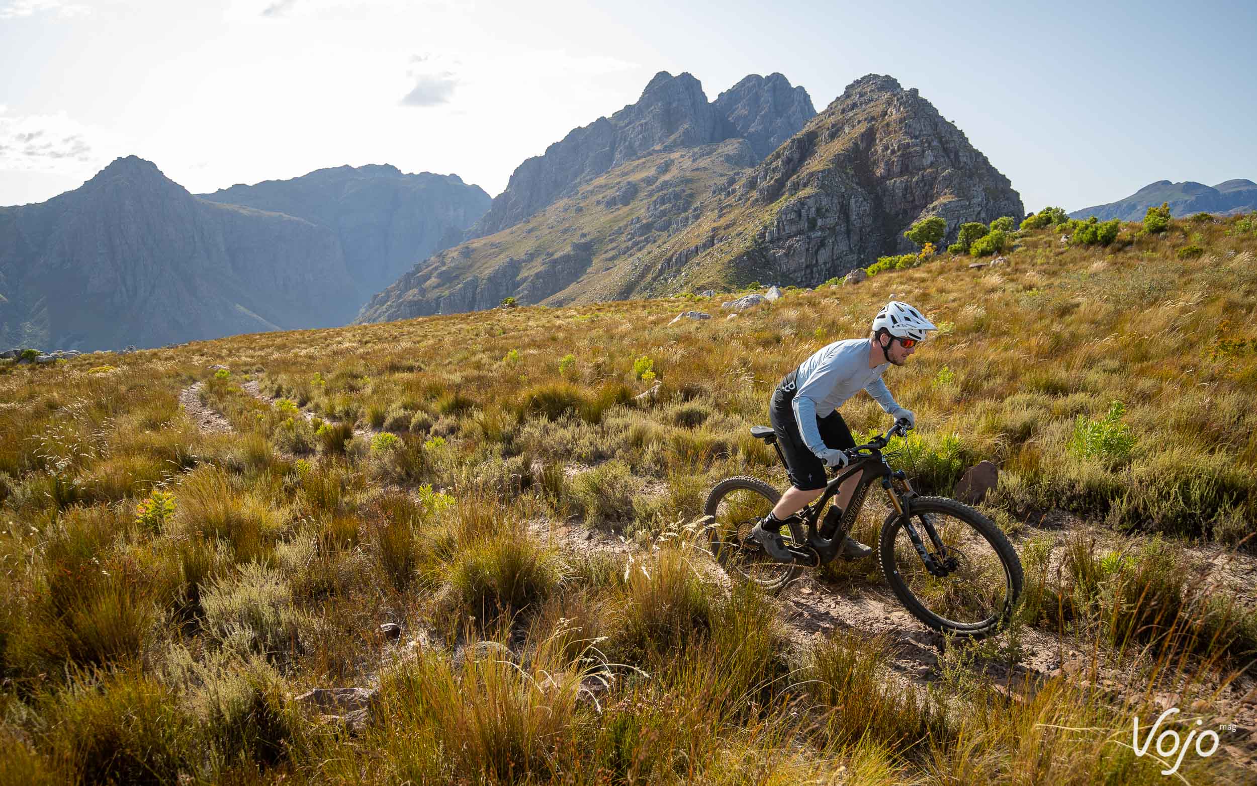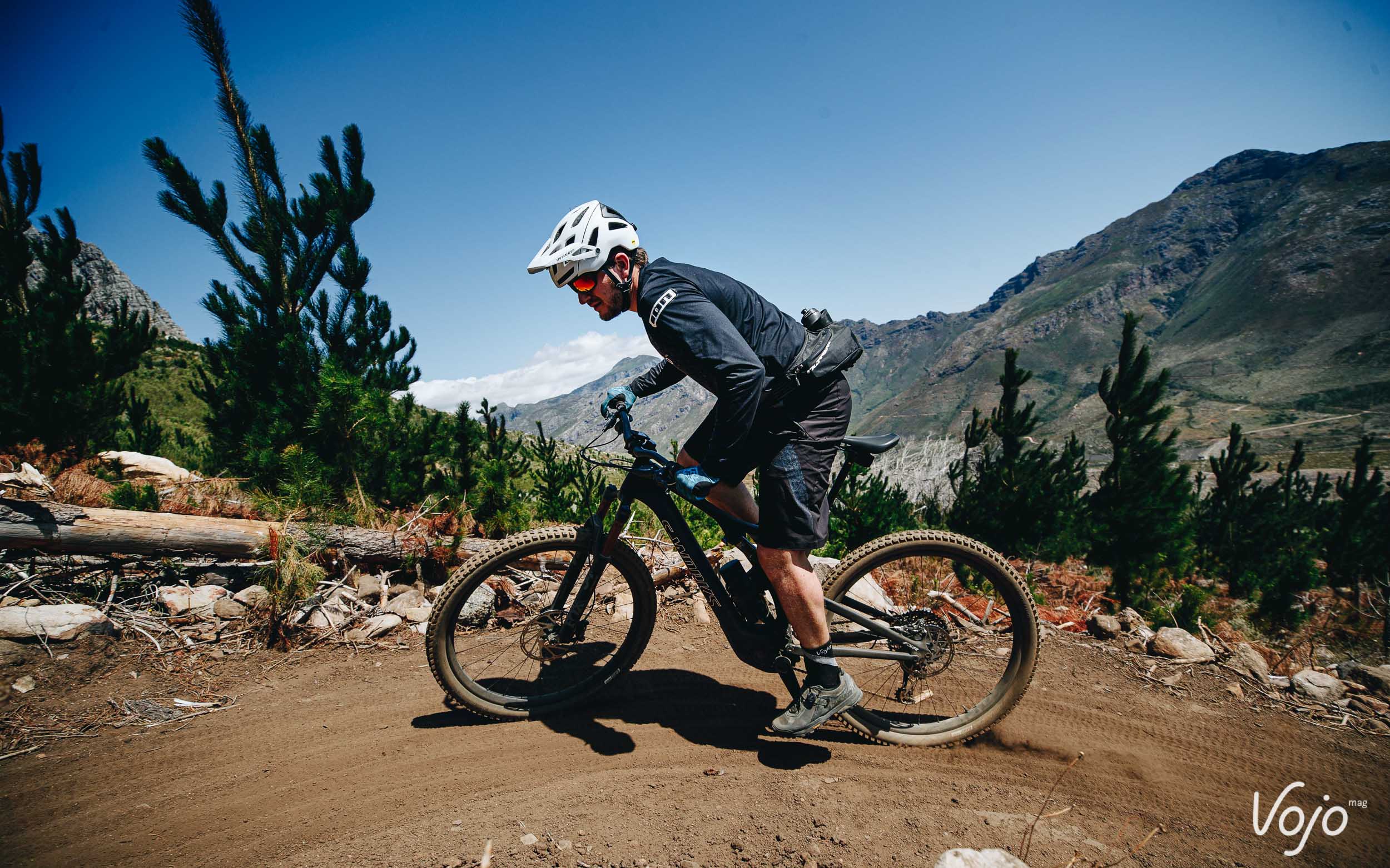 La marque Californienne n’est pas la première à se lancer sur ce terrain encore relativement vierge, mais sur le papier, le Specialized Levo SL frappe très fort. Et ne vous fiez pas juste à son nom ou à son look assez proche de celui d’un Levo : le SL est bien un tout nouveau vélo, bien différent de son aîné. Nous avons eu l’occasion de l’essayer en avant-première en Afrique du Sud, dans la région de Stellenbosch où beaucoup de pros prennent leurs quartiers d’hiver, pour un premier galop d’essai de 150km répartis sur trois journées de test sur les magnifiques trails tracés avec amour par les locaux, grâce notamment à l’investissement de Specialized et de son représentant local très impliqué dans le domaine.