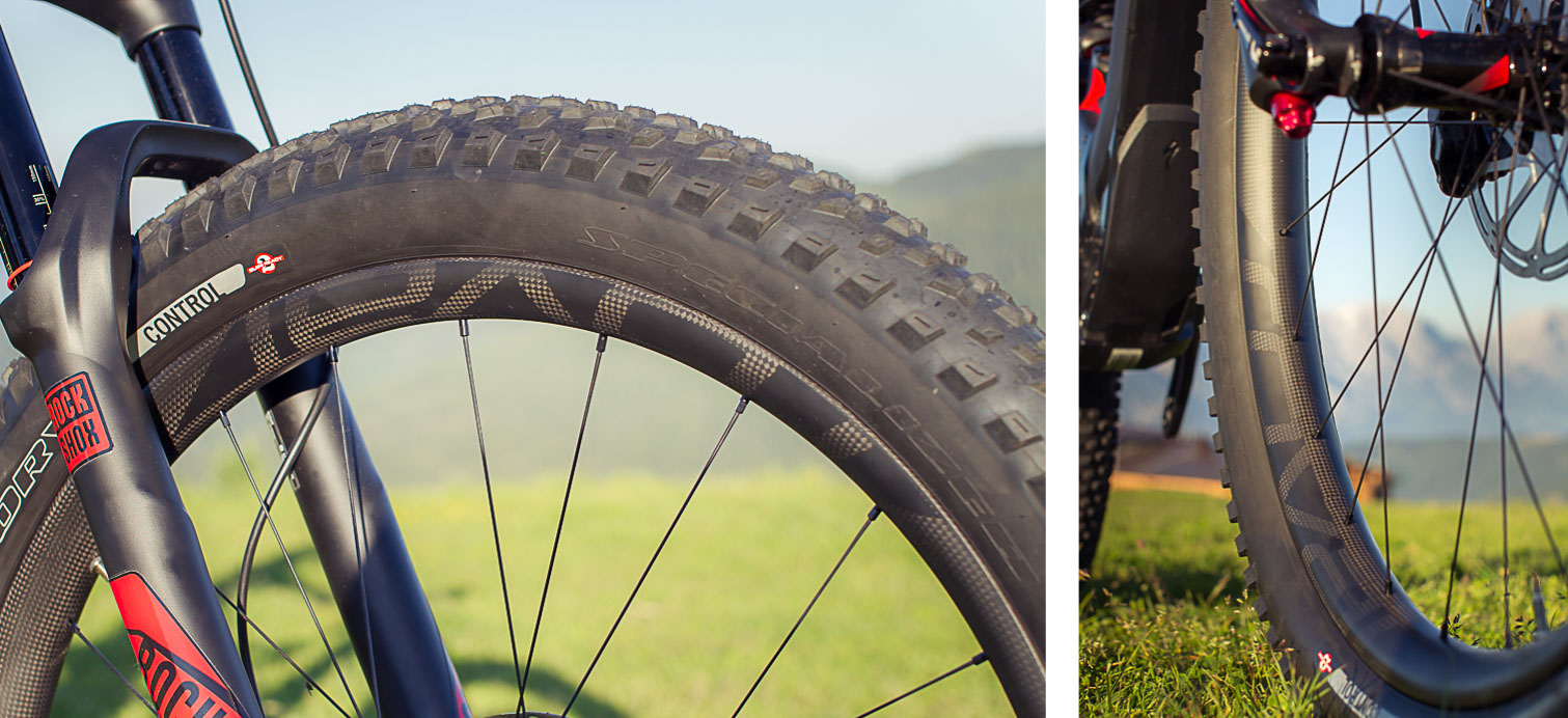 On l’a dit, la base du Specialized Turbo Levo FSR est un Stumpjumper FSR avec 140mm de débattement. Pour Specialized, l’électrique rime avec gros pneus. Vu le poids d’un e-bike, cela a effectivement beaucoup de sens ! Les pneus sont donc des 6Fattie (le nom donné par Specialized à ses modèles « Plus ») en 27,5″ de diamètre et 3″ de large, montés sur de nouvelles jantes en 38mm de large (contre 30 sur le premier 6Fattie que nous avions pu tester il y a quelques semaines).