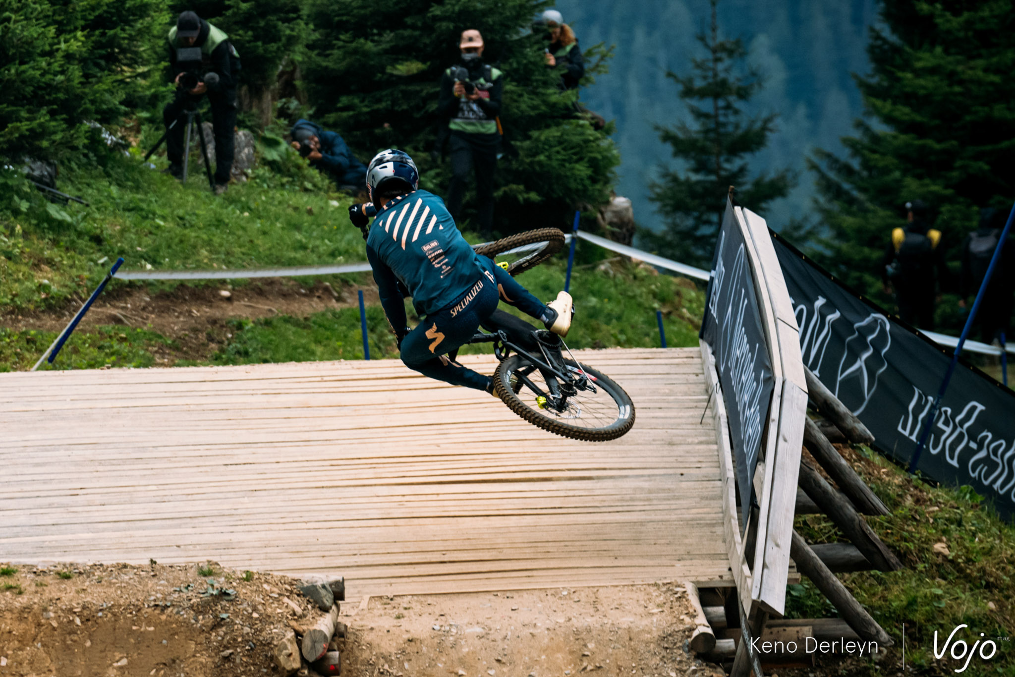 Finn Iles a été aperçu sur la coupe du monde DH de Lenzerheinde au guidon d’une version proto de son Specialized Demo de descente. Cette fois il n’est pas question juste d’une biellette spécifique ou d’un simple petit tuning, mais d’une véritable révolution tant dans la suspension que dans la construction du cadre ! Voici les clichés que nous avons pu prendre sur place :