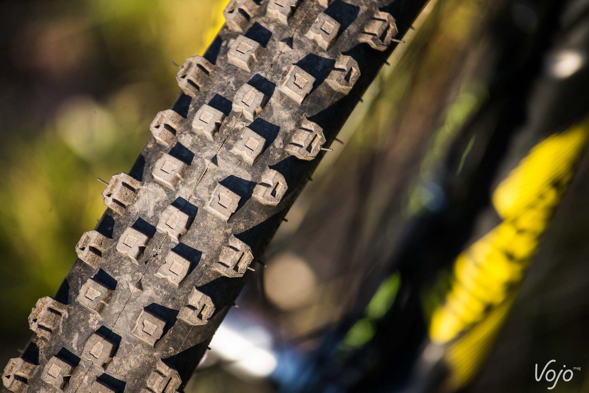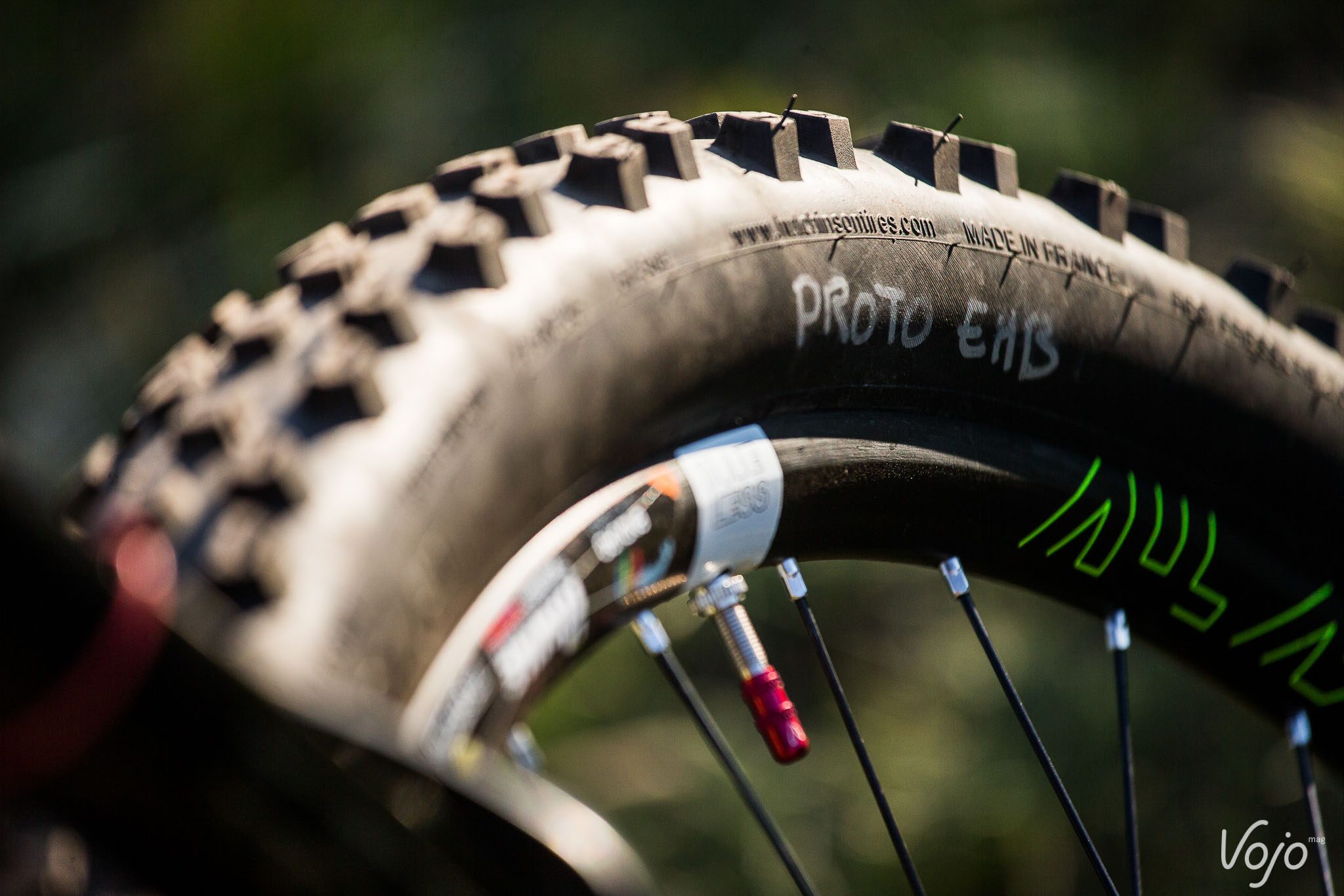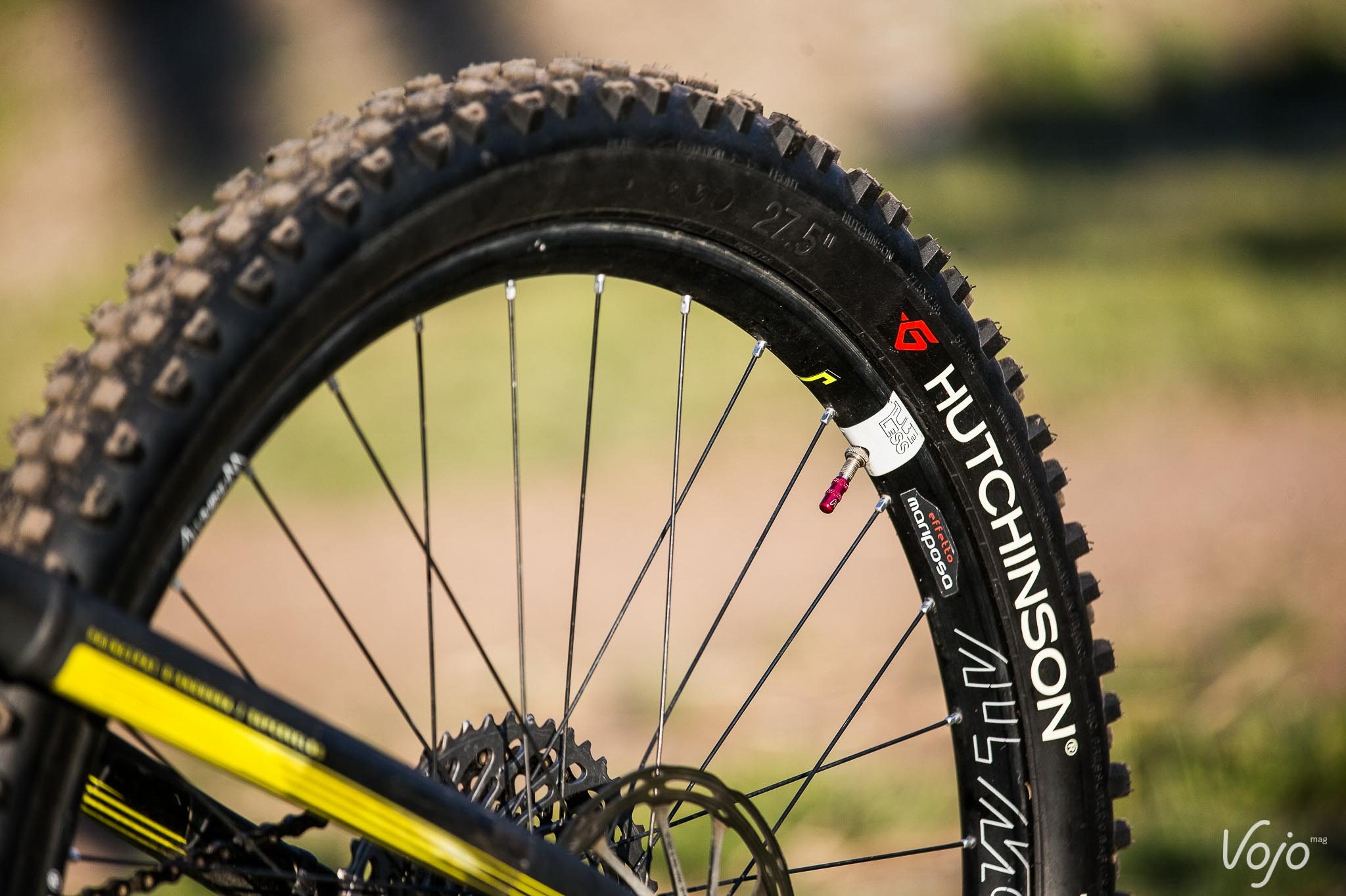 Enfin, sur ses roues American Classic All-Mountain, Cécile Ravanel teste de nouveaux pneus Hutchinson. Vu que le dessin reste celui du Toro, on peut s’attendre à des nouveautés plus au niveau de la carcasse et de la gomme.