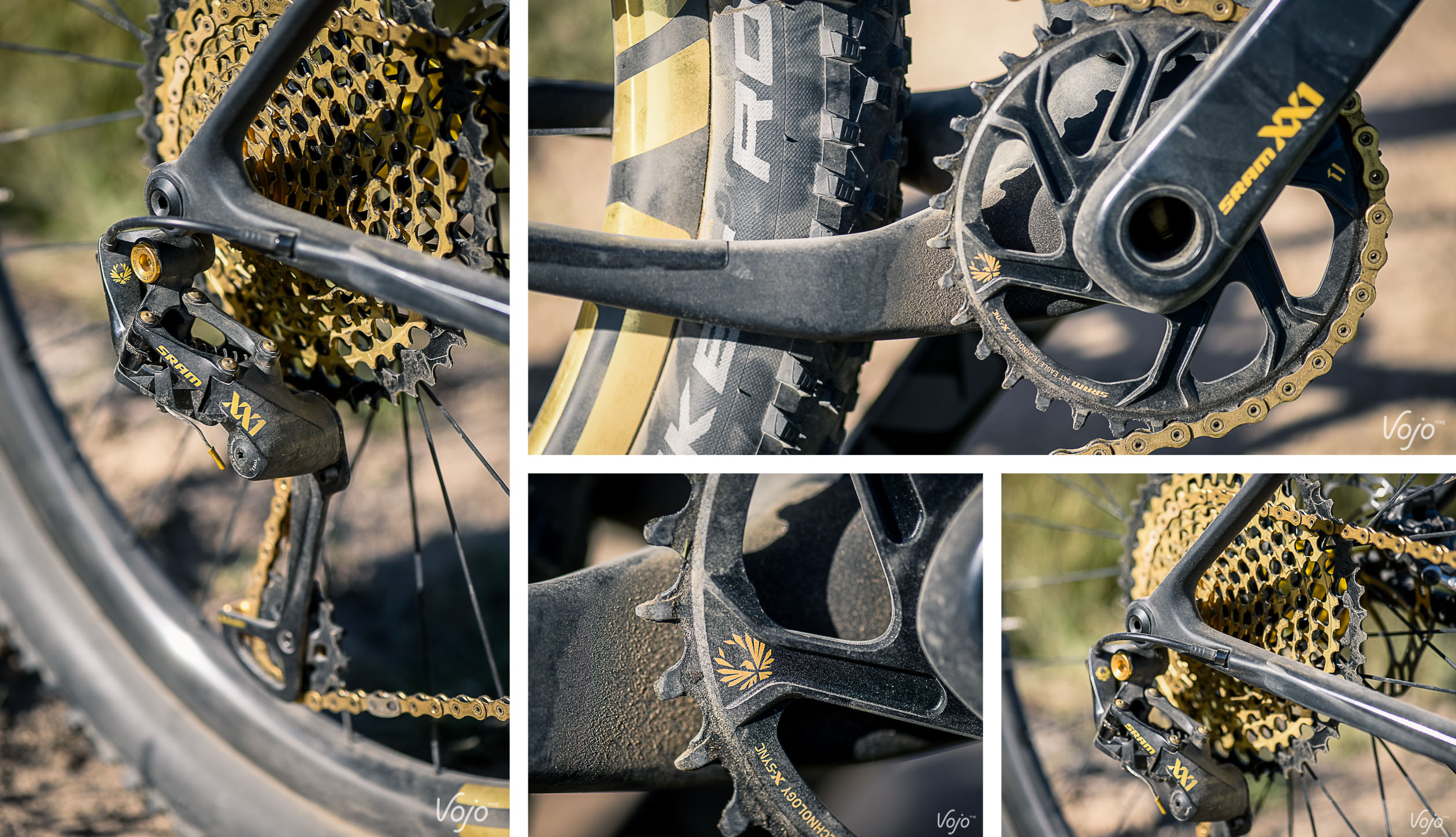Avant de partir rouler, un petit tour du propriétaire et un examen attentif des pièces nous permettent de constater que Sram a une nouvelle fois fait fort au niveau de la finition. Les matériaux choisis sont nobles et cela se voit. Bon, nous ne sommes pas vraiment fans du côté bling-bling de la finition dorée (une finition noire existe aussi) mais force est de constater que chaque composant transpire l’exclusivité et la qualité.