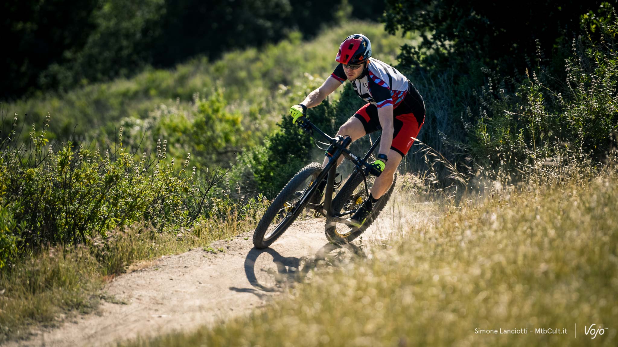 Tac, tac : le Sram Eagle est d’une précision redoutable. Nous avons roulé la course du dimanche sur le même vélo mais équipé en roues de 29 » normales et surtout en XX1 classique à 11 vitesses, et il nous semble clair que le Sram Eagle 12 vitesses semble faire encore un poil mieux tant au niveau de la rapidité d’exécution que de la précision. Visiblement, le travail effectué sur la forme de la chaîne, les dents du plateau et le traitement de surface de la cassette ainsi que de la chaîne portent leurs fruits. Ce qui n’enlève rien aux qualités du XX1 et de ses prédécesseurs.