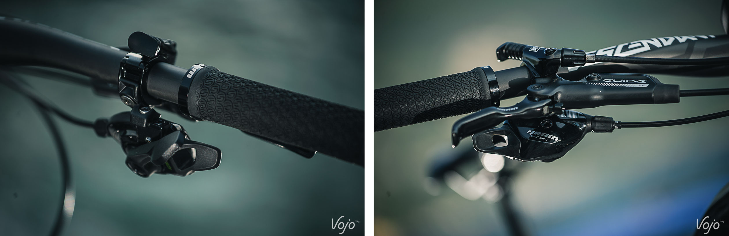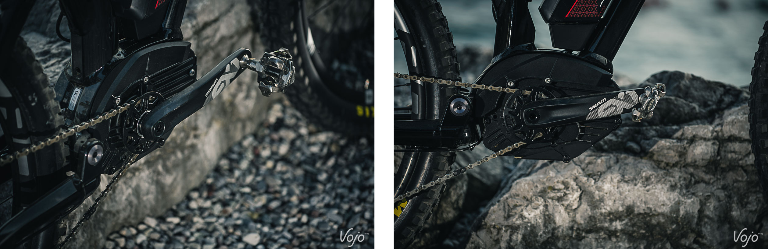 Pour les freins, Sram est allé piocher dans deux gammes existantes pour créer une sorte de crossover composé d’un levier Sram Guide R, apprécié pour son ergonomie et ses possibilités de réglages, avec un étrier Code pour le côté puissance et constance de freinage malgré le surpoids « mort » lié à l’e-bike… dont la plupart dépassent encore largement les 20kg aujourd’hui.