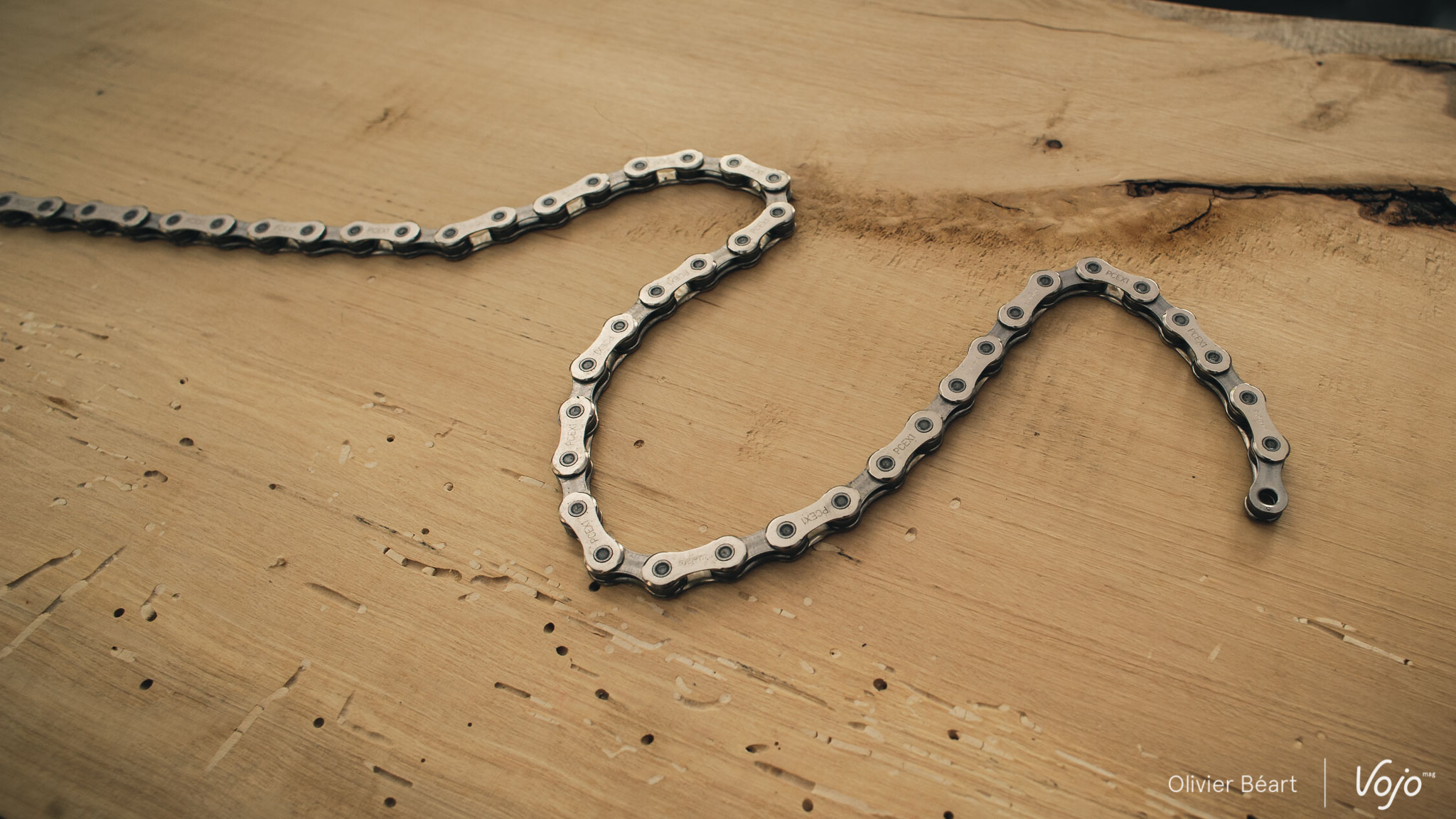 Les maillons ont aussi été retravaillés dans l’esprit de la chaîne Sram Eagle, avec des angles arrondis afin d’améliorer le silence de fonctionnement et des changements de rapports.