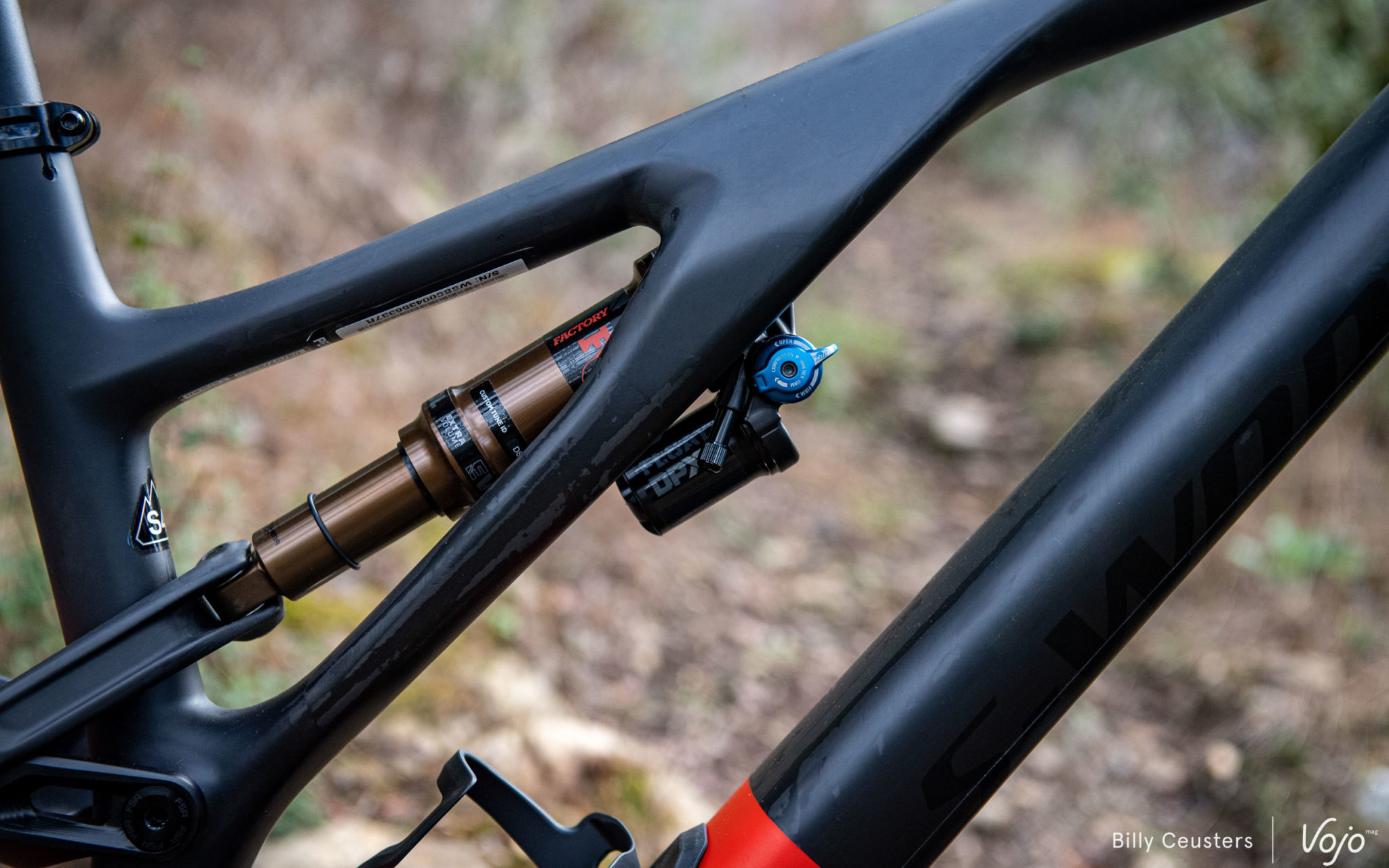 Seule différence : le modèle S-Works gratte quelques grammes au niveau de la peinture, et ajoute un « rocker link » en carbone pour relier le bras arrière à l’amortisseur alors que celui-ci reste en alu sur les autres modèles.